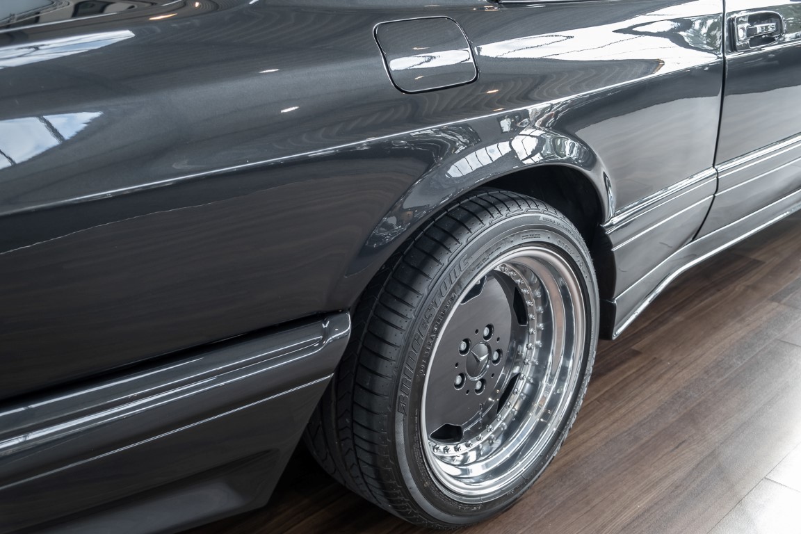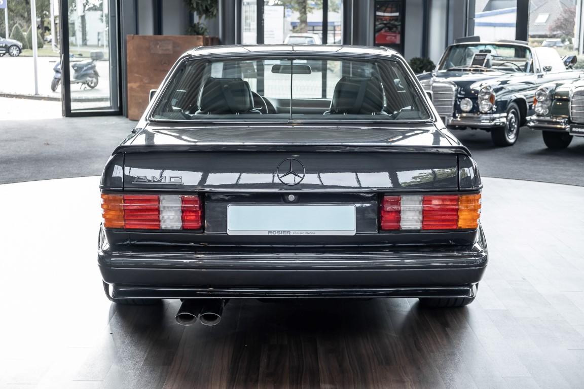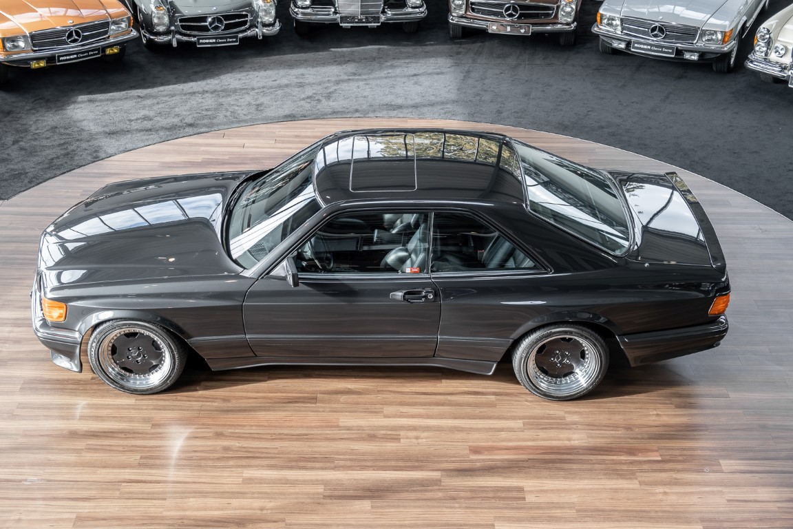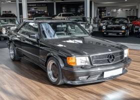 Die mit dem 5,6-l-Achtzylinder ausgerüsteten Typen 560 SEC und 560 SEL der Baureihe 126 waren zum Zeitpunkt ihres Erscheinens die leistungsstärksten bis dahin gebauten Mercedes-Benz Serien-Pkws und leisteten ab 1987 aufsehenerregende 297 PS. Für all diejenigen Kunden, die sich nach Mehr sehnten, mussten sich beim damals noch eigenständigen Mercedes-Tuner AMG aus der beschaulichen Gemeinde Affalterbach umschauen. Das ehemals 5.6 Liter-V8-Aggregat wurde auf 6.0 Liter aufgebohrt und eine eigens von AMG konstruierte Vierventil-Technik verbaut, die es damals bei Mercedes nicht gab. Damit erhielt das Fahrzeug eine Leistungssteigerung von 279 PS auf unglaubliche 350 Pferdestärken - und das trotz KAT! Der Neupreis des Fahrzeuges lag bei etwa 270.000,00 DM. Nur rund 50 dieser exklusiven Exemplare wurden damals durch die Hand der AMG-Ingenieure auf dem „Serien-SEC“ aufgebaut. Mit einem muskulösen Breitbau, sportlichen 17-Zoll-AMG-Felgen und einer prachtvollen Innenausstattung entzückte man die damalige Exklusiv-Kundschaft.