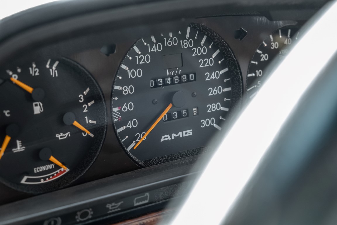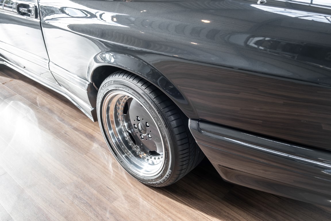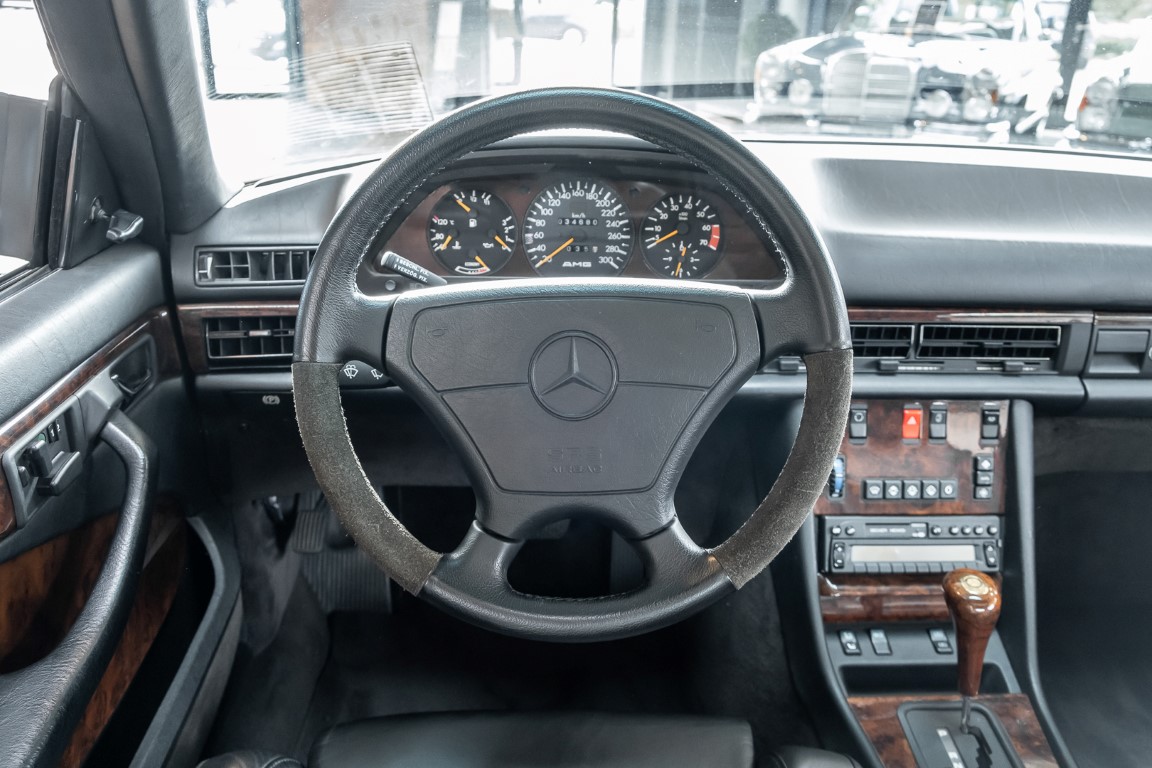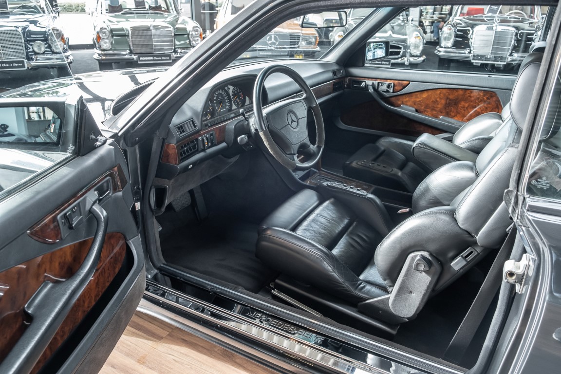 Die mit dem 5,6-l-Achtzylinder ausgerüsteten Typen 560 SEC und 560 SEL der Baureihe 126 waren zum Zeitpunkt ihres Erscheinens die leistungsstärksten bis dahin gebauten Mercedes-Benz Serien-Pkws und leisteten ab 1987 aufsehenerregende 297 PS. Für all diejenigen Kunden, die sich nach Mehr sehnten, mussten sich beim damals noch eigenständigen Mercedes-Tuner AMG aus der beschaulichen Gemeinde Affalterbach umschauen. Das ehemals 5.6 Liter-V8-Aggregat wurde auf 6.0 Liter aufgebohrt und eine eigens von AMG konstruierte Vierventil-Technik verbaut, die es damals bei Mercedes nicht gab. Damit erhielt das Fahrzeug eine Leistungssteigerung von 279 PS auf unglaubliche 350 Pferdestärken - und das trotz KAT! Der Neupreis des Fahrzeuges lag bei etwa 270.000,00 DM. Nur rund 50 dieser exklusiven Exemplare wurden damals durch die Hand der AMG-Ingenieure auf dem „Serien-SEC“ aufgebaut. Mit einem muskulösen Breitbau, sportlichen 17-Zoll-AMG-Felgen und einer prachtvollen Innenausstattung entzückte man die damalige Exklusiv-Kundschaft.