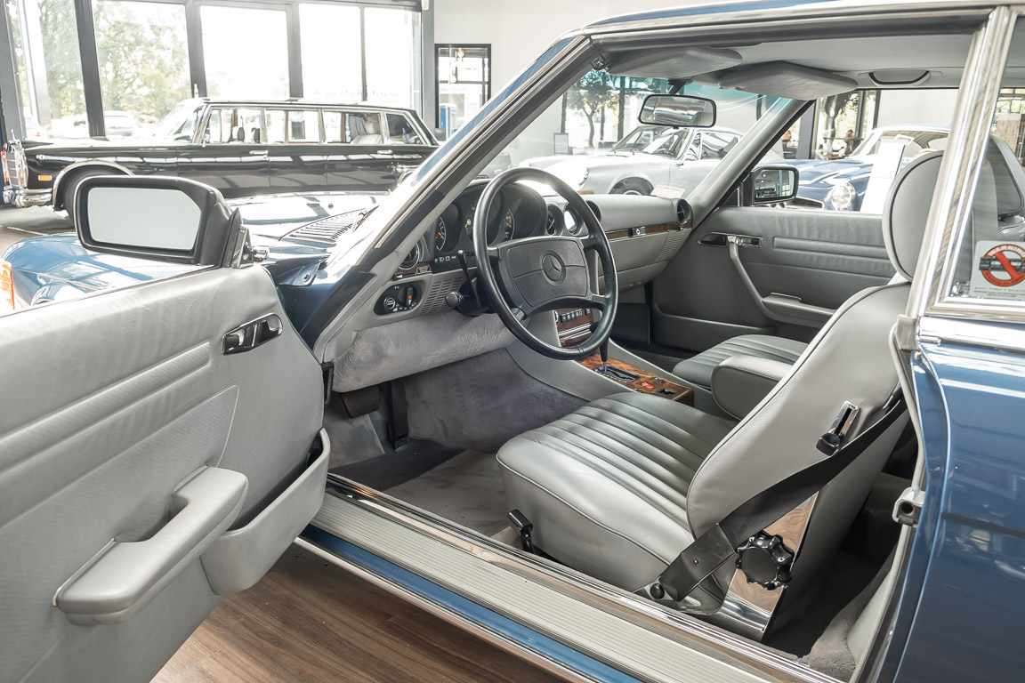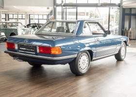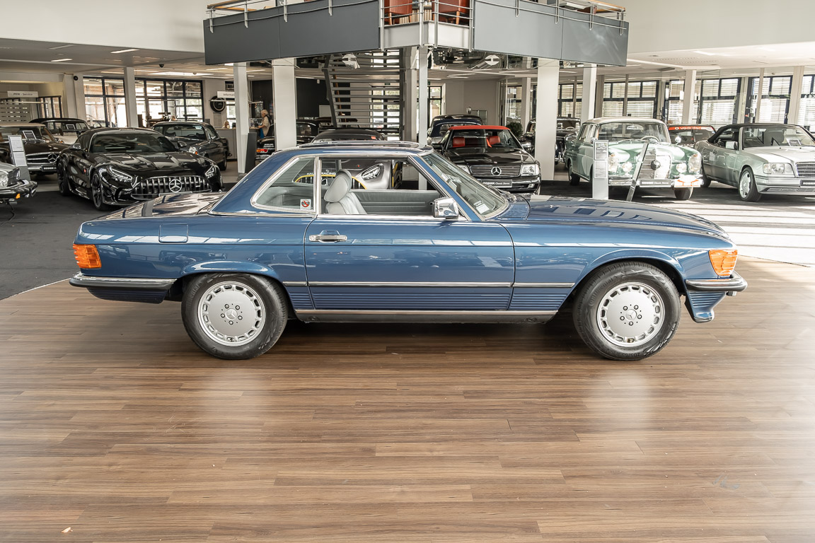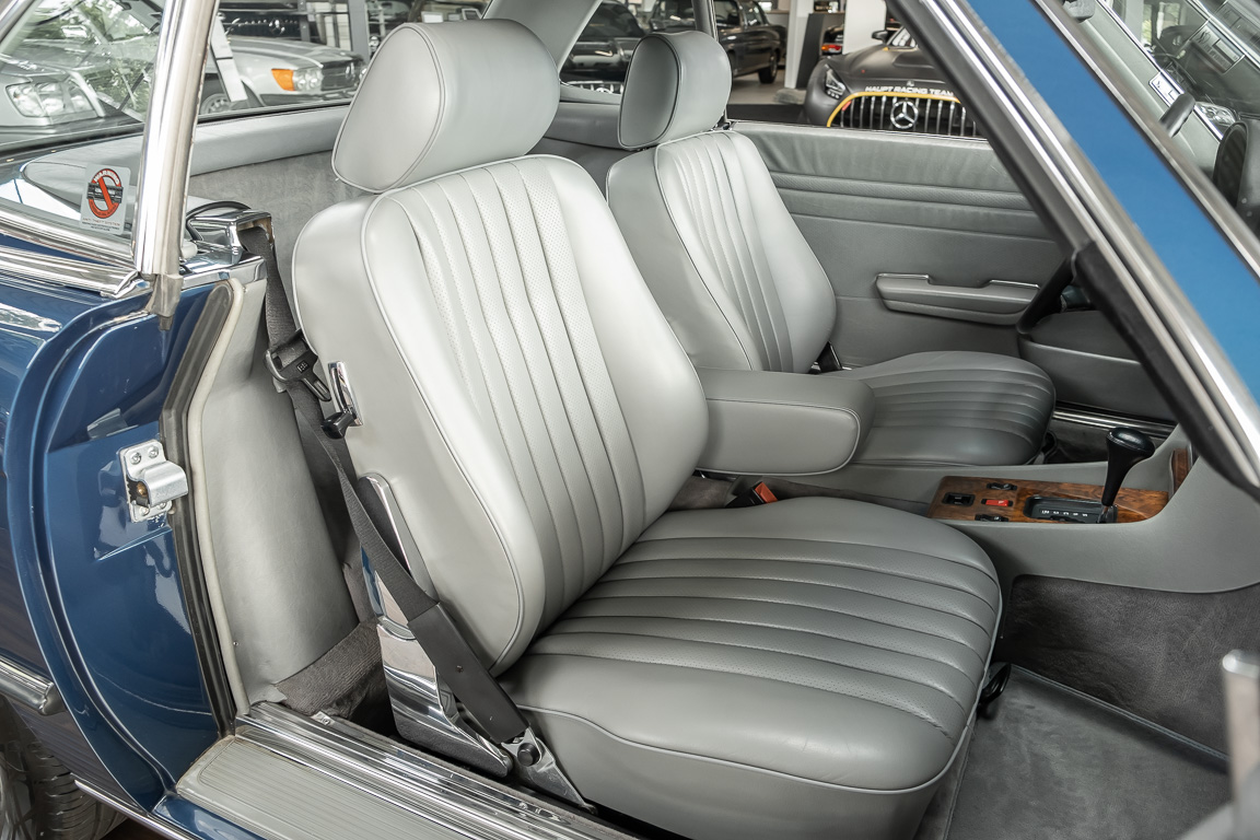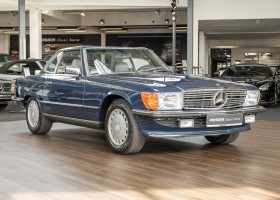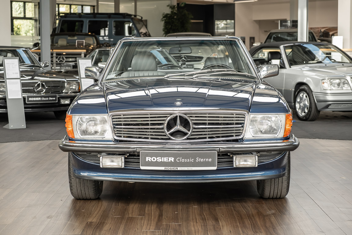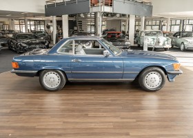 Der Mercedes-Benz 560 SL der Baureihe 107 - ein zeitloses Symbol für Eleganz und Ingenieurskunst. Die Lackierung in Nautikblau Metallic passt perfekt zum Interieur, dessen harmonisierender Grauton, sowohl Luxus als auch Komfort ausstrahlt und an eine Ära erinnert, in der jedes Detail mit Sorgfalt und Hingabe konstruiert wurde. Doch dieser Klassiker ist nicht nur eine Augenweide. Über all die Jahre hinweg wurde seine Technik mit liebevoller Hand gepflegt, wodurch er heute noch genauso zuverlässig und leistungsstark ist wie am ersten Tag. Ein sauberes CARFAX bestätigt die makellose Geschichte dieses Schmuckstücks. Das Fahrzeug wird mit frischer Hauptuntersuchung, einem aktuellen Service sowie mit Hardtop an seinen neuen Besitzer übergeben.