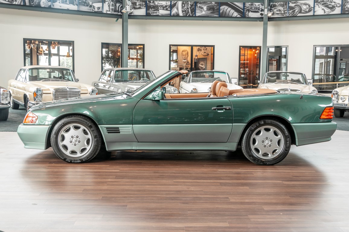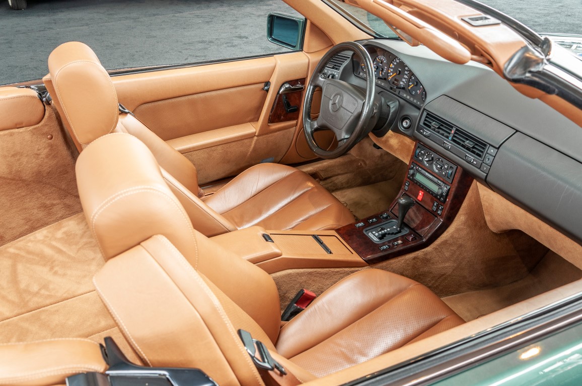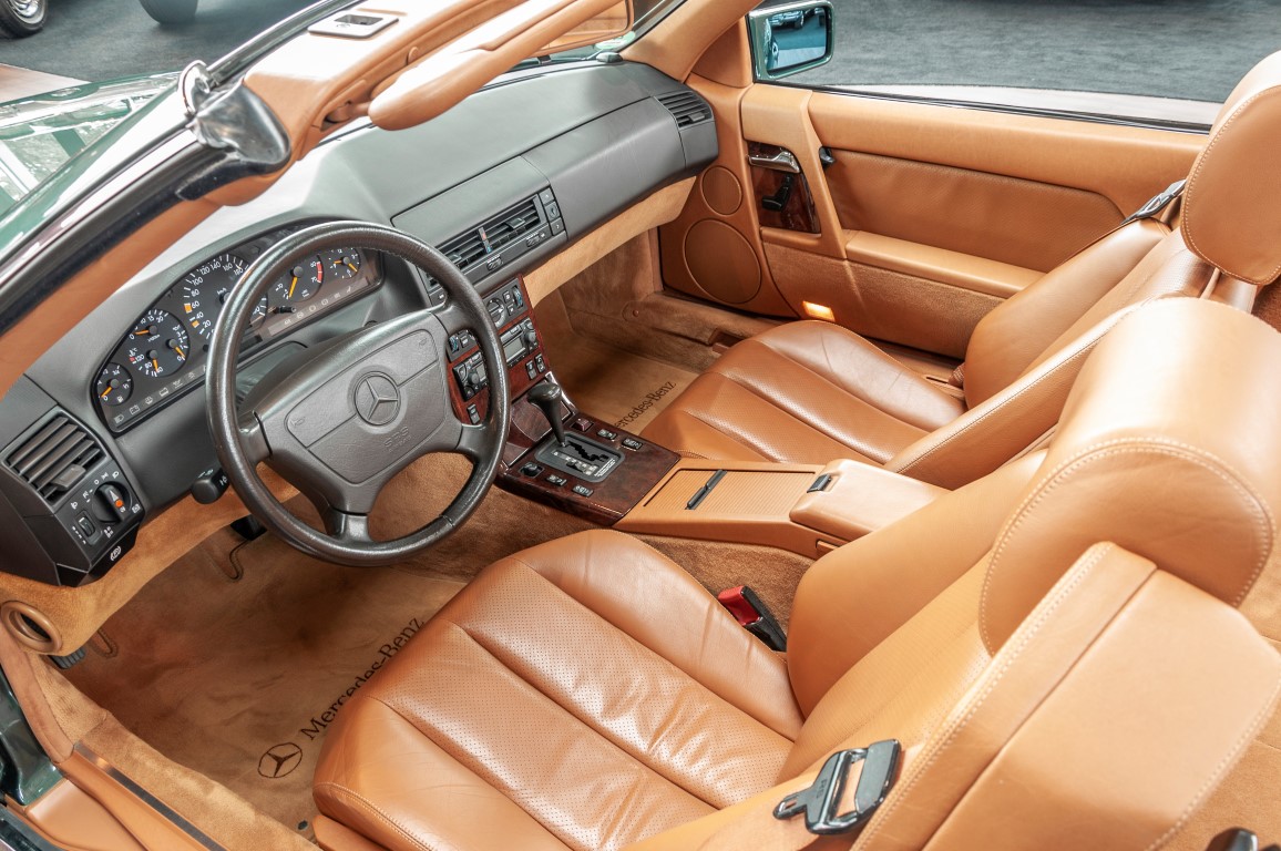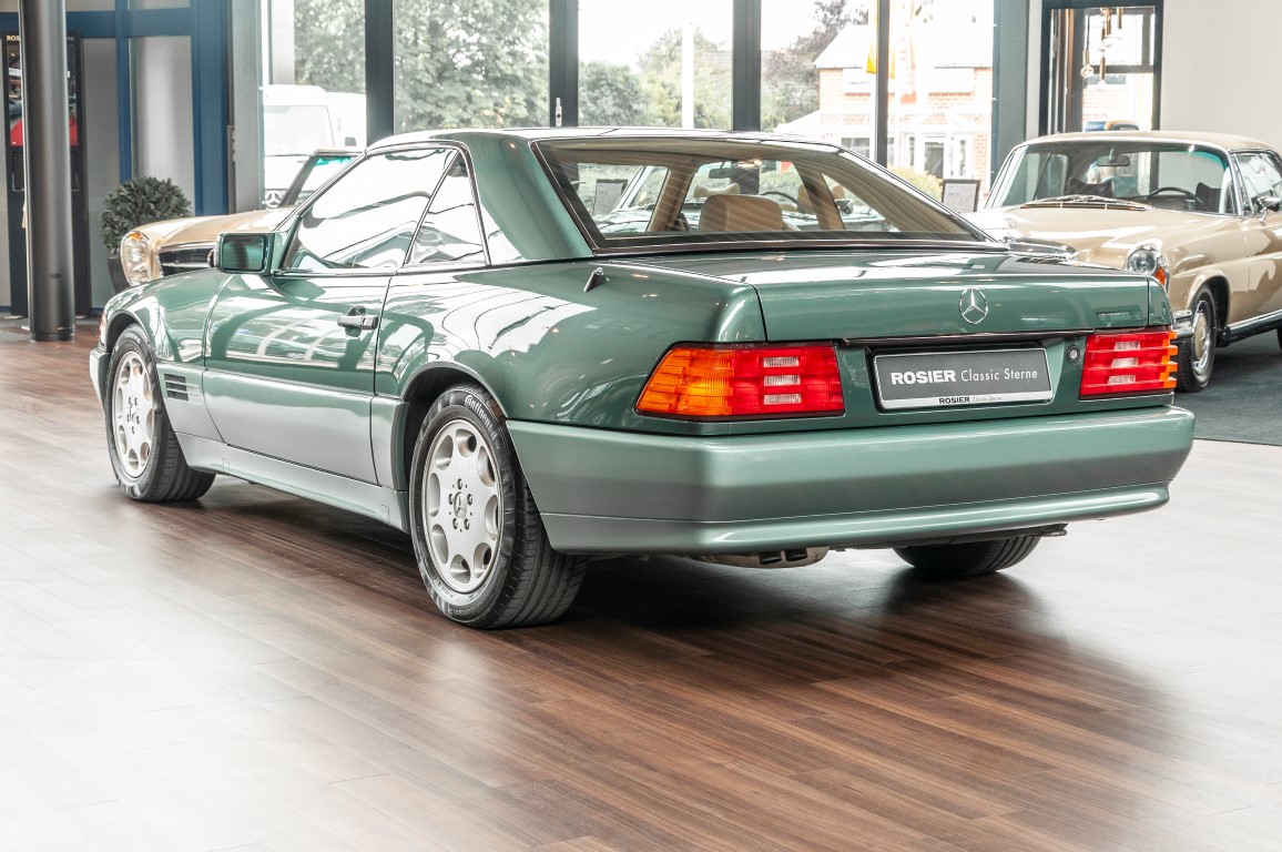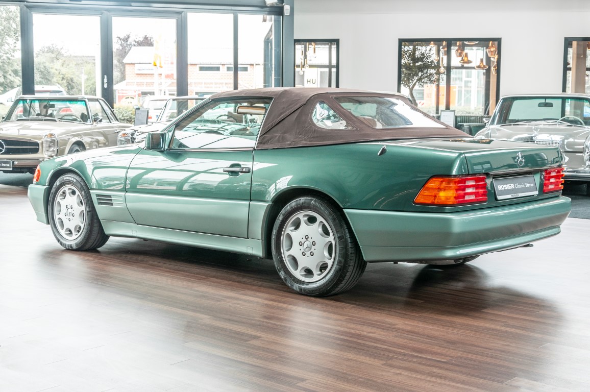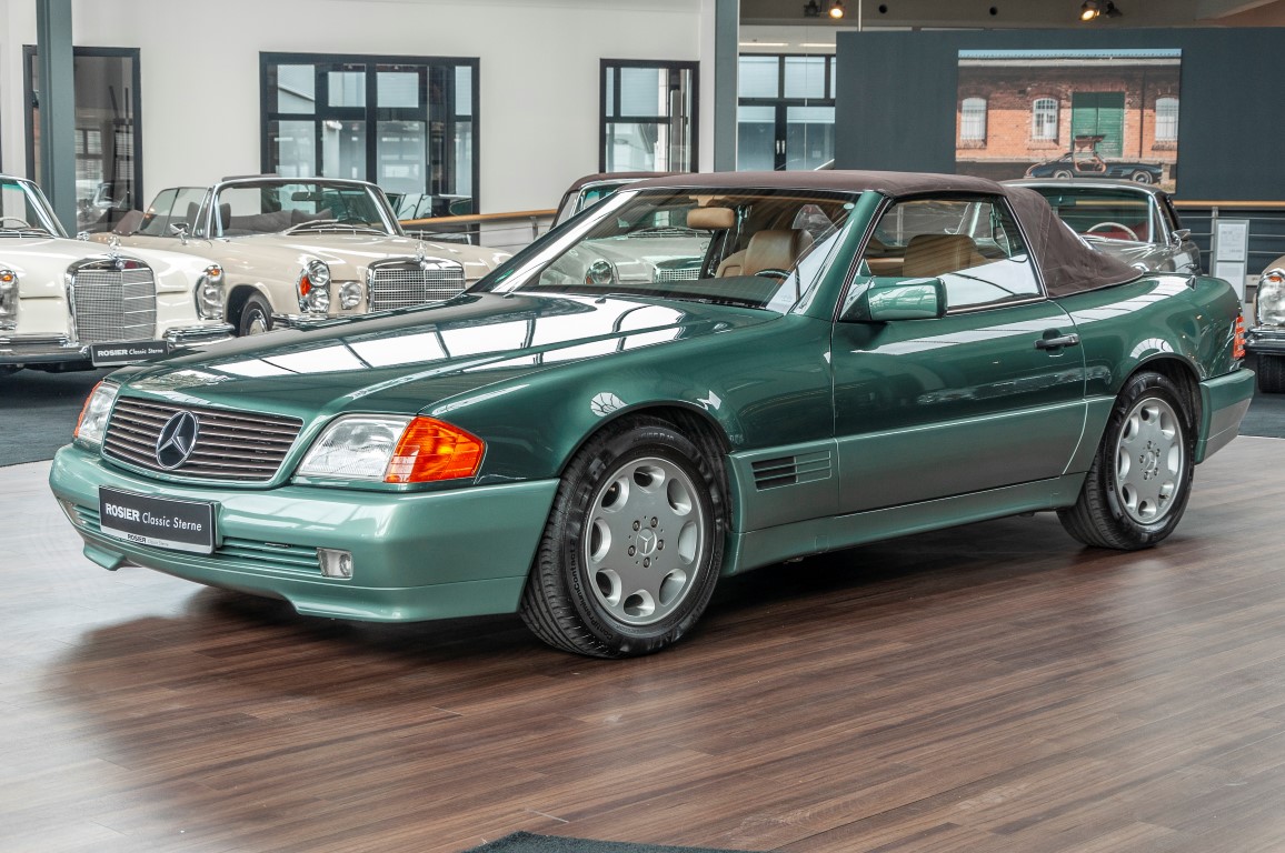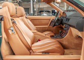 Ein traumschöner SL500 aus der so beliebten R129 Serie in hocheleganter Farbkombination. Malachitgrün in Verbindung mit Lederausstattung in „Dattel“ und dunkelbraunem Soft-Top, dazu eine reichhaltige Ausstattung, so hatte ein Unternehmer aus Mönchengladbach den Traumroadster bestellt. Am 25. Juni 1992 wurde das Fahrzeug geliefert. Der Wagen wurde wenig gefahren, erhielt aber regelmäßig Kundendienste, damit die Einsatzbereitschaft zu jeder Zeit gewährleistet war. In 2011 wurde der Wagen auf die Ehefrau umgeschrieben und blieb in Ihrem Besitz weiter bis 2016. Als der Wagen verkauft wurde, hatte er gerade einmal 22.000km gelaufen. Ein Norddeutscher Sammler erwarb den eleganten Roadster und fuhr ihn etwa 4.000km jährlich. Nun soll der Wagen in eine neue „Gute Hand“ abgegeben werden. Er hat gerade einmal 32.000 Originalkilometer gelaufen, ist bestens gepflegt und ein Klassiker der Zukunft. Jetzt ist er dank Katalysator schon günstig zu fahren und in nur 35 Monaten kann er das so begehrte H-Kennzeichen bekommen, mit allen Vorzügen eines solchen. Gerne zeigen wir Ihnen diesen traumschönen SL500 Roadster hier in unserer Ausstellung in Oldenburg. Vielleicht kommen wir ja ins Geschäft.