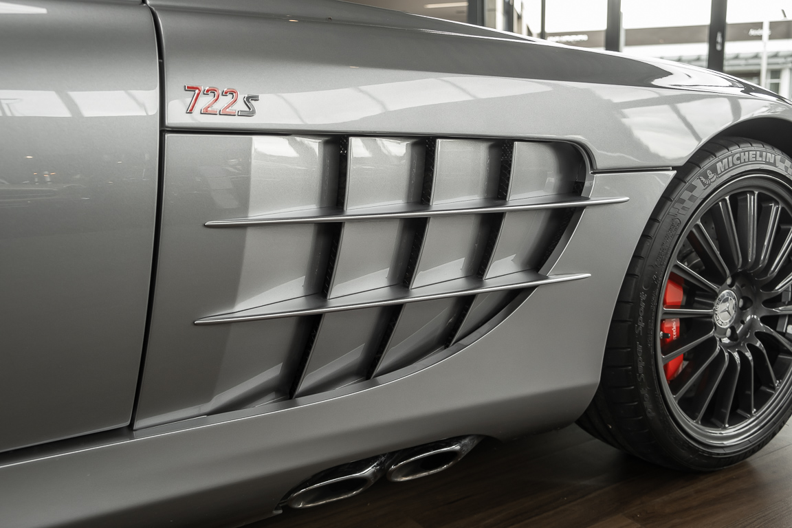 Die Edition 722 sollte an den legendären Sieg von Sir Stirling Moss und Beifahrer Dennis Jenkinson anlässlich der in Italien stattgefundenen Mille Miglia in 1955 erinnern. Er fuhr die 1000 Meilen in der Rekordzeit von 10 Std. 7 Minuten und 48 Sekunden in einem Mercedes-Benz 300SLR. 722 war seine Startnummer und die Startzeit. Die gefahrene Durchschnittsgeschwindigkeit lag bei 157,65km/h im öffentlichen Straßenverkehr. Das Sondermodell leistet 478KW/650PS, sprintet von 0-100km/h in 3,6 Sekunden und erreicht eine Höchstgeschwindigkeit von 337 km/h. Zum normalen McLaren SLR wurden an der Edition 722 etwa 300 Teile verändert um das Fahrzeug noch zu optimieren.