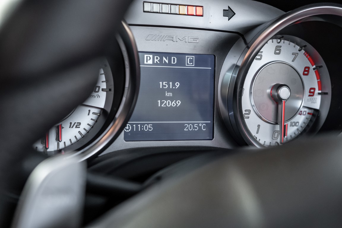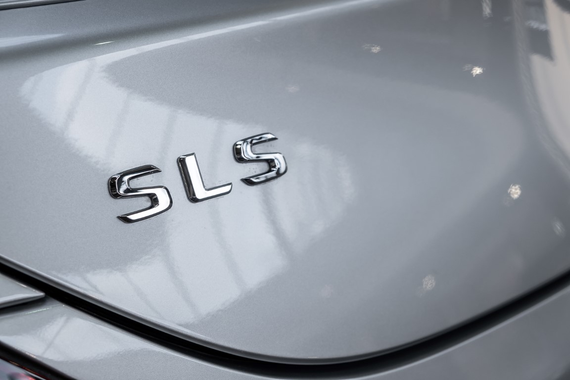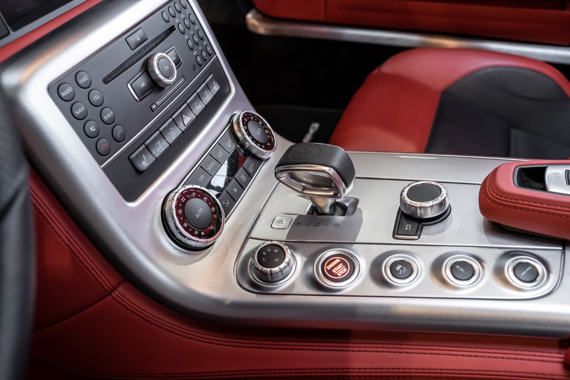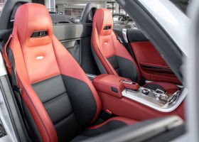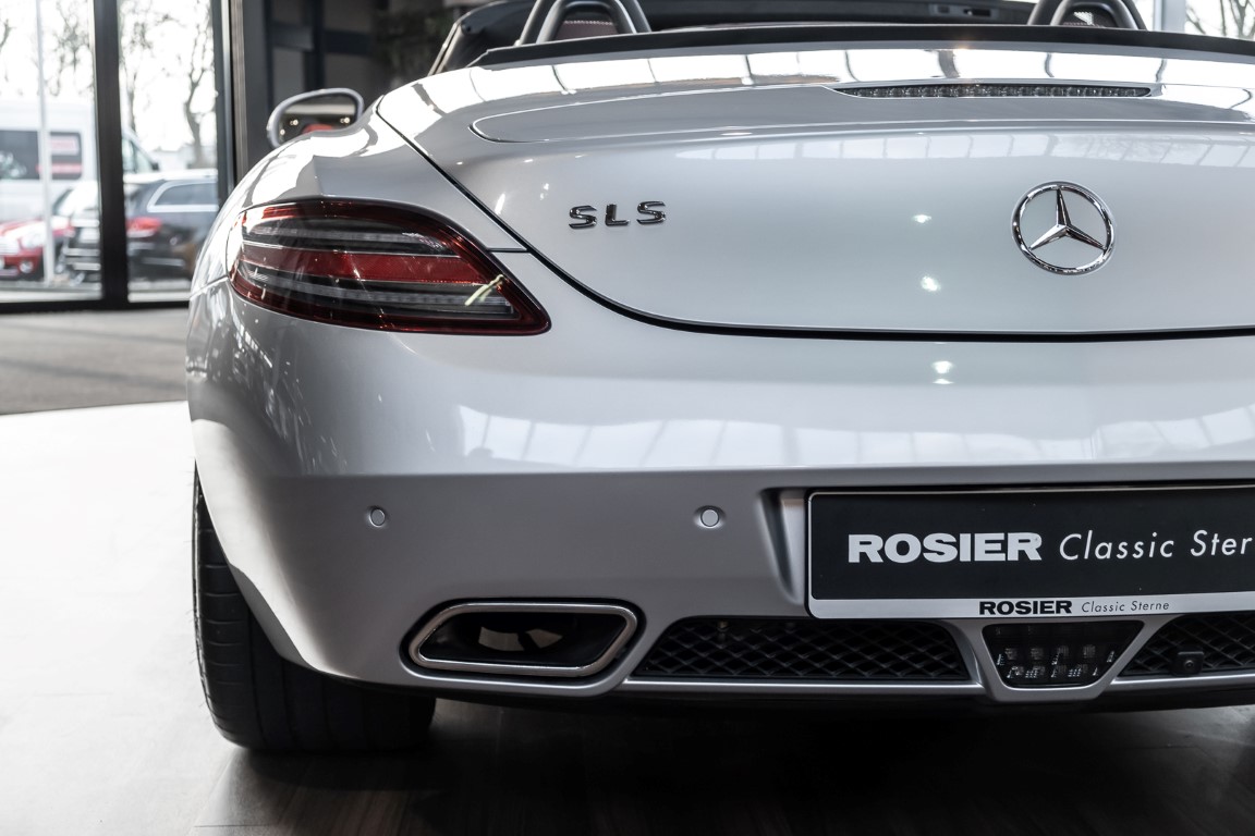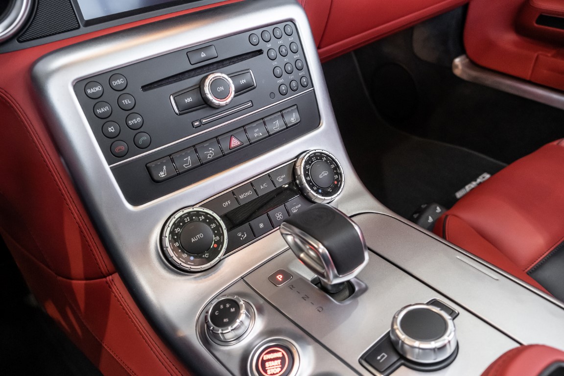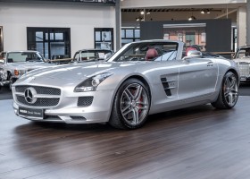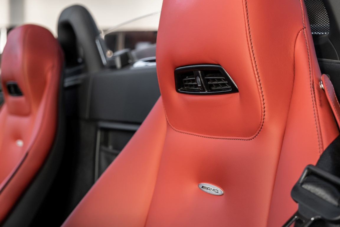 Dieser wundervolle SLS AMG Roadster in der klassisch-sportlichen Kombination „Iridiumsilber Metallic“ mit rotem AMG Exklusiv Leder ist im wahrsten Sinne des Wortes ein Silberpfeil.