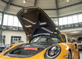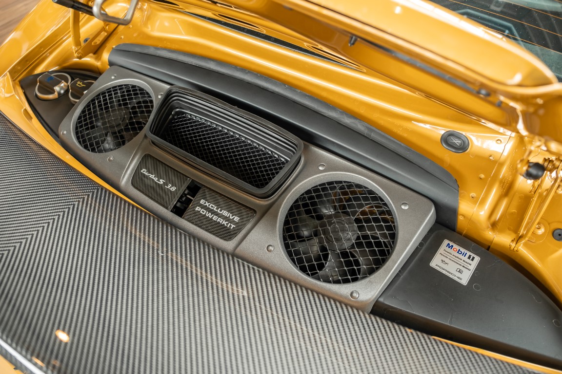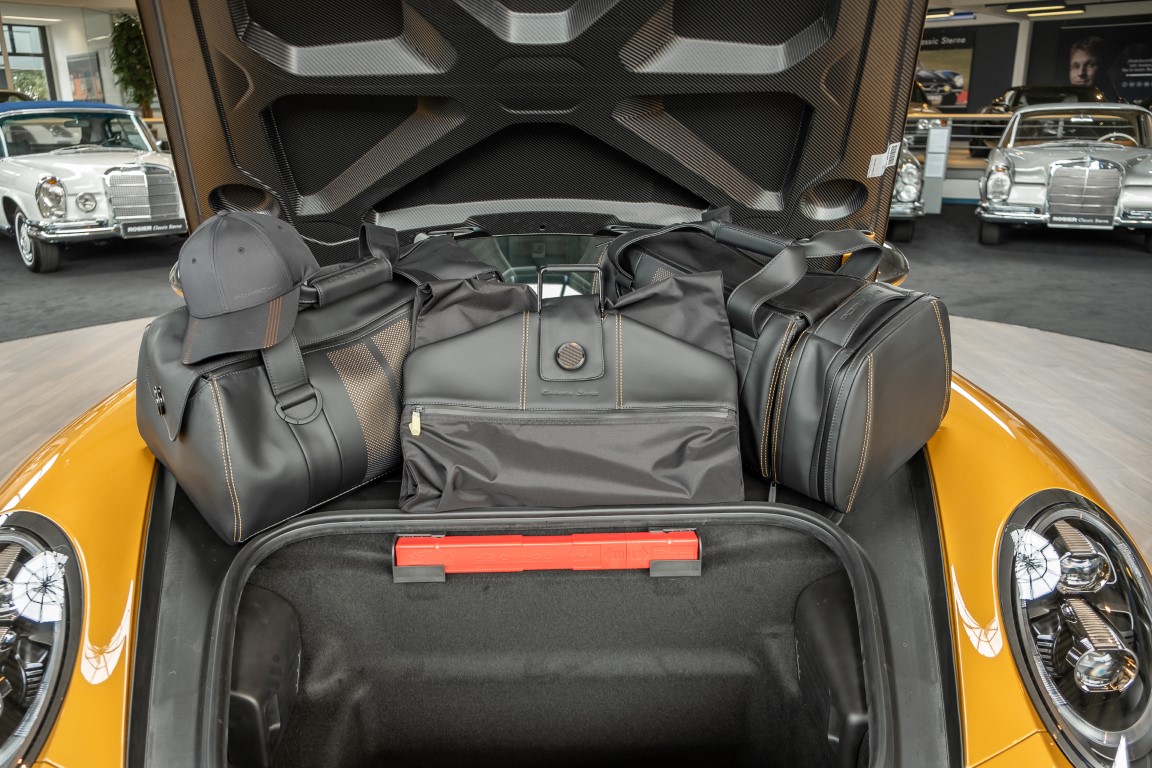Porsche 991 Turbo S aus der Exclusive Series Nr. 36/500 aus erster Sammlerhand. Eine absolute Seltenheit, die mit Carbonfelgen (Aufpreis etwa 15.000 Euro), einem exklusiven Leder-Gepäckset (5.474 Euro) und passendem Titan-Chronographen (9.950 Euro) verkauft wird. Laufleistung dieser Rarität: unglaubliche 152 km!