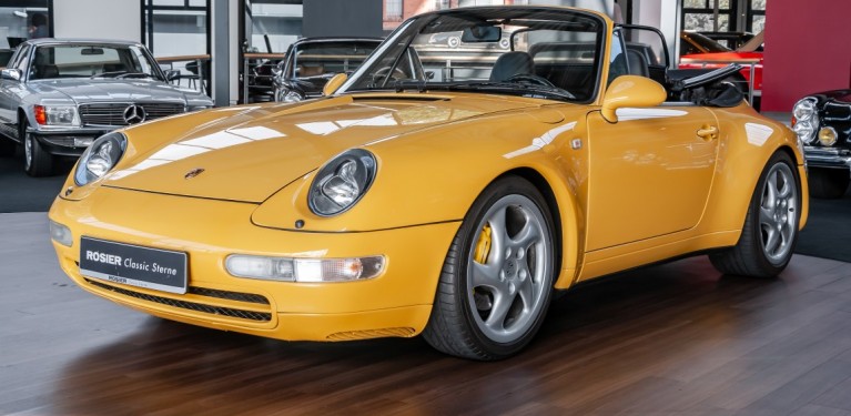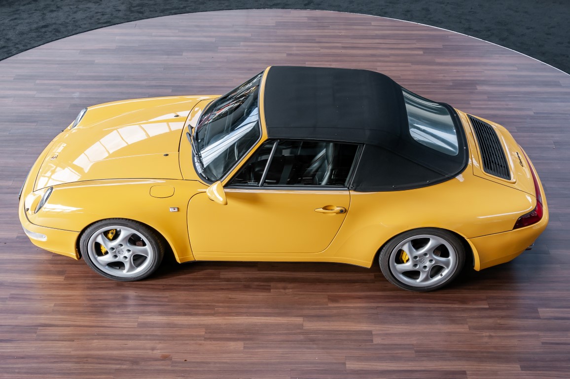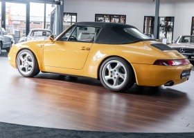 Dieses Porsche 993 Cabriolet wurde am 20. Februar 1995, in sportlichem Speedgelb und schwarzer Lederausstattung, an seinen Erstbesitzer im Bayrischen Germeringen ausgeliefert. Bei Ihm verblieb der Wagen die nächsten rund 14 Jahre. Etwa 80.000 km hatte er gelaufen und wurde bestens gepflegt. Etwa in 2010 fand er ein neues Zuhause in der malerischen Bodeseeregion, oberhalb von Lindau. Dort erwarb ihn sein bis heute letzter Besitzer für seine sorgfältig ausgewählte Sportwagensammlung.