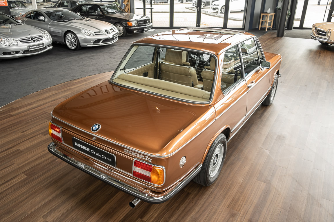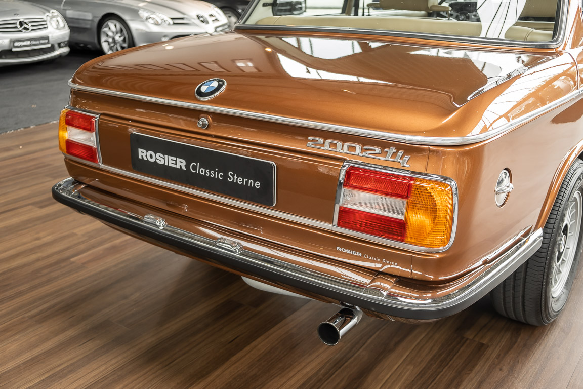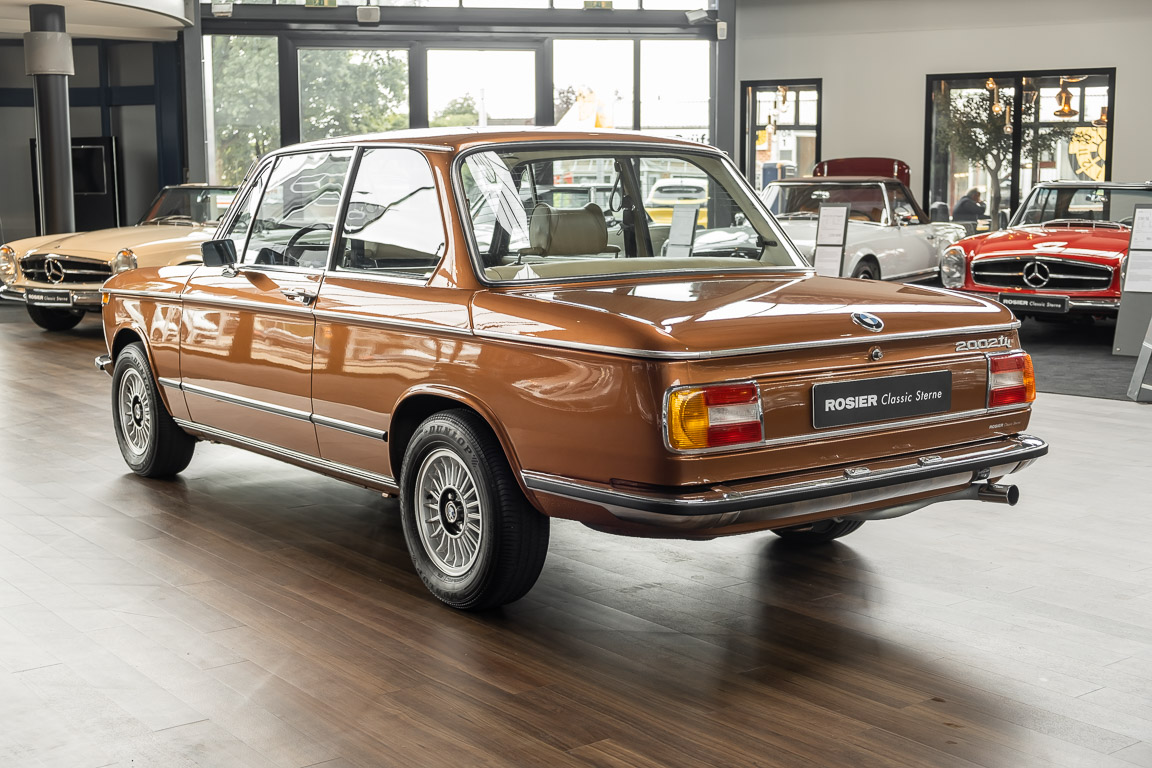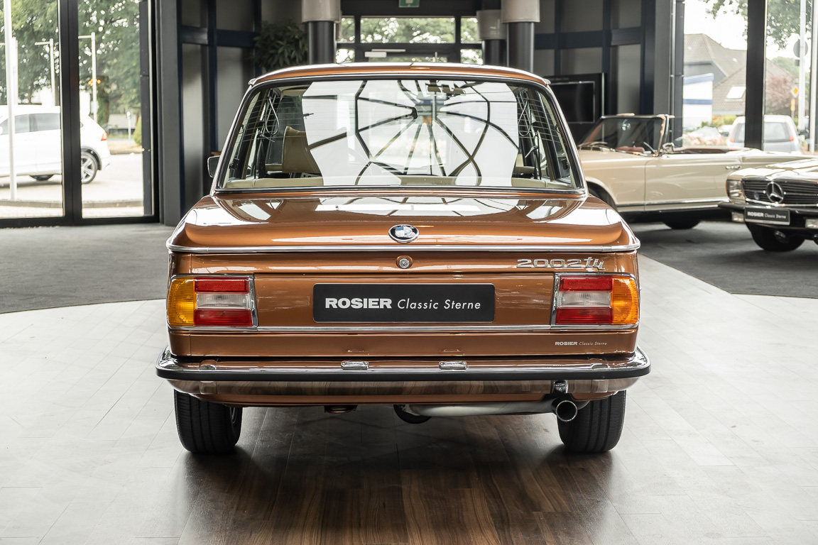 We are pleased to offer you this BMW 2002tii from 1974. The appearance in Siena Brown Metallic in combination with beige leather suits this vehicle perfectly. The factory installed extras make this 2002 a real gem. With sunroof, air condition, color glazing as well as light alloy rims no desires remained open for conditions at that time. In 2014, the vehicle was brought back to its country of origin from Evanston, Illinois. Despite its solid condition, the owner decided to completely rebuild this dream Bavarian, sparing neither expense nor effort. Thus, in 2014 and 2015, the vehicle was extensively restored to the highest standards by a BMW and Alpina classic specialist in Albaching, near Munich. The result of this quality work is something to be proud of: The engine was extensively rebuilt to German standards - including a higher compression ratio. The original gearbox was overhauled and all wear parts replaced. Braking, steering, shifting: everything feels like a year-old car. An absolute dream where you experience the "joy of driving" with all your senses! Get in and "experience" it for yourself.