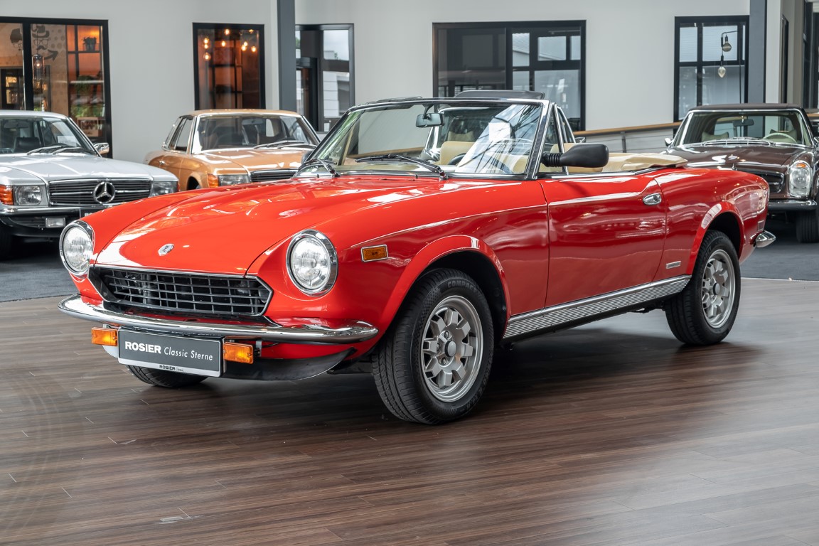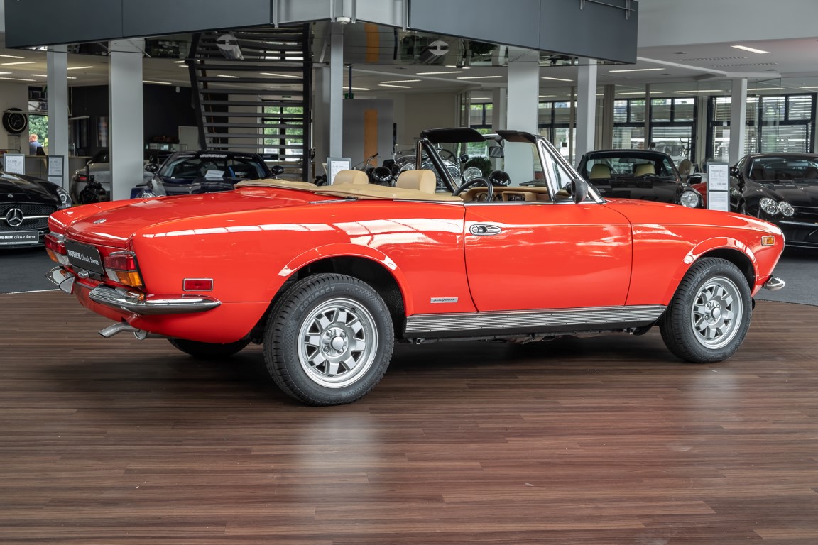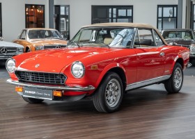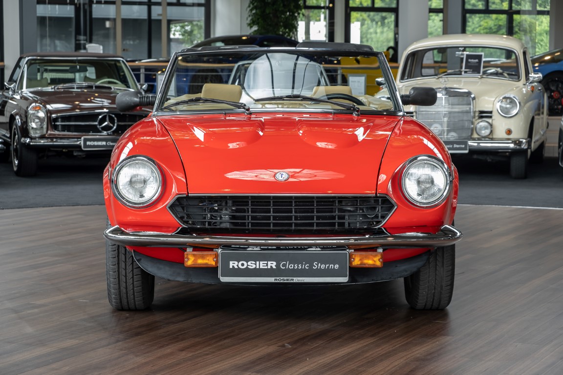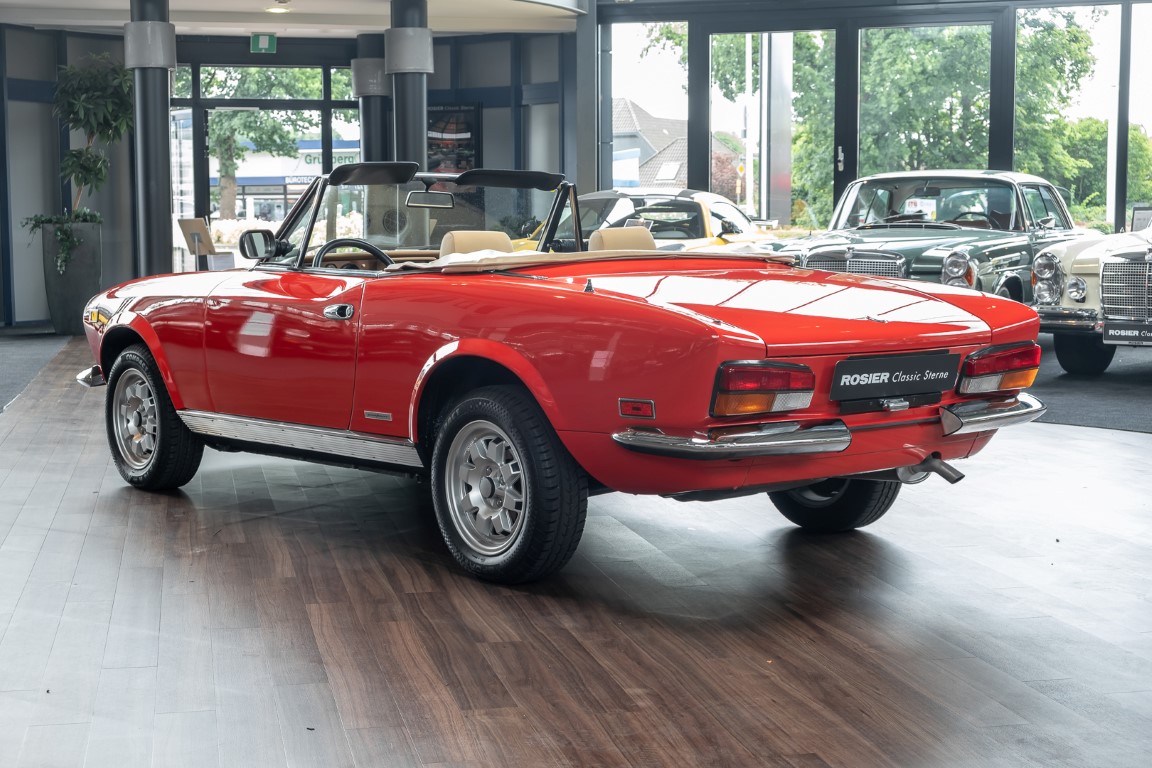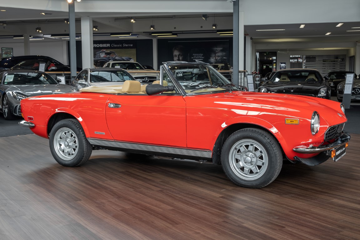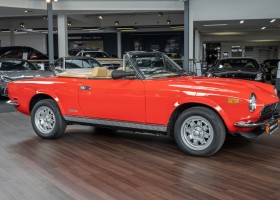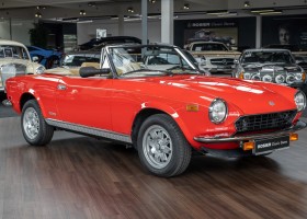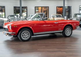 The Fiat 124 Spider was introduced at the 1966 Turin Motor Show. "It was a real beauty", as the Fiat 124 Spider Club so aptly described it, "a true sports car of its time". It was most popular in Germany and the USA and turned out to be a real bestseller. When FIAT took the model out of the range in the autumn of 1982, the Spider continued to be built in the Pininfarina factory until 1985. For the European market it was called Pininfarina Spider Europe, for the US market it was affectionately called Pininfarina Spider Azzurra. The Pininfarina Spider Azzurra offered here was manufactured in 1983 and delivered to its first owner in dry Denver/Colorado in the USA. It was not driven much and was temporarily in the prestigious LeMay car museum in Denver. When the car was sold to its second owner in 1990, it had just run 9,500 miles. The second owner had also not driven the car very much, but had taken good care of it. He sold the car in 2014 to Westgor Nathan Todd in Burnsville/Minnesota from whom we were finally able to take it over. We are pleased to be able to offer you this chic Pininfarina Spider Azzurra with just over 15,500 miles (equivalent to about 25,000 km) mileage. A great opportunity to get a relatively modern classic with enormous charm.