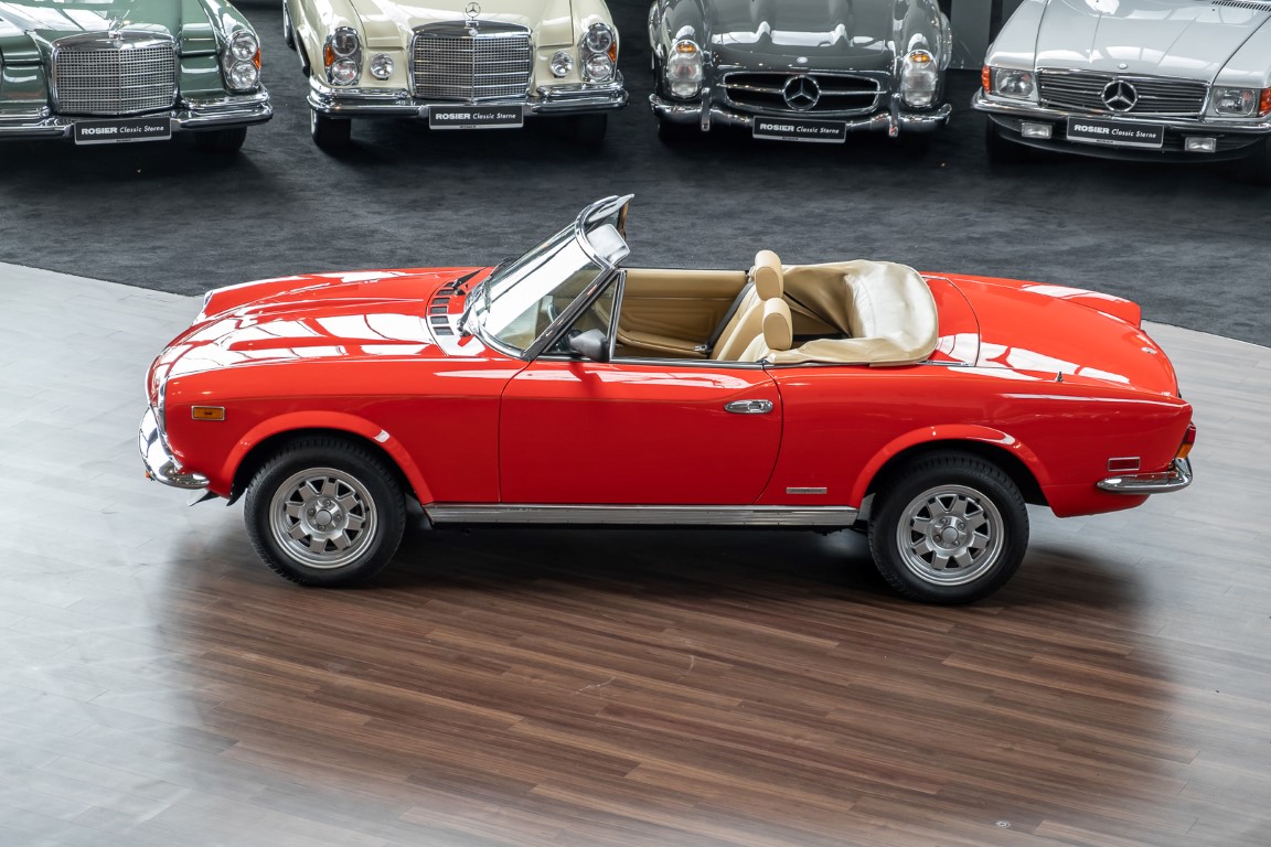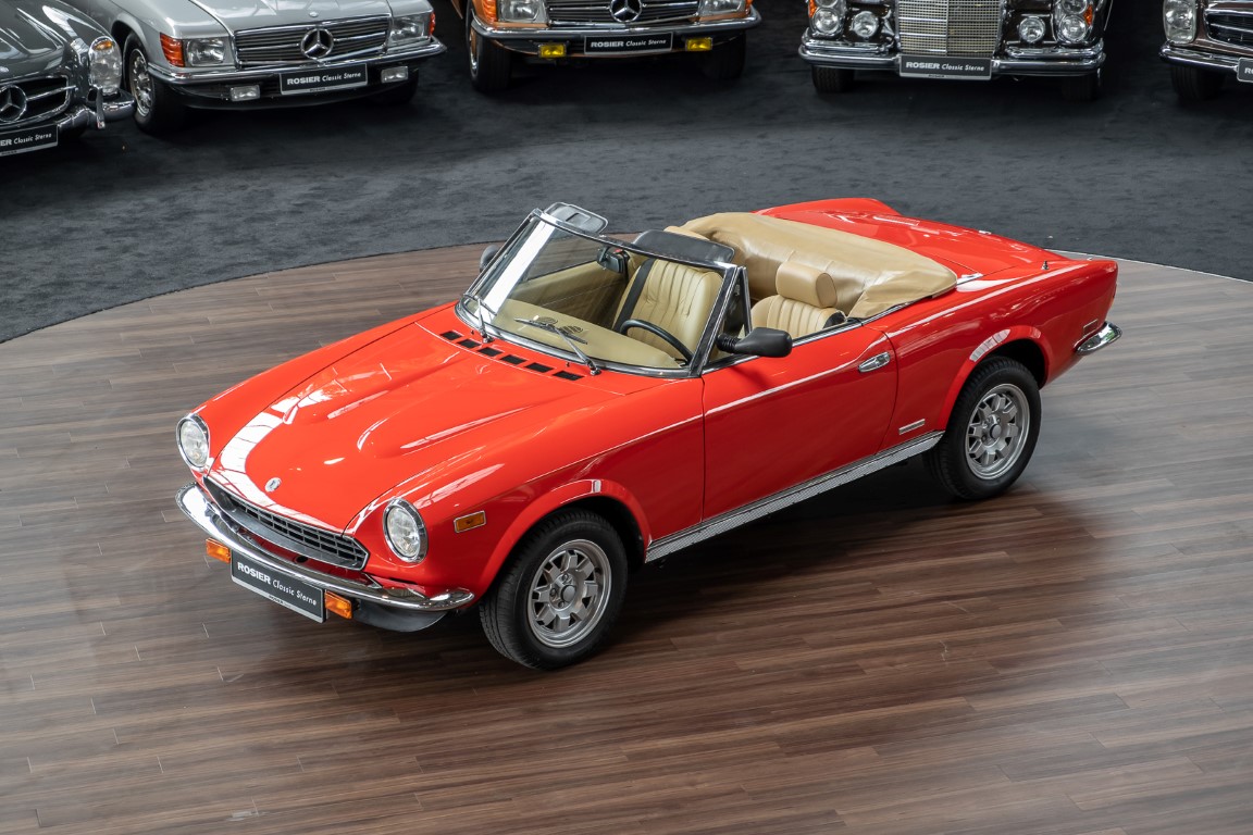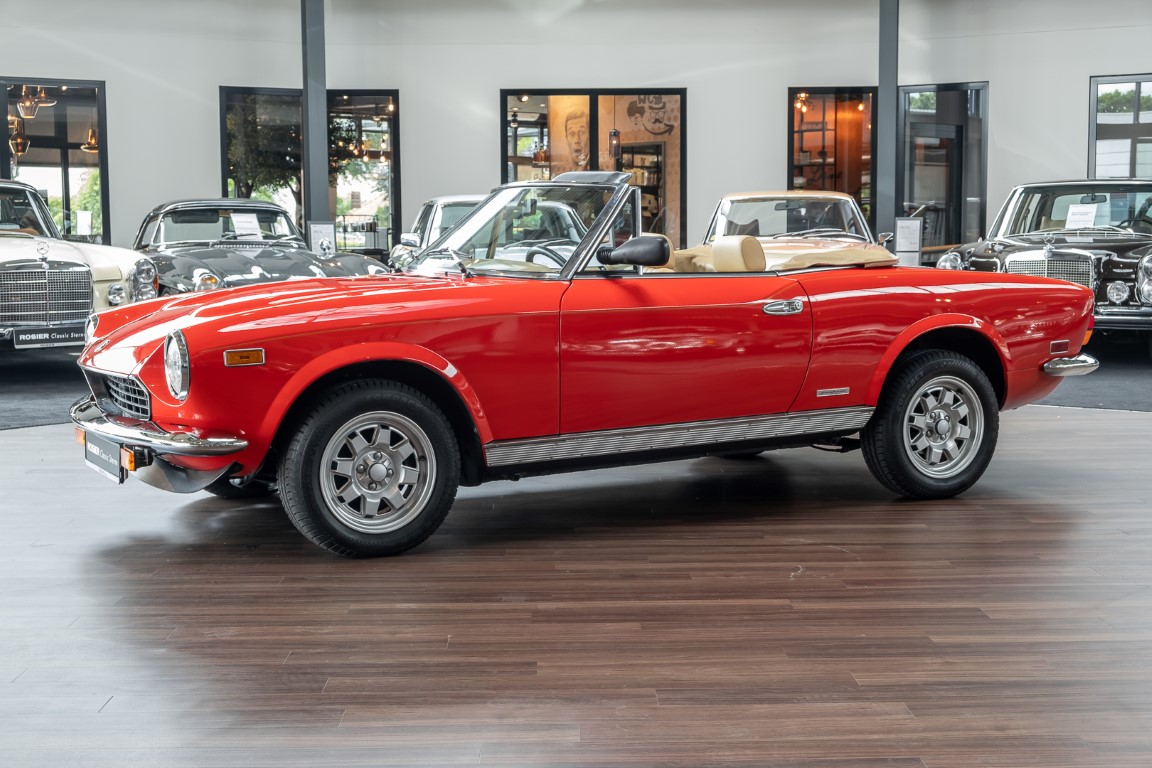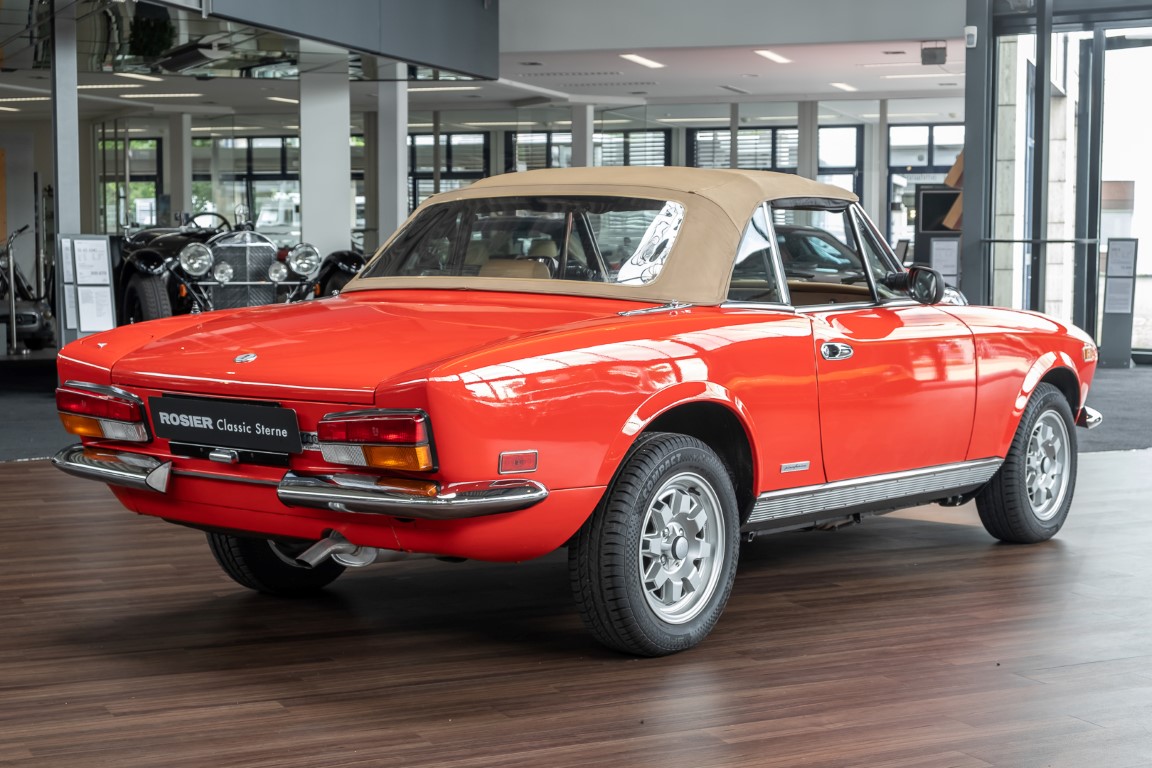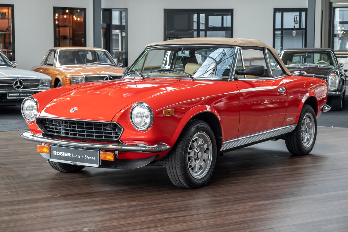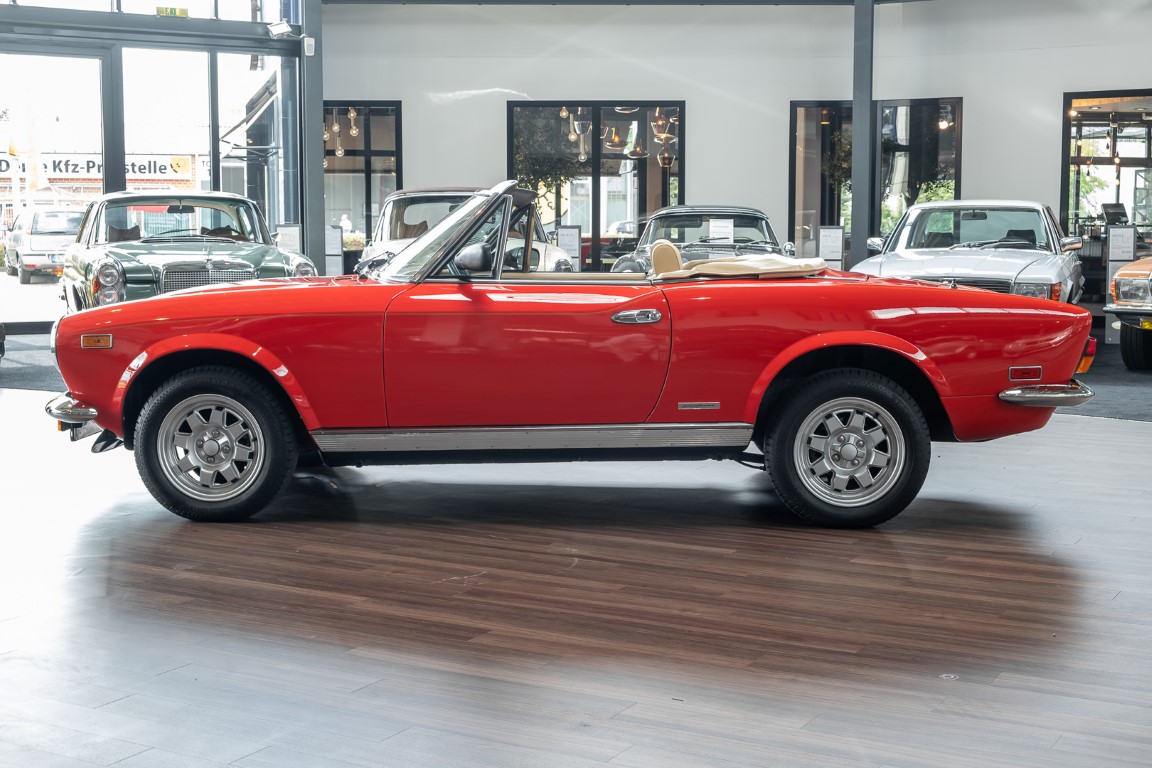 The Fiat 124 Spider was introduced at the 1966 Turin Motor Show. "It was a real beauty", as the Fiat 124 Spider Club so aptly described it, "a true sports car of its time". It was most popular in Germany and the USA and turned out to be a real bestseller. When FIAT took the model out of the range in the autumn of 1982, the Spider continued to be built in the Pininfarina factory until 1985. For the European market it was called Pininfarina Spider Europe, for the US market it was affectionately called Pininfarina Spider Azzurra. The Pininfarina Spider Azzurra offered here was manufactured in 1983 and delivered to its first owner in dry Denver/Colorado in the USA. It was not driven much and was temporarily in the prestigious LeMay car museum in Denver. When the car was sold to its second owner in 1990, it had just run 9,500 miles. The second owner had also not driven the car very much, but had taken good care of it. He sold the car in 2014 to Westgor Nathan Todd in Burnsville/Minnesota from whom we were finally able to take it over. We are pleased to be able to offer you this chic Pininfarina Spider Azzurra with just over 15,500 miles (equivalent to about 25,000 km) mileage. A great opportunity to get a relatively modern classic with enormous charm.