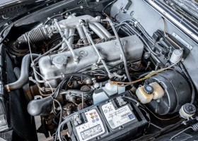 The current owner fell in love with the shiny black lacquer dress of the open five-seater, which apparently the previous owner - a coachbuilder from the Ruhr area - had chosen for the vehicle. According to records, the vehicle was delivered in metallic copper. However, it looks good on him, the black paint with black top and a well-preserved leather interior in parchment. A good decision, we think.