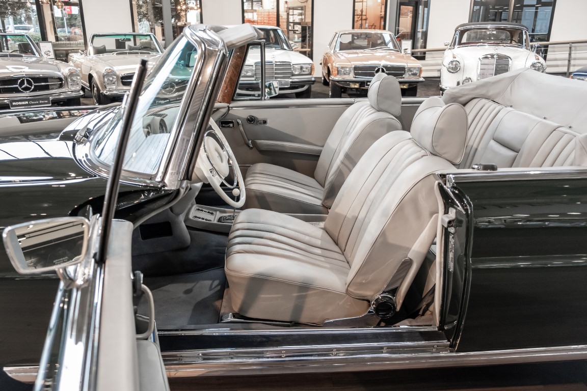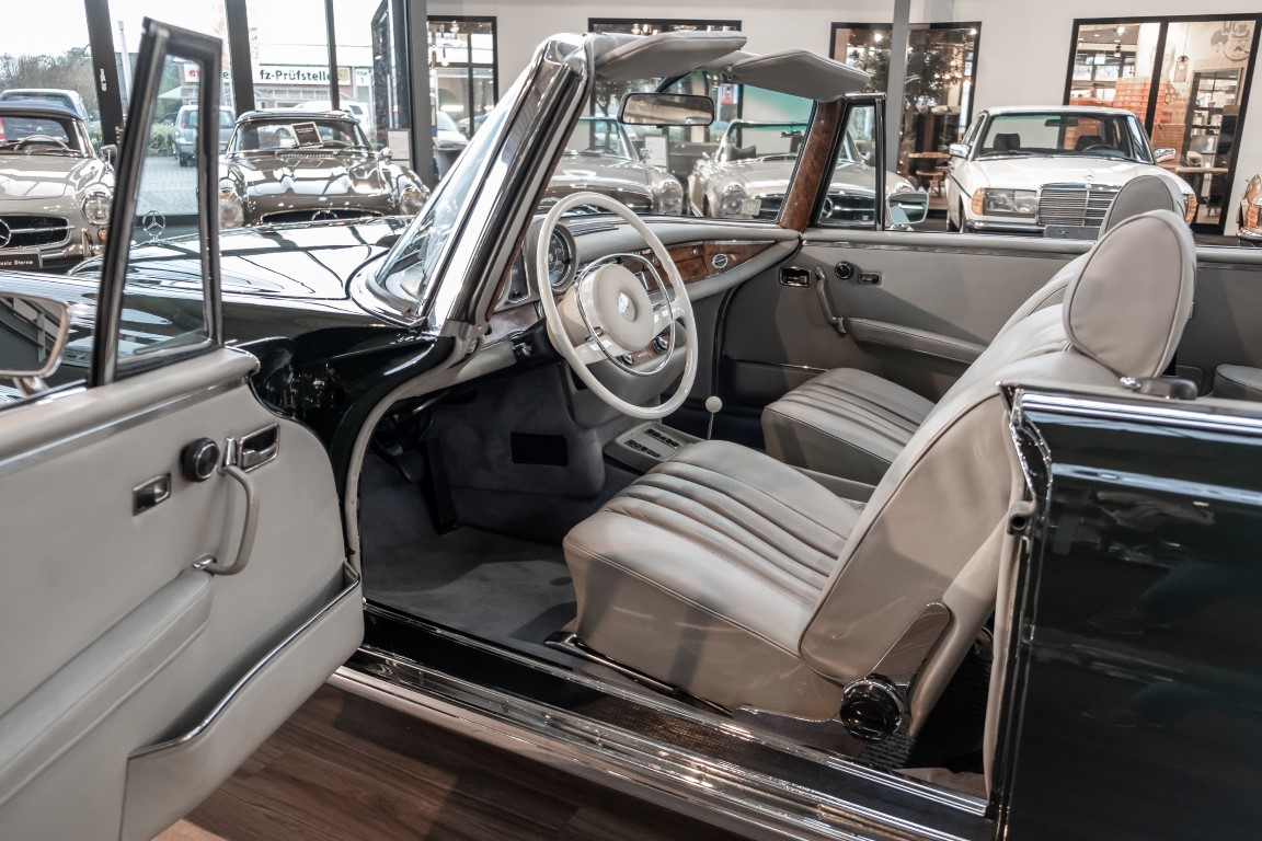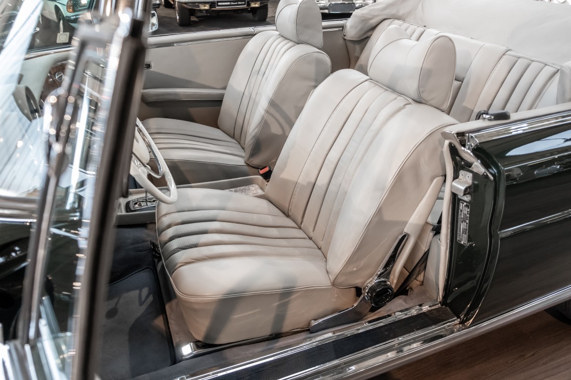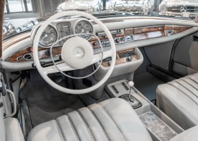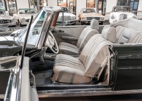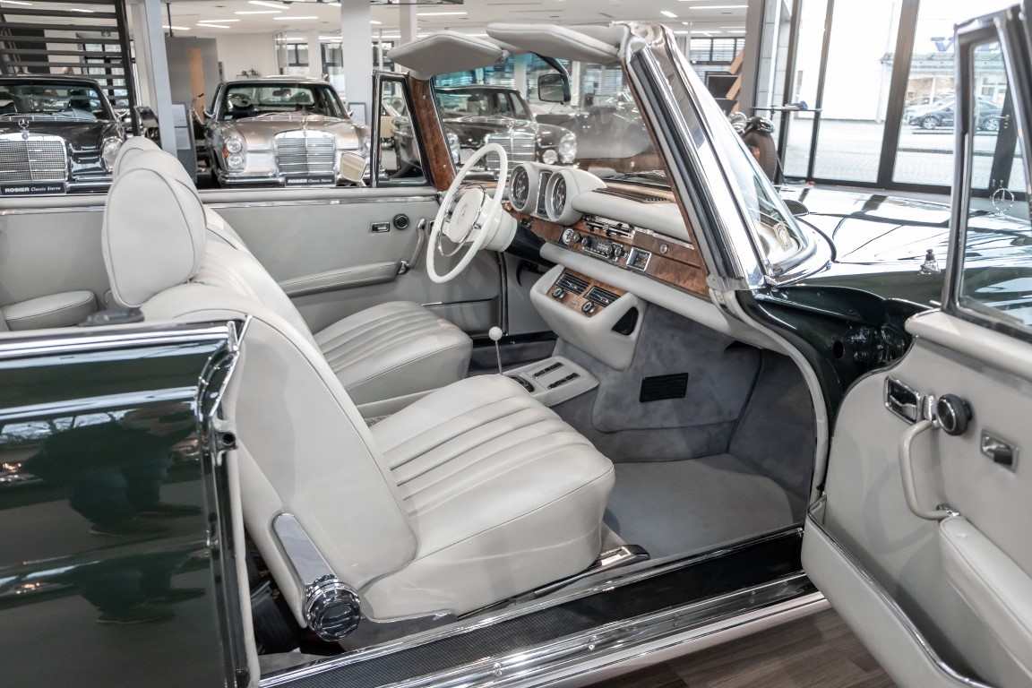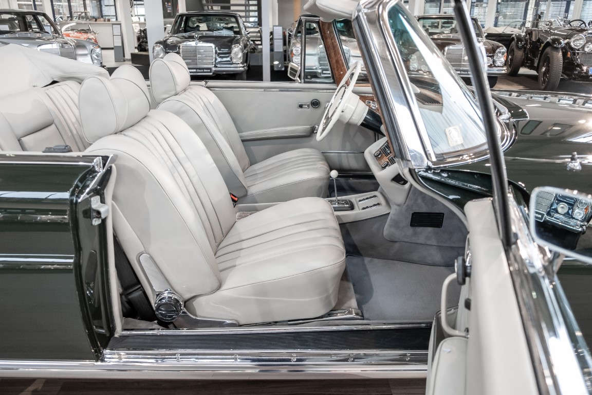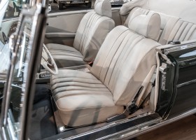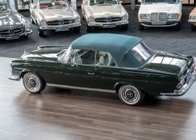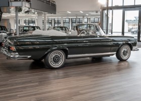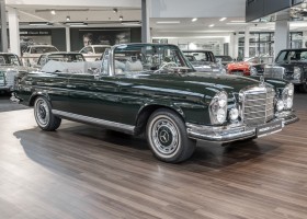 An S-Class Cabriolet from Mercedes-Benz has always been one of the most exclusive vehicles in the world. The Mercedes-Benz 280SE Cabriolet offered here comes from the much sought-after flat cooler series of which only about 1,390 vehicles were built. The Mercedes dealer from Los Angeles in California USA, had tastefully assembled the car and ordered it from the Mercedes-Benz factory. Simply a feast for the eyes in elegant dark olive green and grey leather interior was delivered. Completely in the style and taste of the wealthy buyer clientele. The car quickly found a buyer who cruised with it through sunny California for the next few years. In 1989 it came into the possession of Elizabeth "Betsy" Asher, a music industry insider and daughter of a good family. She worked as a publicist, was a self-proclaimed political news junkie, was passionately devoted to animal welfare, and knew many best-known musicians and songwriters on the rock music scene. In 2013, the elegant convertible came to Germany via a dealership for classic automobiles in Rhineland-Palatinate into the possession of an entrepreneur from Lower Saxony. In his possession, the car was lovingly maintained and always kept in top condition. The last work was done in our house in 11.2020 and included the extensive overhaul of the automatic transmission. Now the car is to get a new home. A great chance to get one of the noble Flachkühler Cabriolets at an interesting price. We are happy to advise you.
