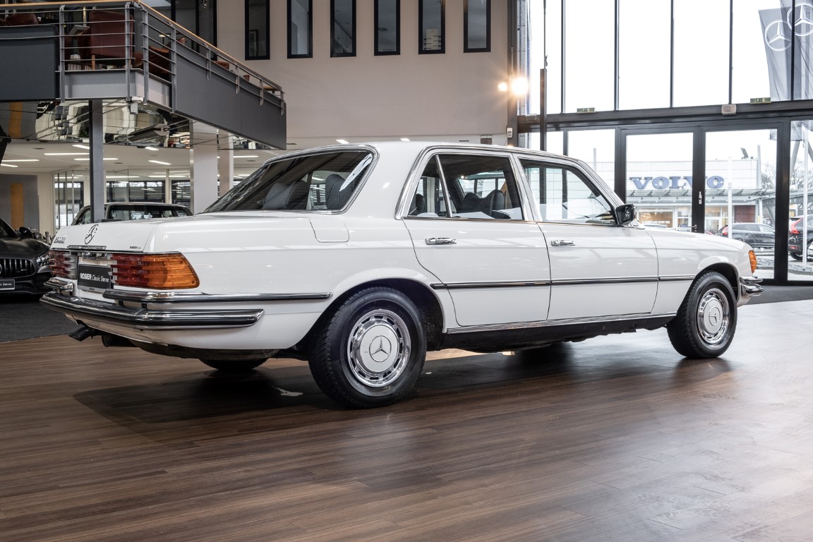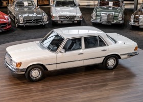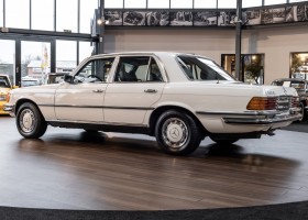 The Mercedes-Benz 280SE offered by us was registered to its first owner in Japan on 28.09.1979. On 28.11.1980 the car was registered to its 2nd owner in Japan. He kept the car in his possession for the next about 28 years. On 30.04.2008 the elegant limousine was purchased by its only 3rd owner and kept it until 2012. A German lover of classic cars was long in search of a Mercedes-Benz limousine from the W116 series. His wish was to find a vehicle with the lowest possible mileage and optimal condition. During his search he came across the vehicle offered here and was thrilled by its originality and the above-average condition. He immediately decided to buy it and took the car back to his native country, Germany. He enjoyed moving the car here and there for the next 3 years and enjoyed its reliability. His demand for perfection was so high that he invested many more Euros in the car to optimize its condition. Now a new possibly open classic car shall be purchased and a new loving home shall be found for this limousine. Your chance of a reliable everyday classic with the driving characteristics of a luxury class limousine. A real S-Class. Experience the comfort and luxury of the 70s.