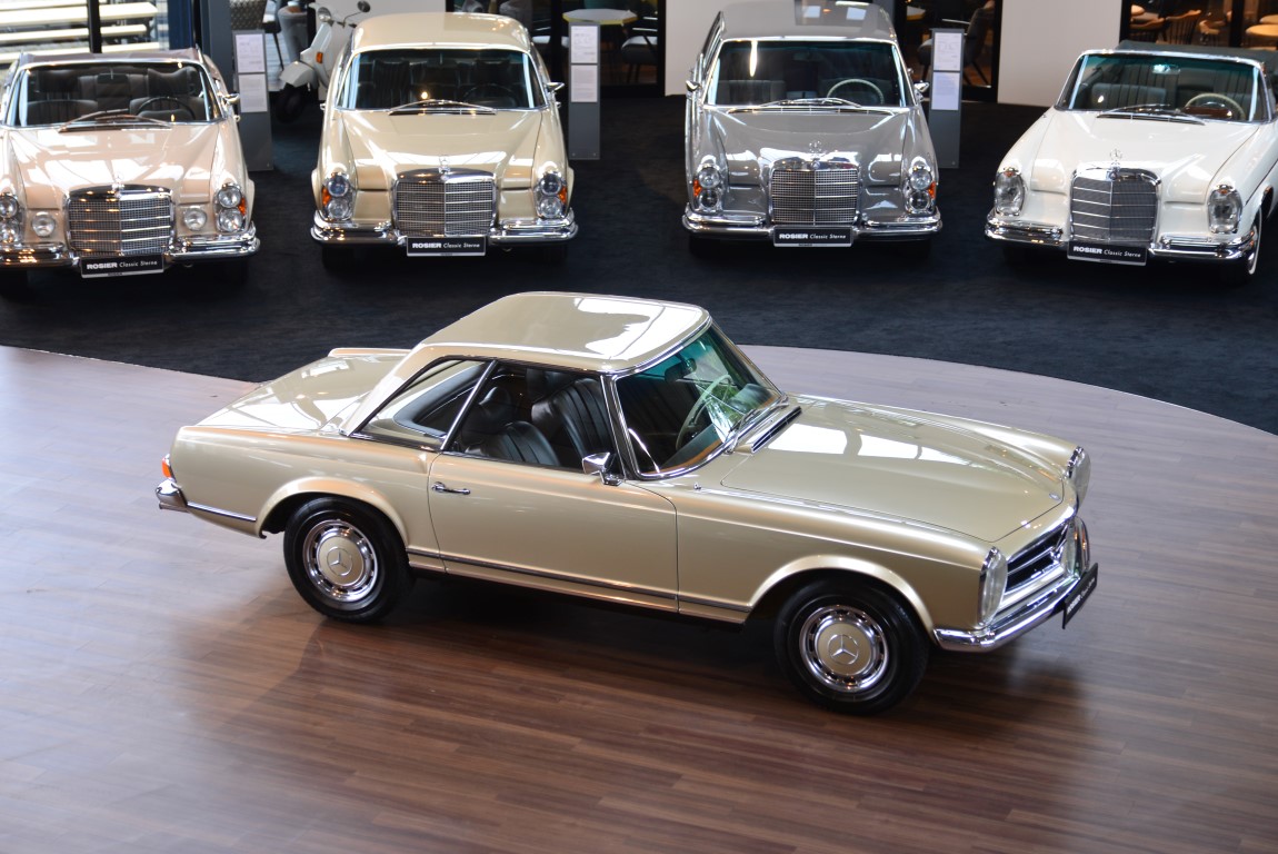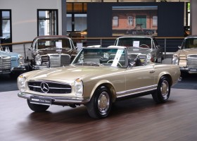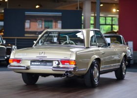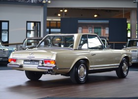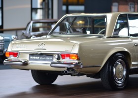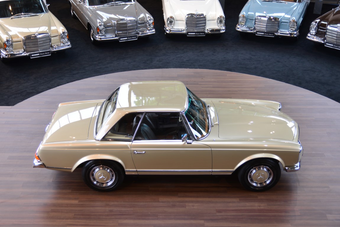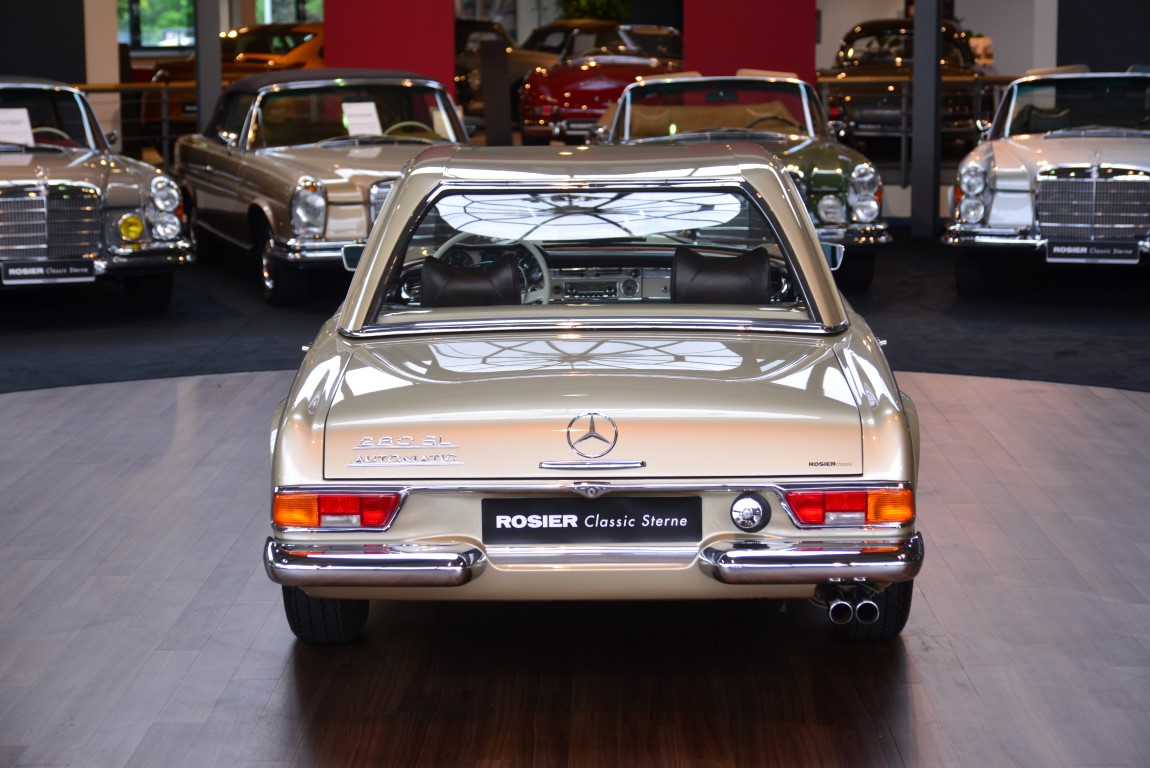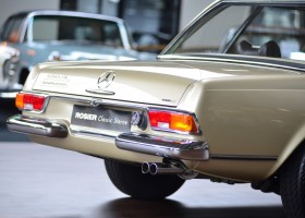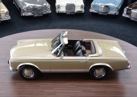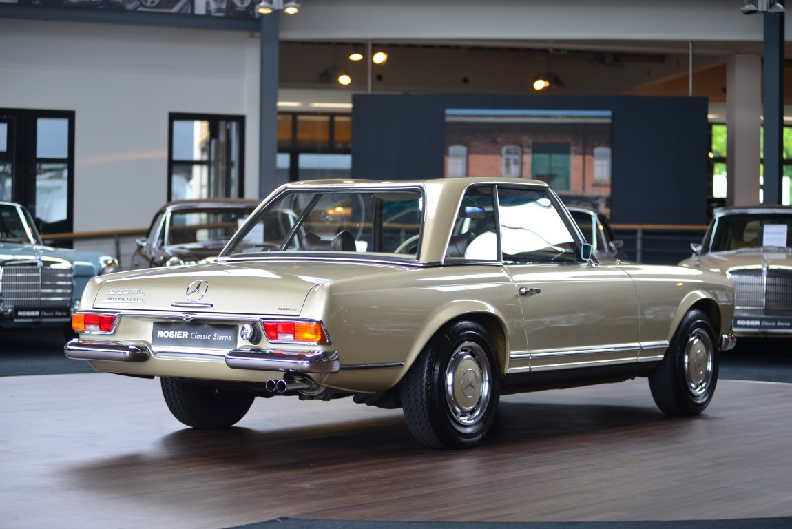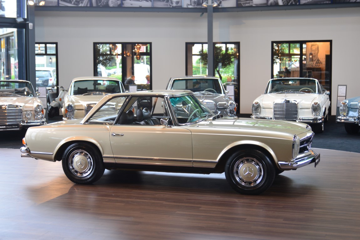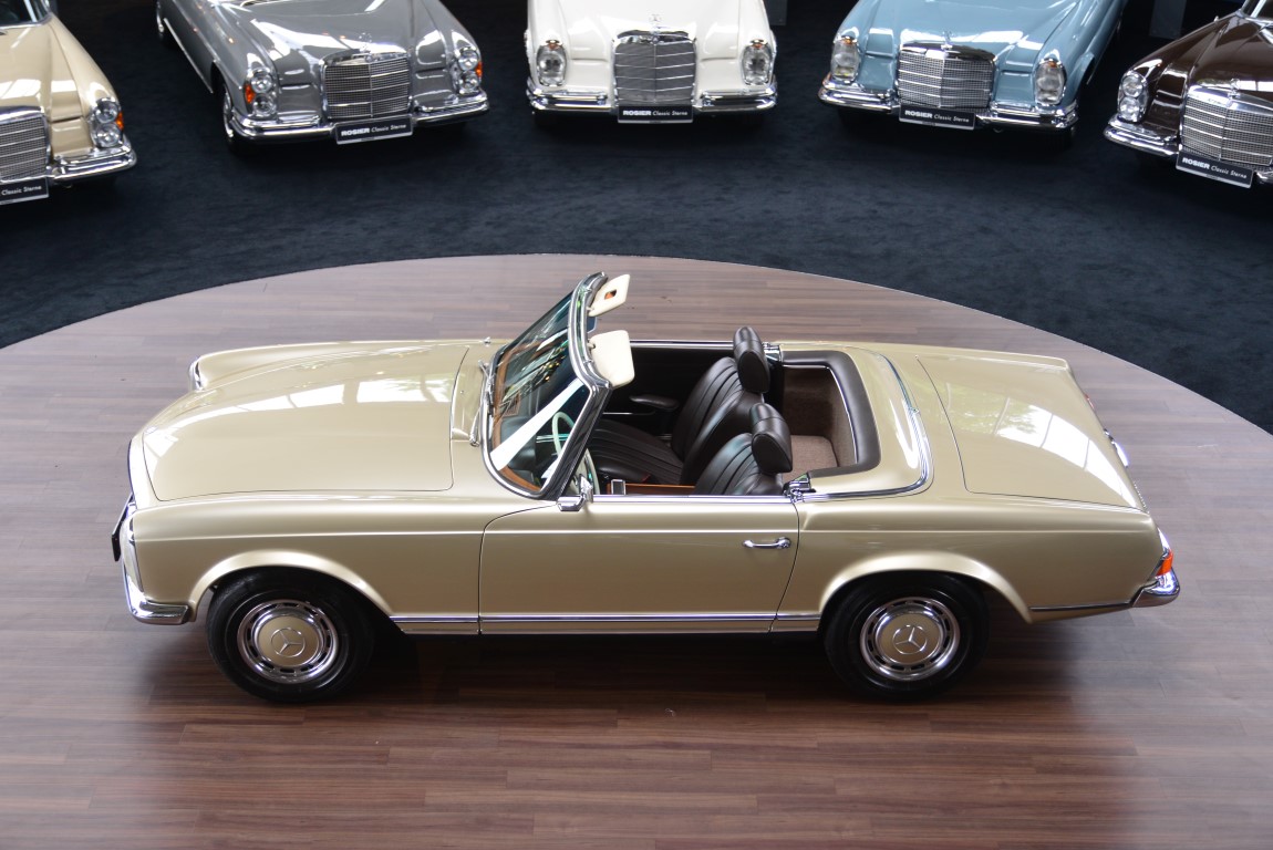 This Mercedes-Benz 280SL Roadster from the so popular series W113 was delivered on 18.04.1968 to an old-established furniture store in Hamburg. The maintenance was mostly done at Mercedes-Benz in Hamburg, as still existing copies of invoices prove. A new factory gearbox was installed in 1981, which is proven by the original Aggregate-Pass. The car remained there until it was sold to a hotelier in Belgium in 2007. The Mercedes-Benz partner in Mechelen provided all the years for the best possible maintenance and preservation of the car. The hotelier kept the roadster in his possession until 2014. In 2014 the elegant pagoda came in excellent condition to Mercedes-Benz partner Autohaus Rosier in the Ammerländer Heerstraße in Oldenburg. An extensive inspection was carried out and the car was put in top condition. The leather upholstery was faithfully renewed by the Mönnich car saddlery in Oldenburg, known for the best leather work. A lover of classic Mercedes-Benz vehicles had taken a great liking to the car and purchased it for his collection. In order to preserve the car and to avoid damage to the car, the pagoda was occasionally used for journeys only in good weather. Now that the collection is to be reduced in size, we are pleased to be able to offer you this magnificent pagoda again. Everything works, no maintenance jam, ready for use even on long distances.