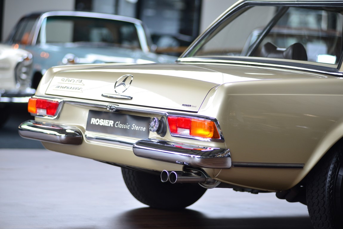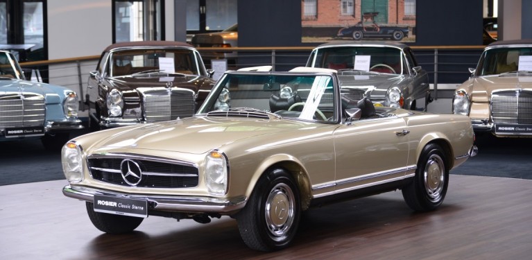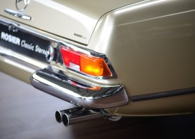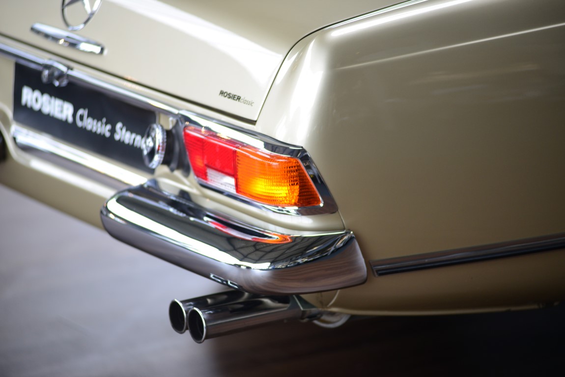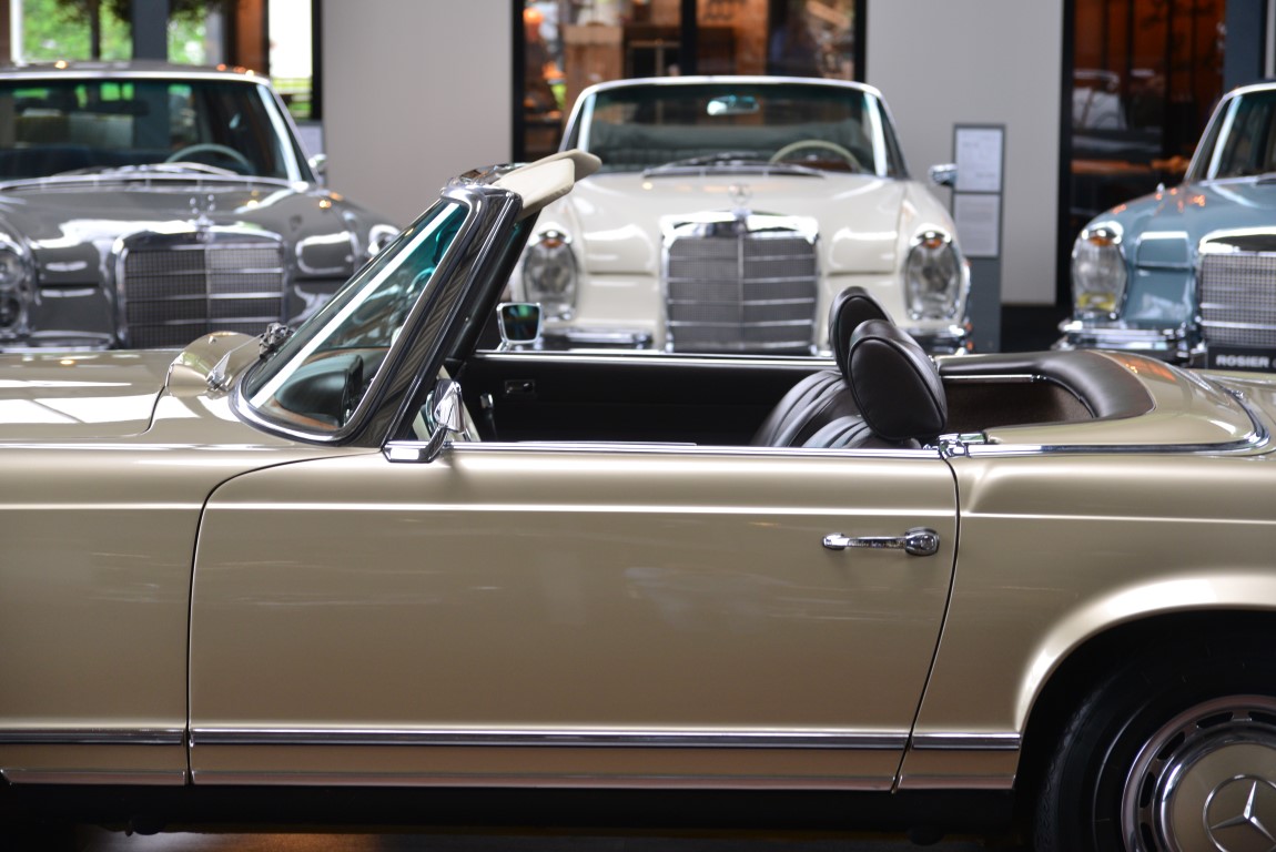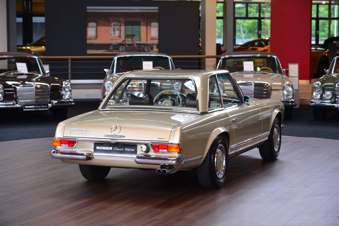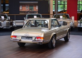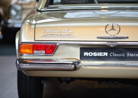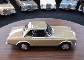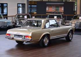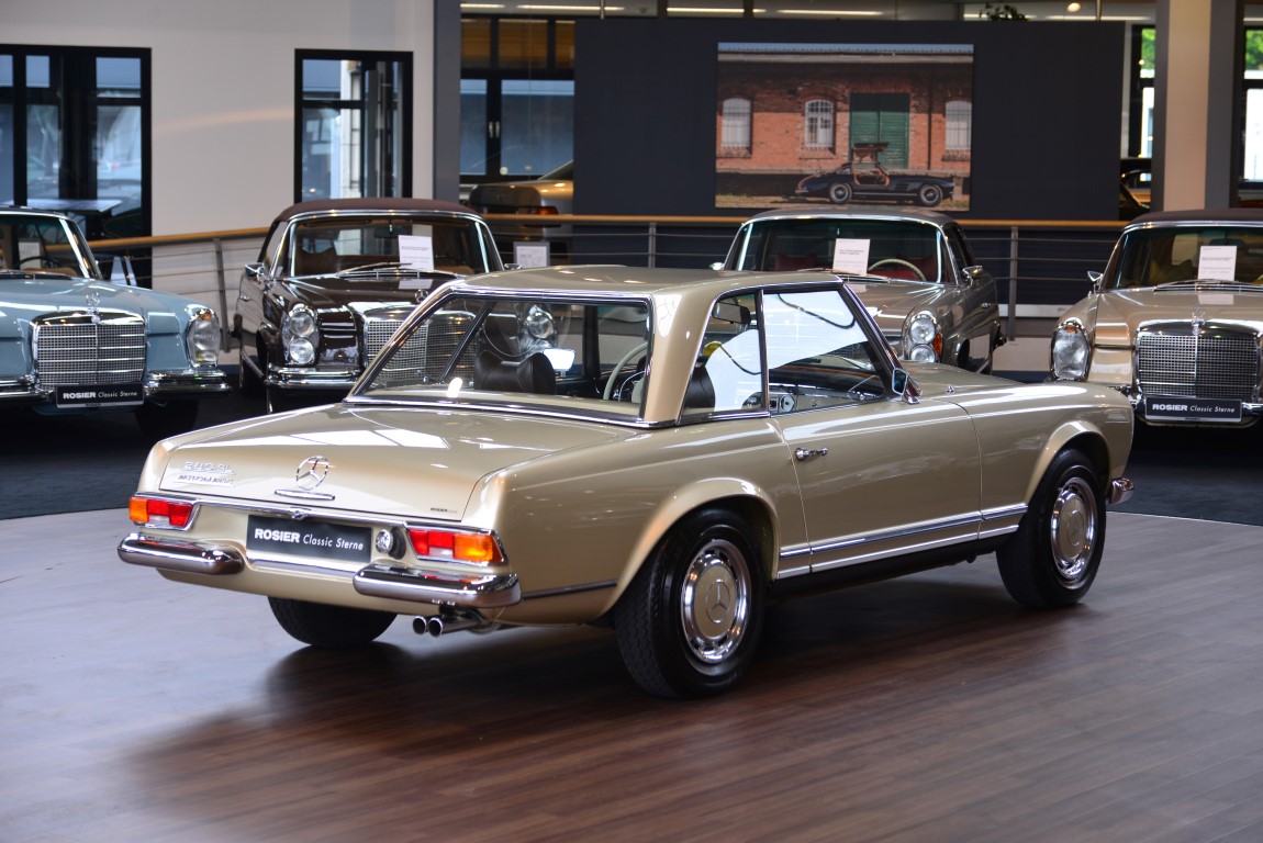 This Mercedes-Benz 280SL Roadster from the so popular series W113 was delivered on 18.04.1968 to an old-established furniture store in Hamburg. The maintenance was mostly done at Mercedes-Benz in Hamburg, as still existing copies of invoices prove. A new factory gearbox was installed in 1981, which is proven by the original Aggregate-Pass. The car remained there until it was sold to a hotelier in Belgium in 2007. The Mercedes-Benz partner in Mechelen provided all the years for the best possible maintenance and preservation of the car. The hotelier kept the roadster in his possession until 2014. In 2014 the elegant pagoda came in excellent condition to Mercedes-Benz partner Autohaus Rosier in the Ammerländer Heerstraße in Oldenburg. An extensive inspection was carried out and the car was put in top condition. The leather upholstery was faithfully renewed by the Mönnich car saddlery in Oldenburg, known for the best leather work. A lover of classic Mercedes-Benz vehicles had taken a great liking to the car and purchased it for his collection. In order to preserve the car and to avoid damage to the car, the pagoda was occasionally used for journeys only in good weather. Now that the collection is to be reduced in size, we are pleased to be able to offer you this magnificent pagoda again. Everything works, no maintenance jam, ready for use even on long distances.