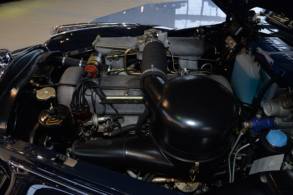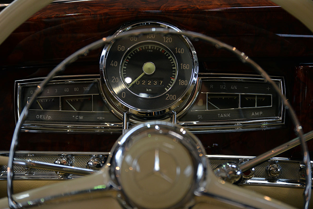 The Mercedes-Benz model series W188 was presented to the public in 1951 at the ‘Mondial de l’Automobile’ in Paris. In 1955 the model series that consisted of a Coupé, a Cabriolet and a Roadster, whas been revised and renamed to 300 SC. In addition to plenty of chrome trim, a laborious fuel injection was installed which brings the powerful performance of 175 HP to the car.