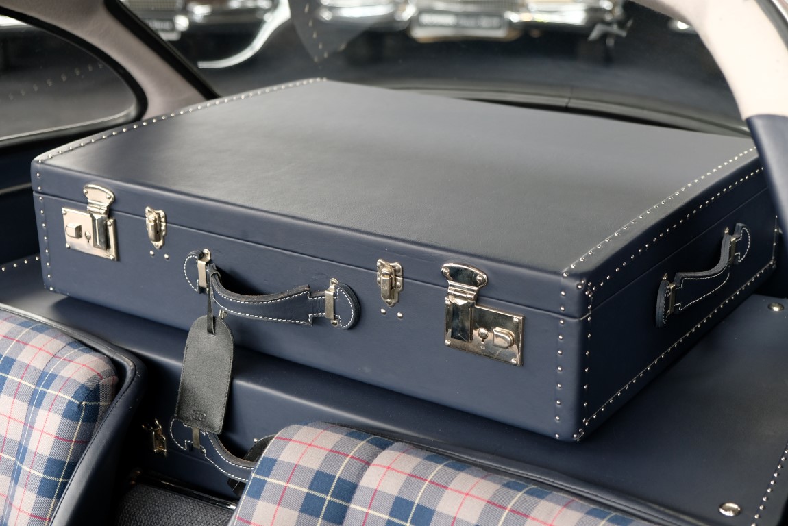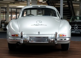 He had the car from 1998 to 2000 undergo a major restoration, in the context of which the engine was completely disassembled and rebuilt. The paint was renewed as well as the whole interior. The silver-gray metallic paintwork is reminiscent of the once-unbeatable Silver Arrows, the blue interior in Checkered fabric, underlines the sporty appearance of the coupe. The equipment is completed by the so-called Rudge central hub hubs and a suitcase made of blue leather precisely tailored, on the shelf behind the seats. A Classic Data Report from 2014 documents the condition of the car with a smooth 1 as condition assessment. All in all a dream 300 SL gullwing with top marks. The ticket to high-profile events. With a stunning body shape, which attracts even after more than 60 years still highly enthusiastic glances.