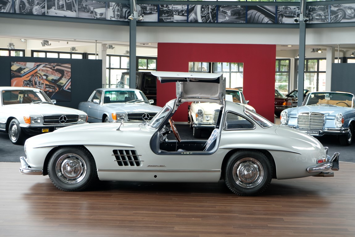 The offered here Mercedes-Benz 300SL coupe was registered on 04.07.1955 and found his home in the US American "Sunshine State" Florida. As a result, the car came back to Europe and was delivered in the capital of France, in Paris. From Paris his way led to his country of birth, to Germany. A collector from Hesse liked the sporty Mercedes B Benz Coupe with the impressive double doors.