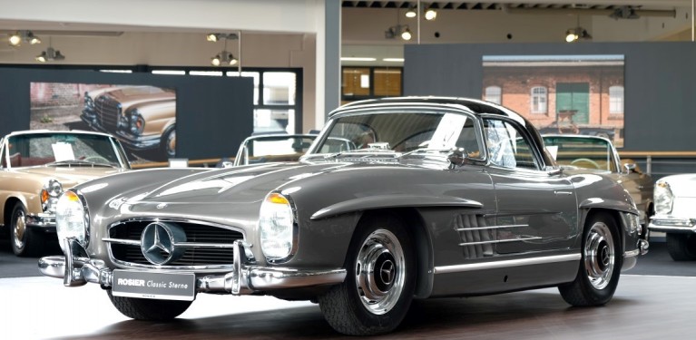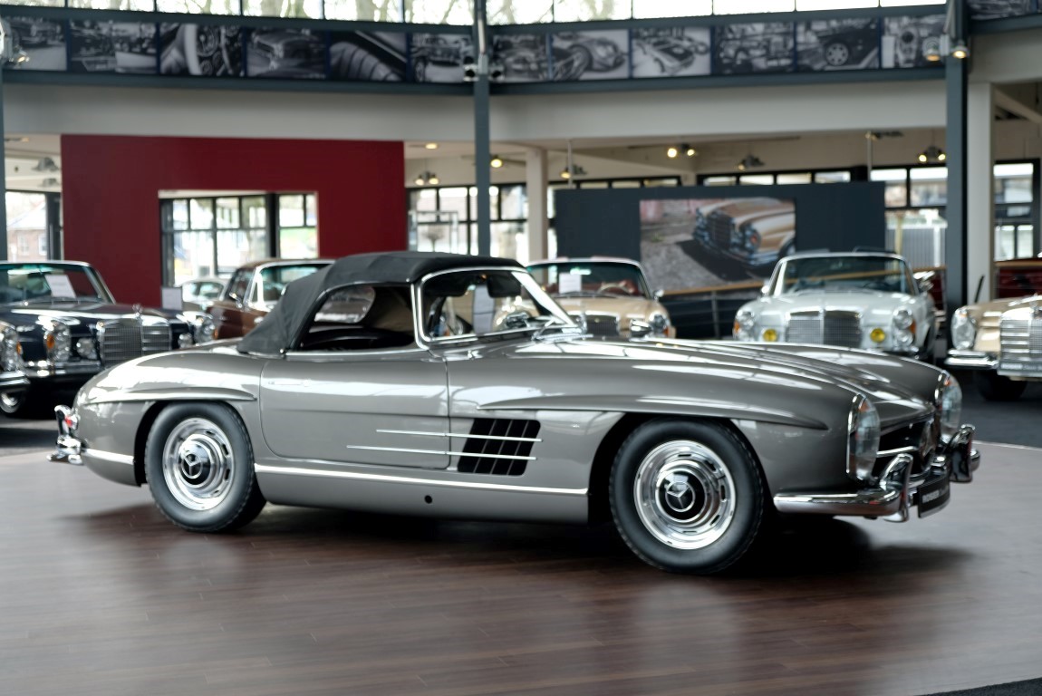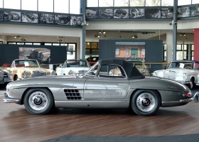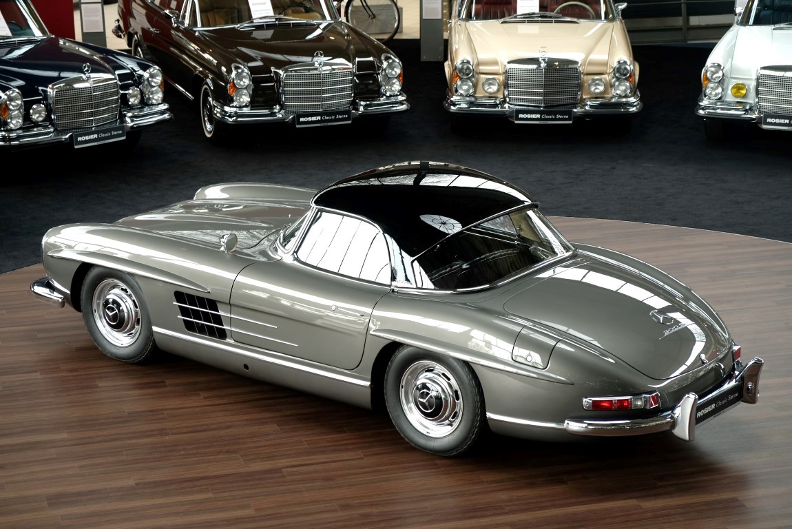 The 300 SL Roadster replaced the legendary 300 SL Gullwing and was sold in the years 1957 to 1963 with great success. If you consider that the competition model BMW 507 at that time just 252 copies found a customer, the Mercedes-Benz 300SL Roadster with 1,858 units produced is quite a great success. The technology of the Roadster is equal to that of the gullwing and also includes, derived from a racing engine powerful straight-six, with direct injection. The 300SL models were not cheap, but exclusive and equipped with advanced technology. Anyone who had money, just wanted to afford the best. So the 300 SL Roadster found some buyers in high society. To them belonged for example: Clark Gable, Glenn Ford, Horst Buchholz and Curd Jürgens, as well as Elvis Presley and Toni Sailer.