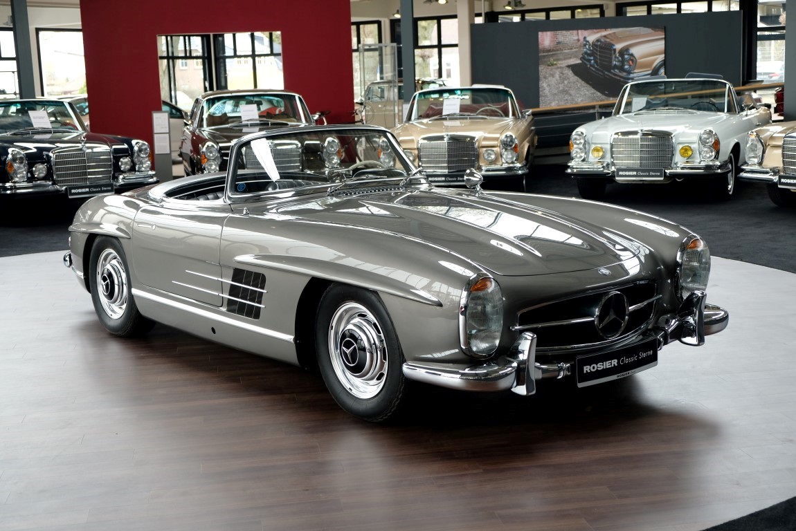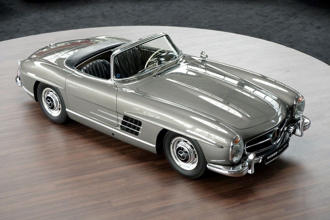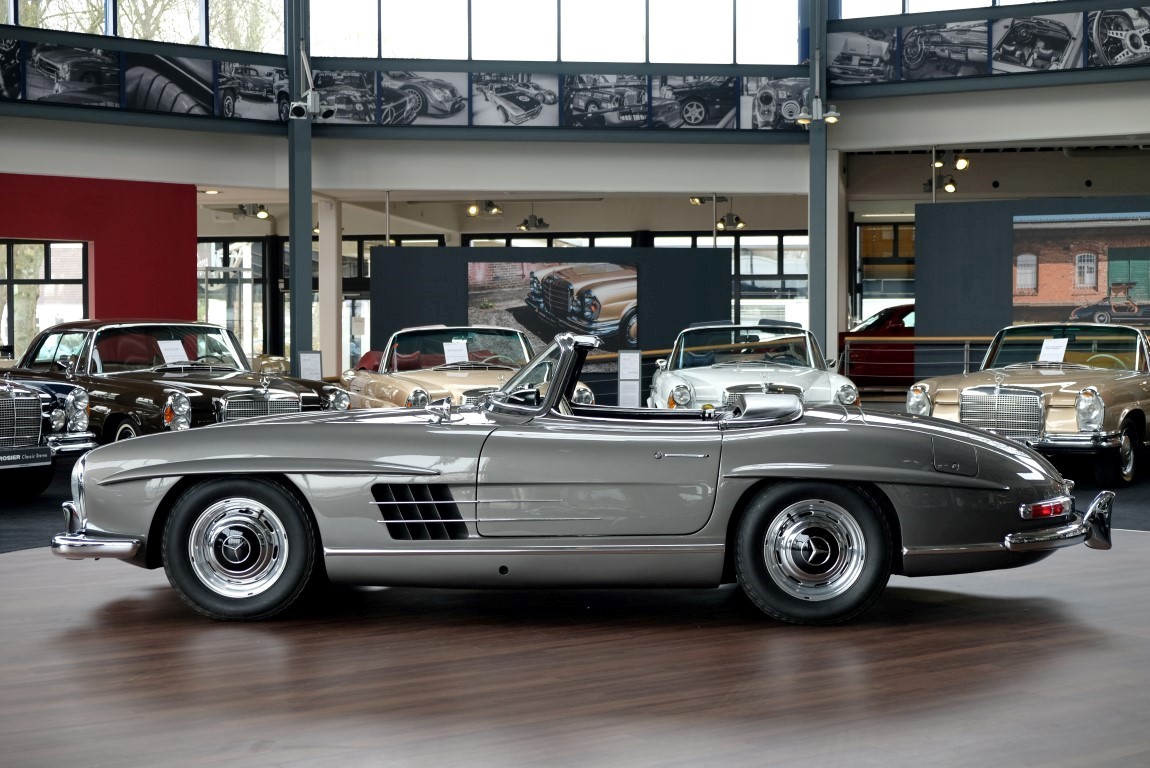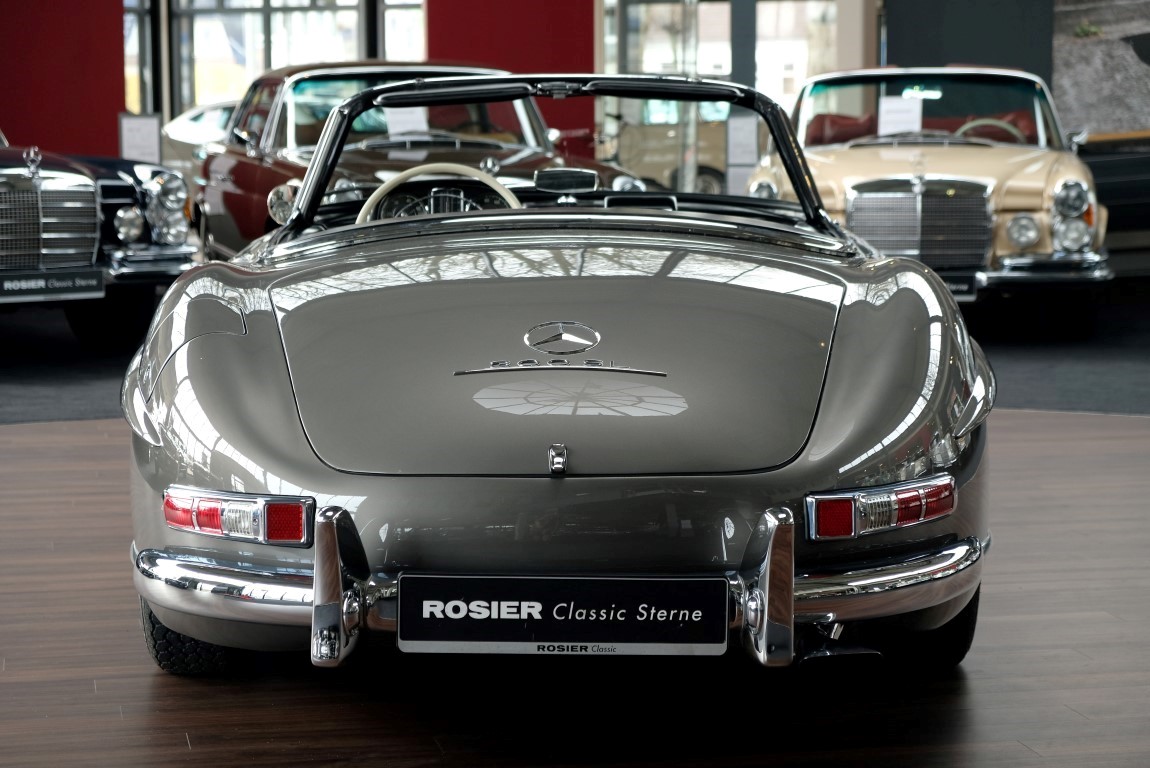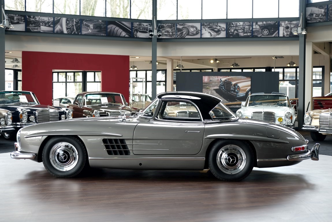 This Mercedes-Benz 300SL Roadster, which we offer, is undoubtedly one of the most sought-after examples of all. He was delivered in 1963 via the American Mercedes importer Max Hoffmann to his first owner in Ohio. A late model, already with disc brakes and the lighter aluminum engine, which has undergone careful revisio. The vehicle was equipped with a black hardtop and black hubcaps, as the car still presents today. From 1977 to 2001 he was owned by Robert B. Harris of Shelbyville Indiana. He then bought the elegant roadster Jack Hutton, which was based in Concord, New Hampshire. He kept the Roadster until 2015 and had it extensively revised at a very high level. The work was done by well-known US addresses. So did the bodywork Al Poskus, the mechanics Dave Twichell and Mike Curley dedicated to the interior. In 2018, the car got a new paintwork and presented itself in a deep shine that is unparalleled.
