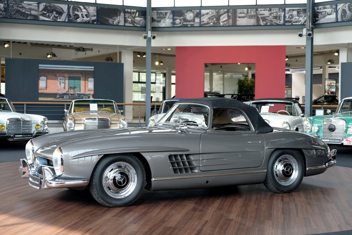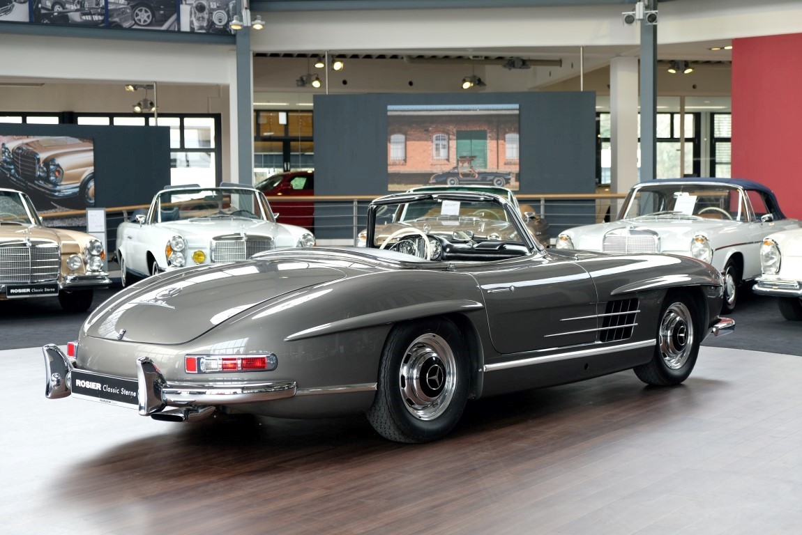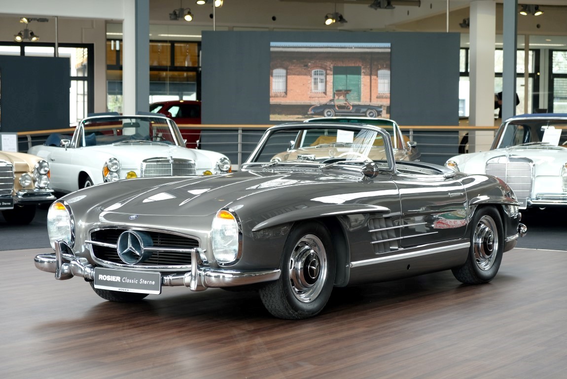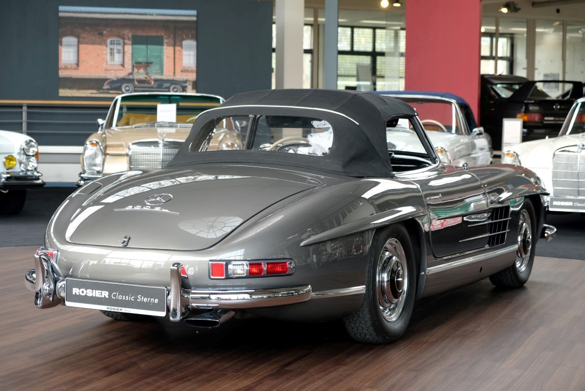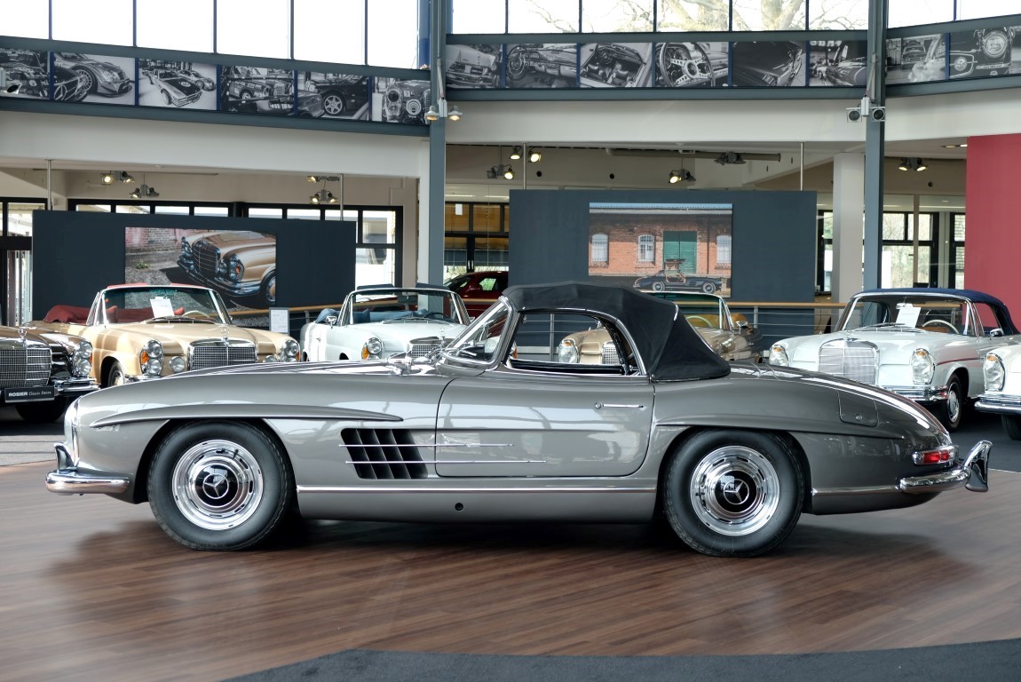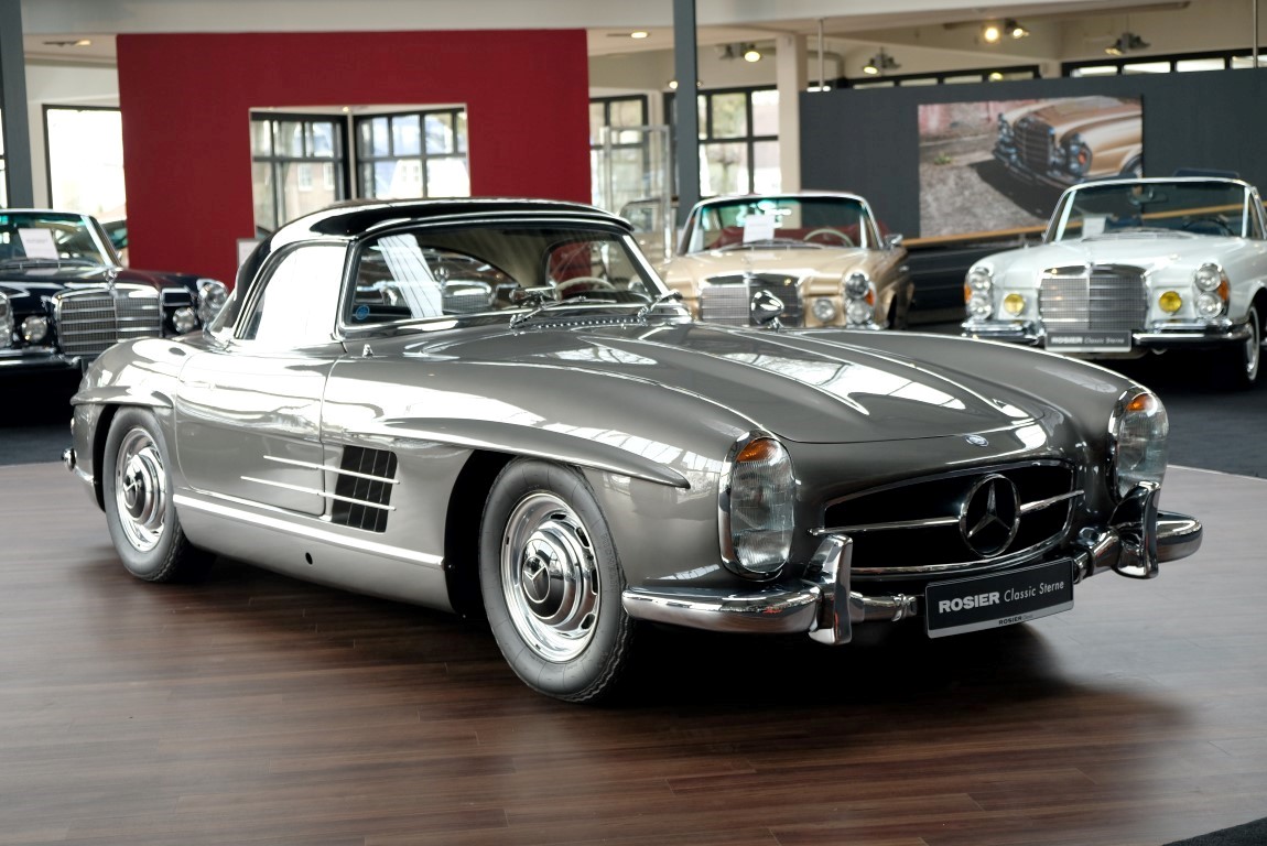 This Mercedes-Benz 300SL Roadster, which we offer, is undoubtedly one of the most sought-after examples of all. He was delivered in 1963 via the American Mercedes importer Max Hoffmann to his first owner in Ohio. A late model, already with disc brakes and the lighter aluminum engine, which has undergone careful revisio. The vehicle was equipped with a black hardtop and black hubcaps, as the car still presents today. From 1977 to 2001 he was owned by Robert B. Harris of Shelbyville Indiana. He then bought the elegant roadster Jack Hutton, which was based in Concord, New Hampshire. He kept the Roadster until 2015 and had it extensively revised at a very high level. The work was done by well-known US addresses. So did the bodywork Al Poskus, the mechanics Dave Twichell and Mike Curley dedicated to the interior. In 2018, the car got a new paintwork and presented itself in a deep shine that is unparalleled.