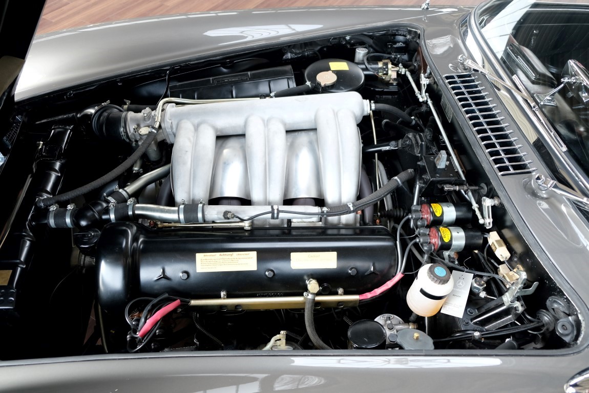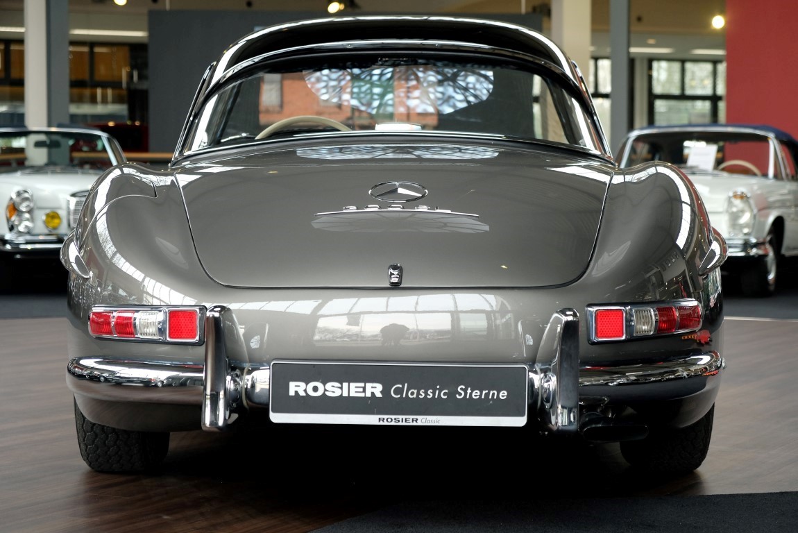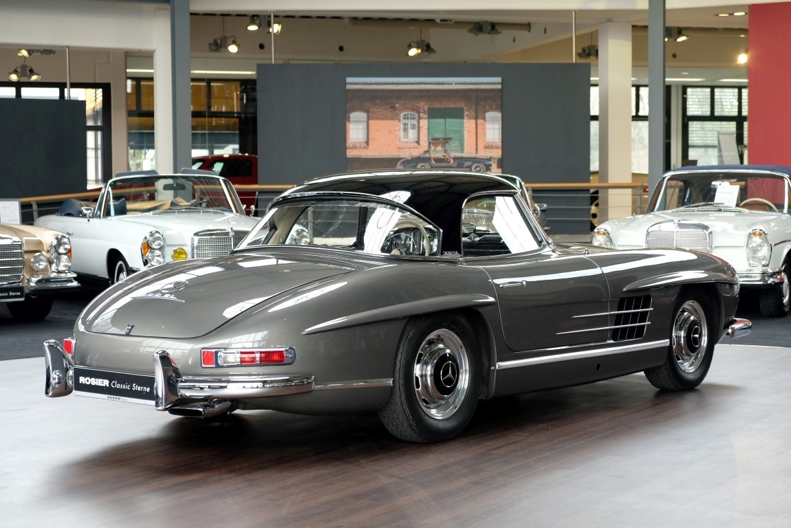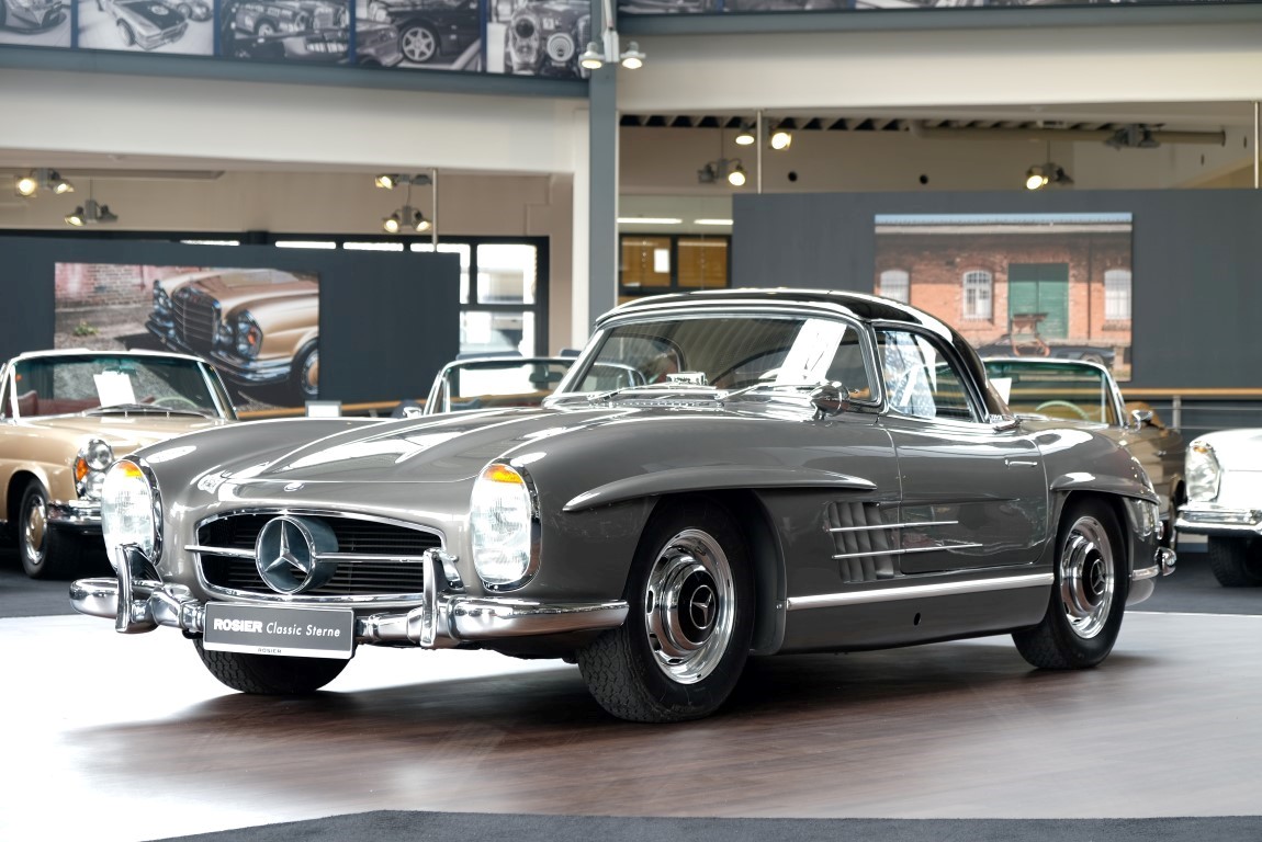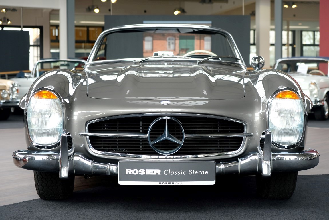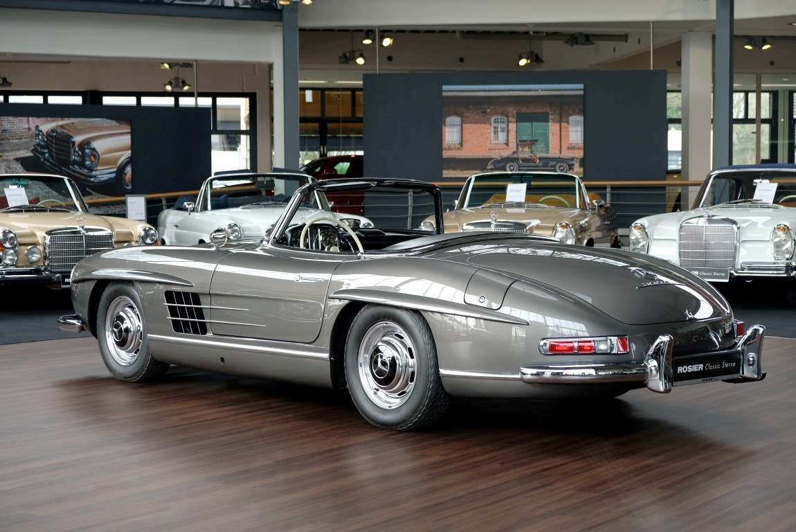 This Mercedes-Benz 300SL Roadster, which we offer, is undoubtedly one of the most sought-after examples of all. He was delivered in 1963 via the American Mercedes importer Max Hoffmann to his first owner in Ohio. A late model, already with disc brakes and the lighter aluminum engine, which has undergone careful revisio. The vehicle was equipped with a black hardtop and black hubcaps, as the car still presents today. From 1977 to 2001 he was owned by Robert B. Harris of Shelbyville Indiana. He then bought the elegant roadster Jack Hutton, which was based in Concord, New Hampshire. He kept the Roadster until 2015 and had it extensively revised at a very high level. The work was done by well-known US addresses. So did the bodywork Al Poskus, the mechanics Dave Twichell and Mike Curley dedicated to the interior. In 2018, the car got a new paintwork and presented itself in a deep shine that is unparalleled.