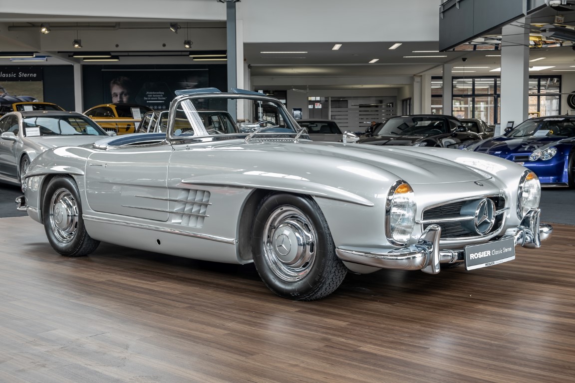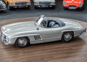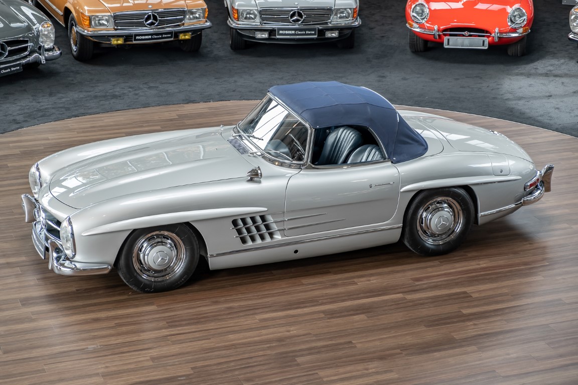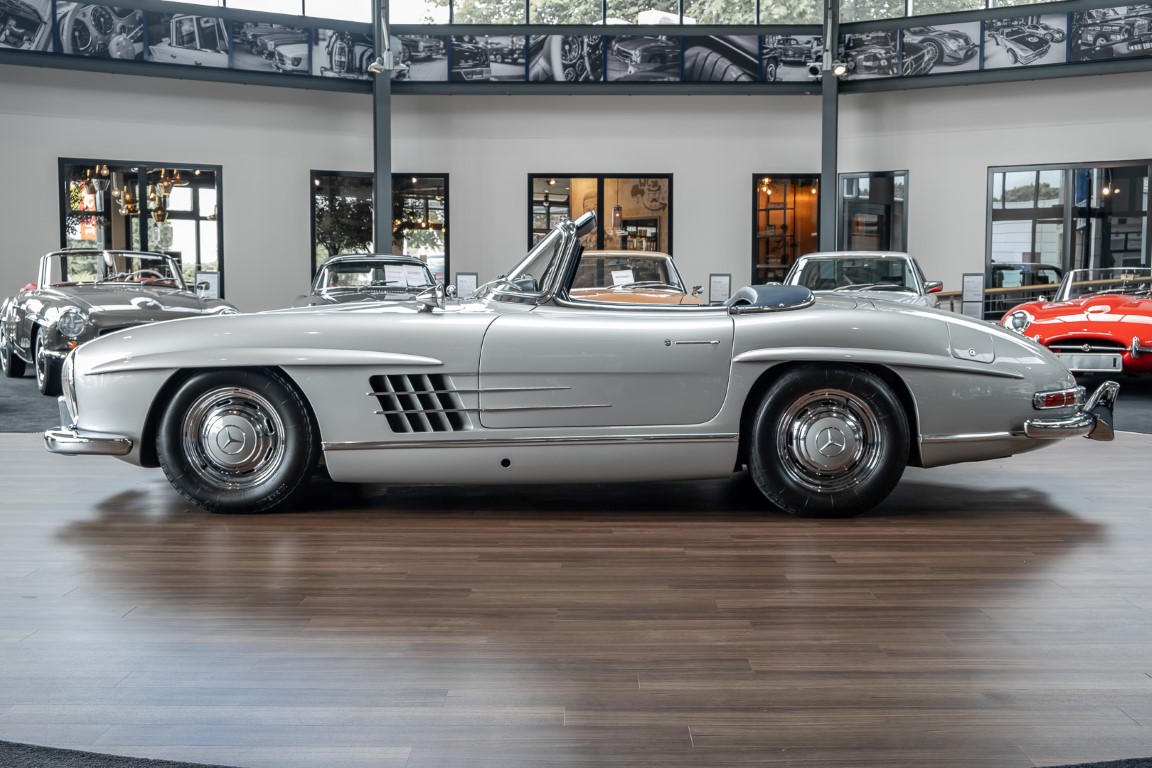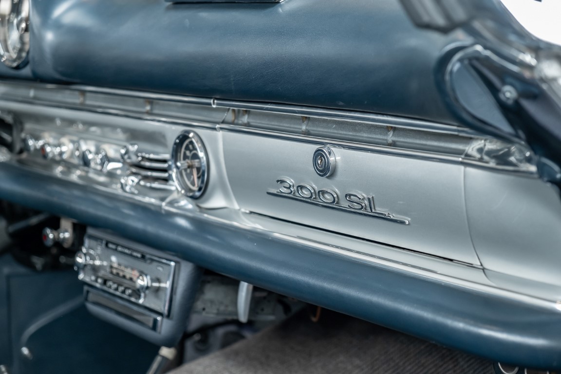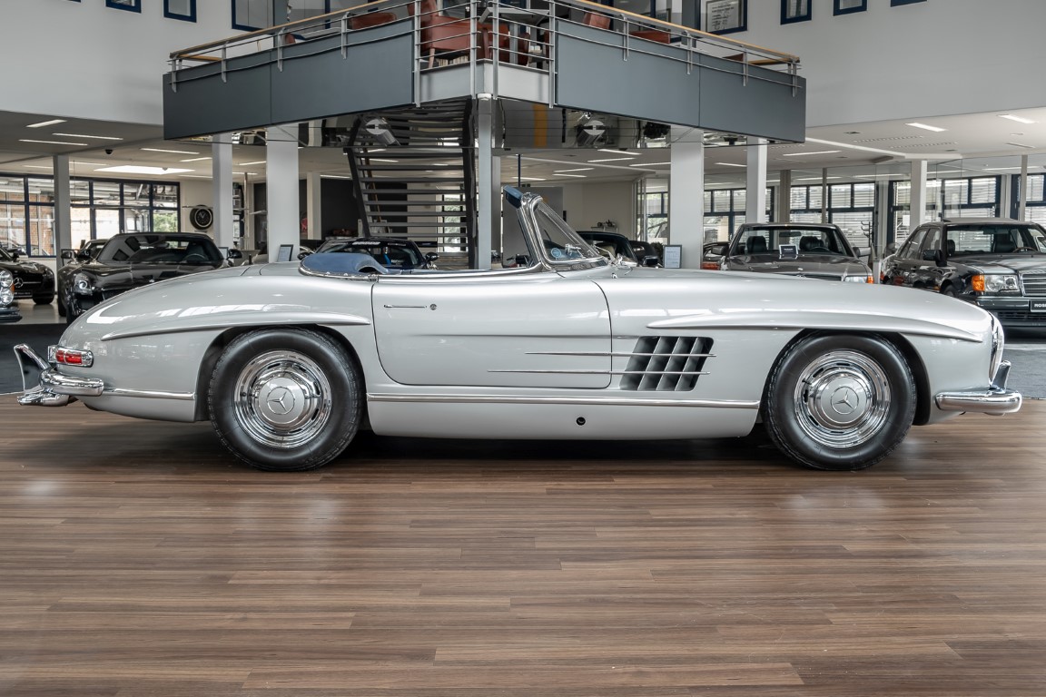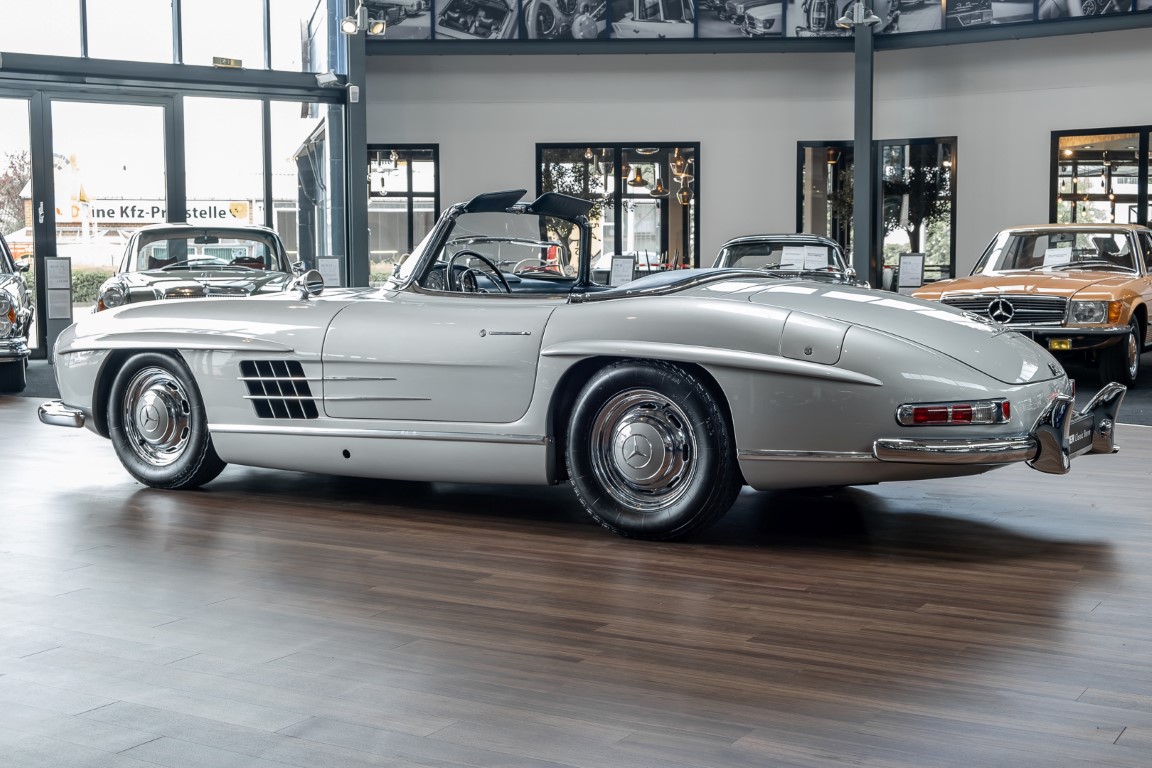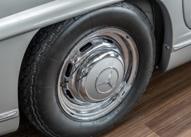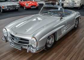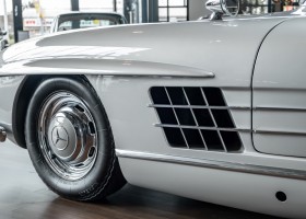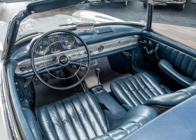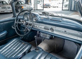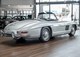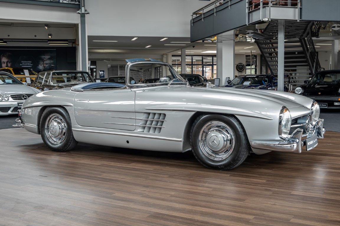 This wonderful 300 SL roadster from the early 1957 model year was delivered in the same year to its first owner in Minnesota USA. The vehicle remained in his possession for a total of 36 years until a gentleman from Texas was able to purchase the vehicle in 1993. Almost 10 years later the car was also sold to a gentleman from Texas before it was sold to Europe and extensively restored by a well-known German 300 SL specialist. At last the vehicle was in an exquisite vehicle collection in sunny Portugal, directly at the Algave, from which we could get this dream convertible in the fantastic colour combination silver-grey-metallic with dark blue leather.