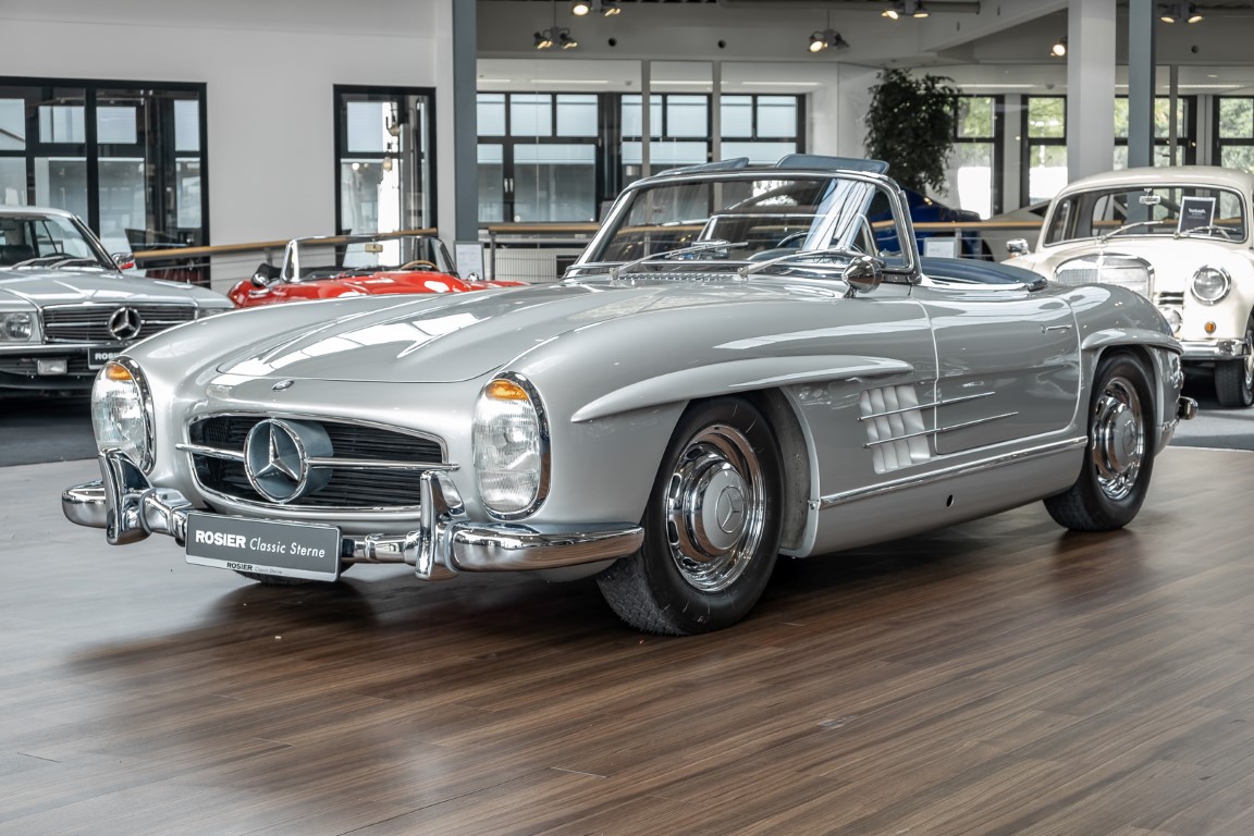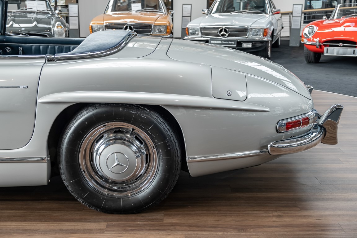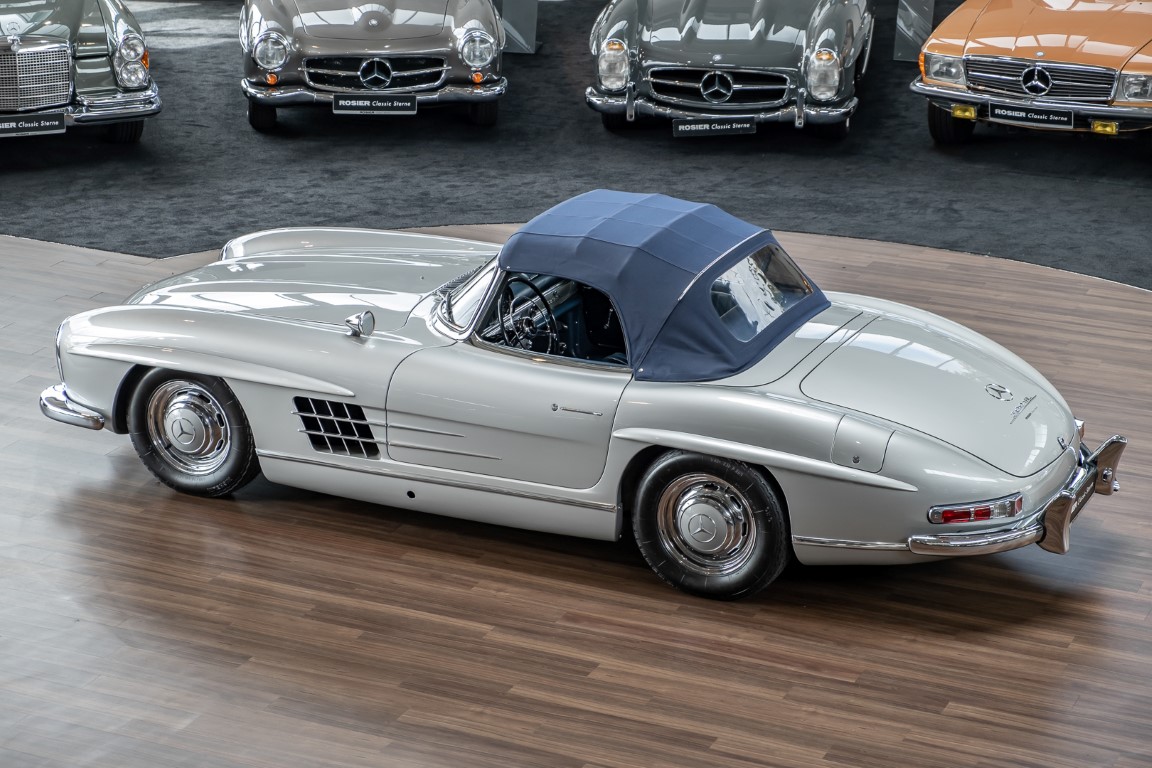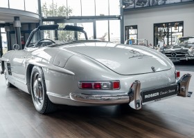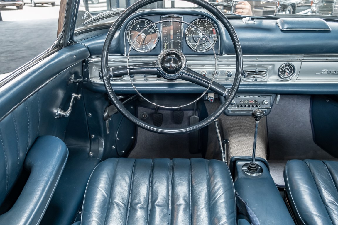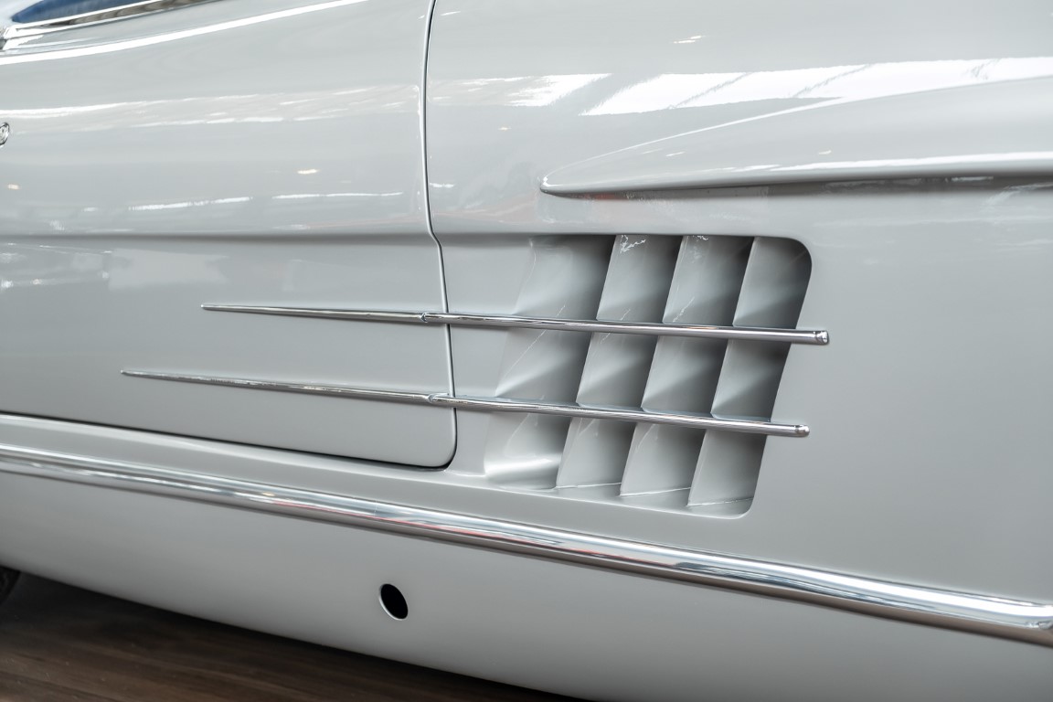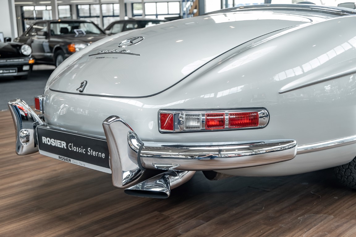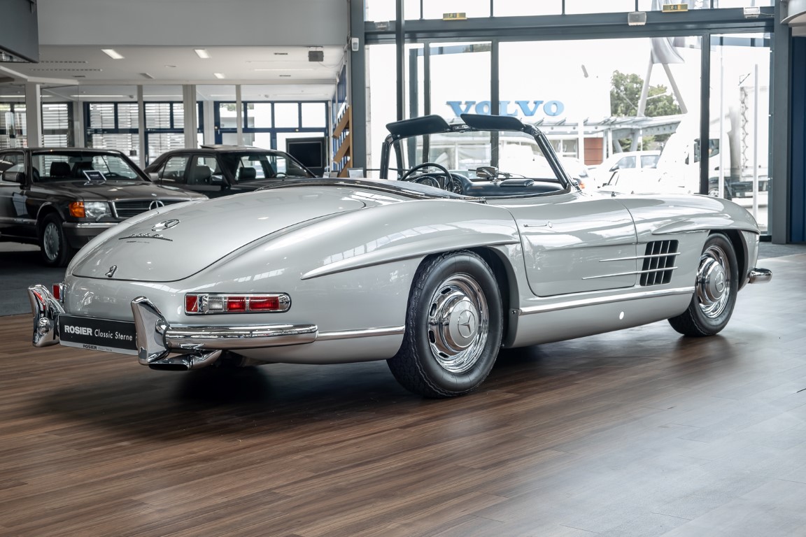 This wonderful 300 SL roadster from the early 1957 model year was delivered in the same year to its first owner in Minnesota USA. The vehicle remained in his possession for a total of 36 years until a gentleman from Texas was able to purchase the vehicle in 1993. Almost 10 years later the car was also sold to a gentleman from Texas before it was sold to Europe and extensively restored by a well-known German 300 SL specialist. At last the vehicle was in an exquisite vehicle collection in sunny Portugal, directly at the Algave, from which we could get this dream convertible in the fantastic colour combination silver-grey-metallic with dark blue leather.