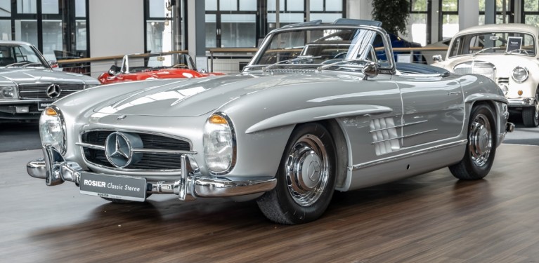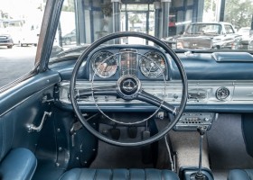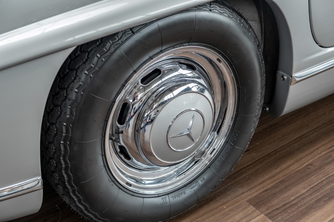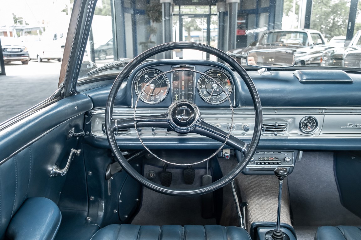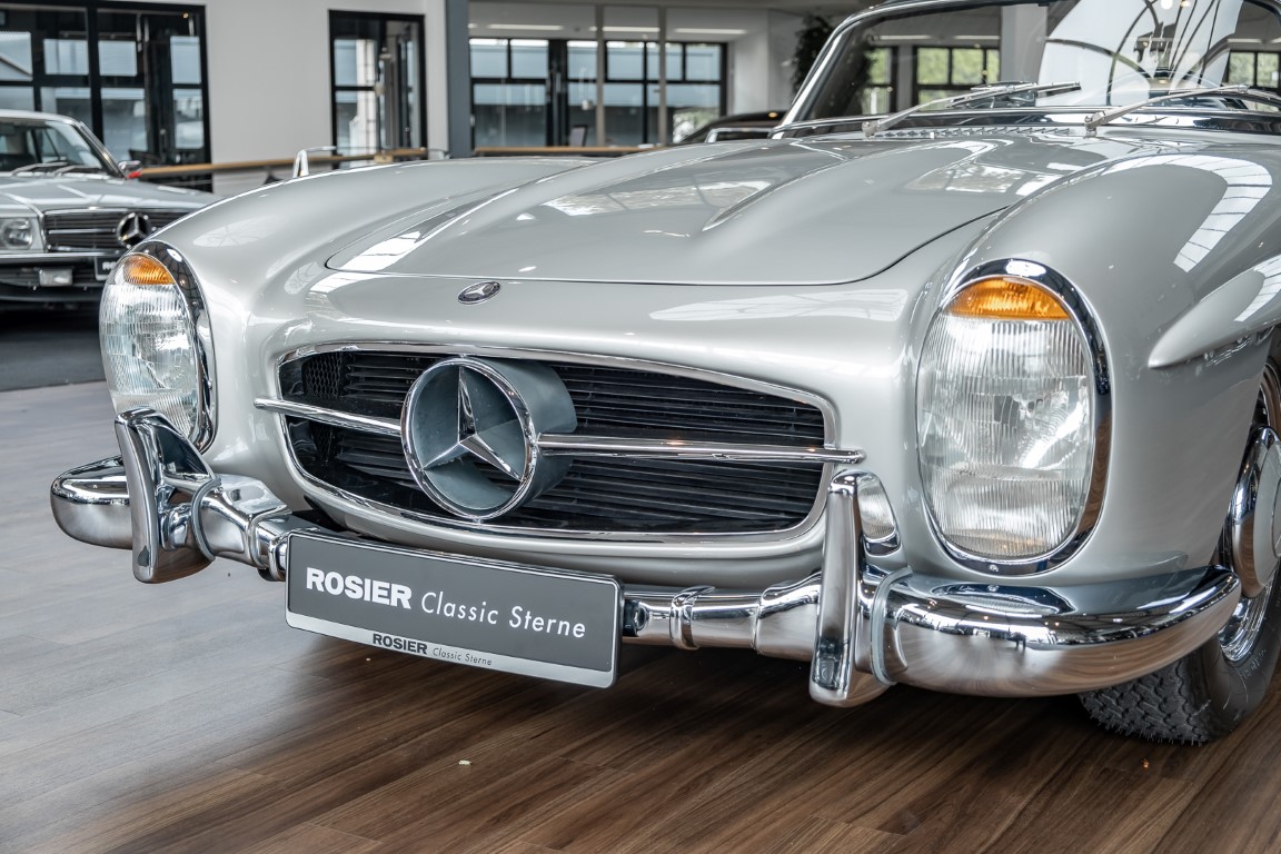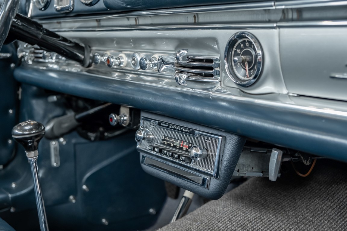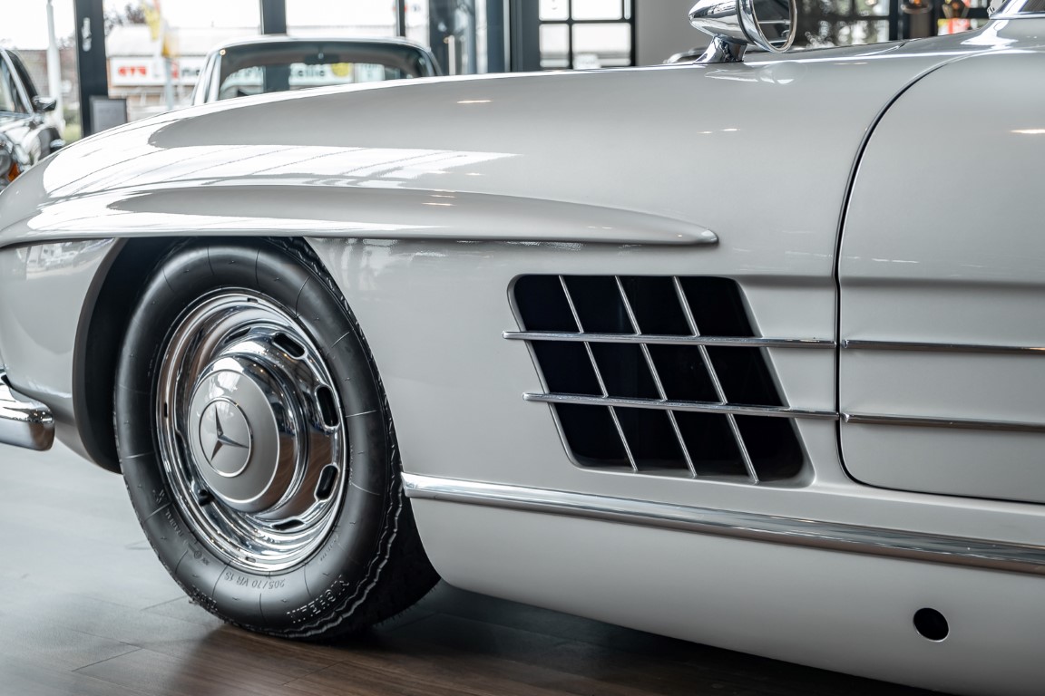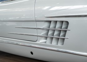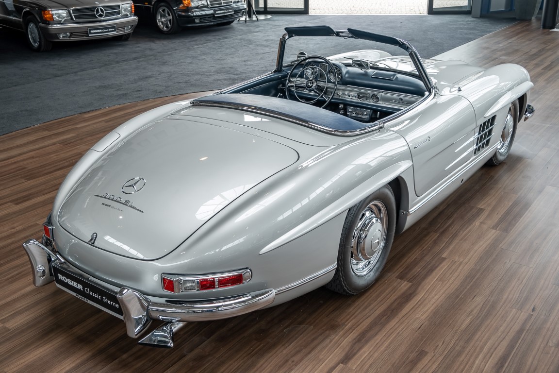 This wonderful 300 SL roadster from the early 1957 model year was delivered in the same year to its first owner in Minnesota USA. The vehicle remained in his possession for a total of 36 years until a gentleman from Texas was able to purchase the vehicle in 1993. Almost 10 years later the car was also sold to a gentleman from Texas before it was sold to Europe and extensively restored by a well-known German 300 SL specialist. At last the vehicle was in an exquisite vehicle collection in sunny Portugal, directly at the Algave, from which we could get this dream convertible in the fantastic colour combination silver-grey-metallic with dark blue leather.