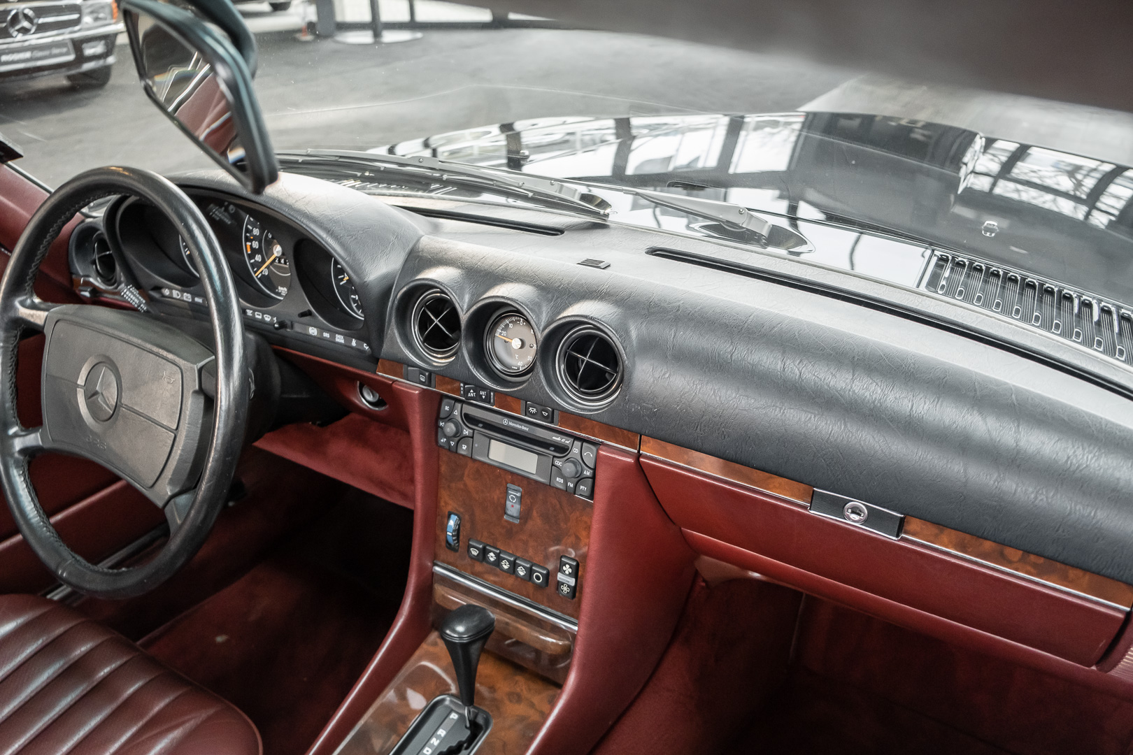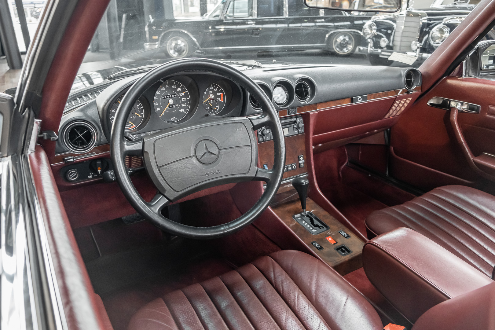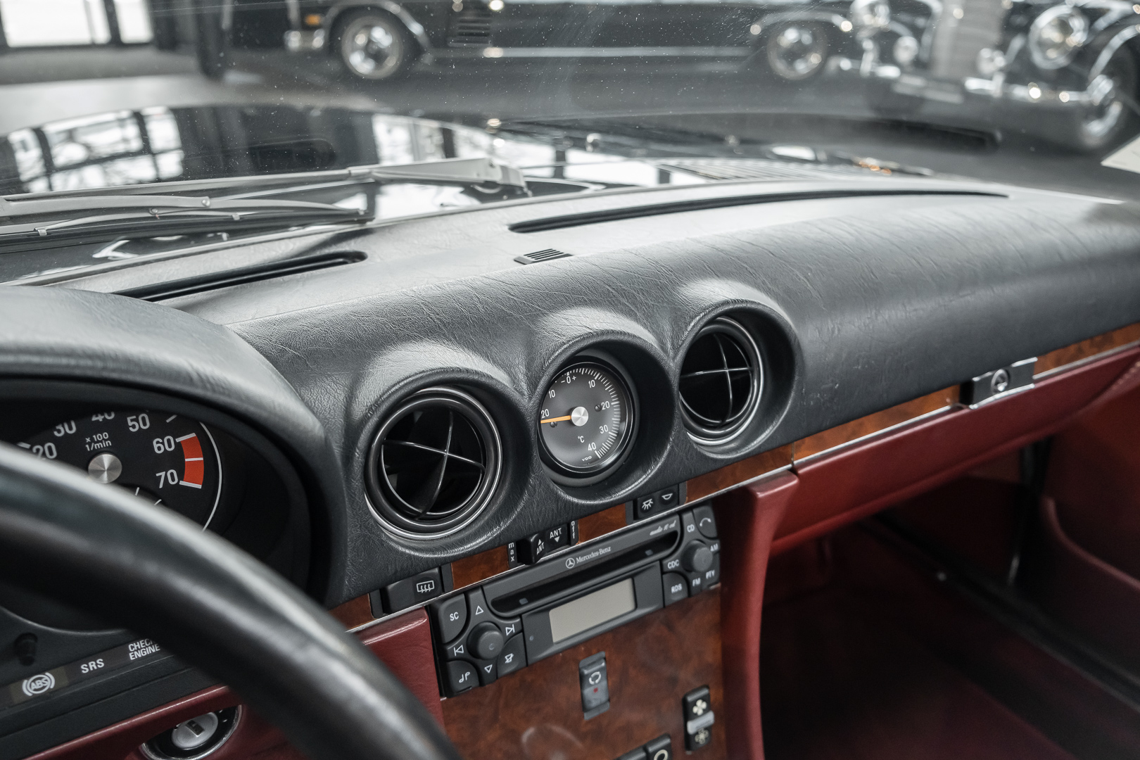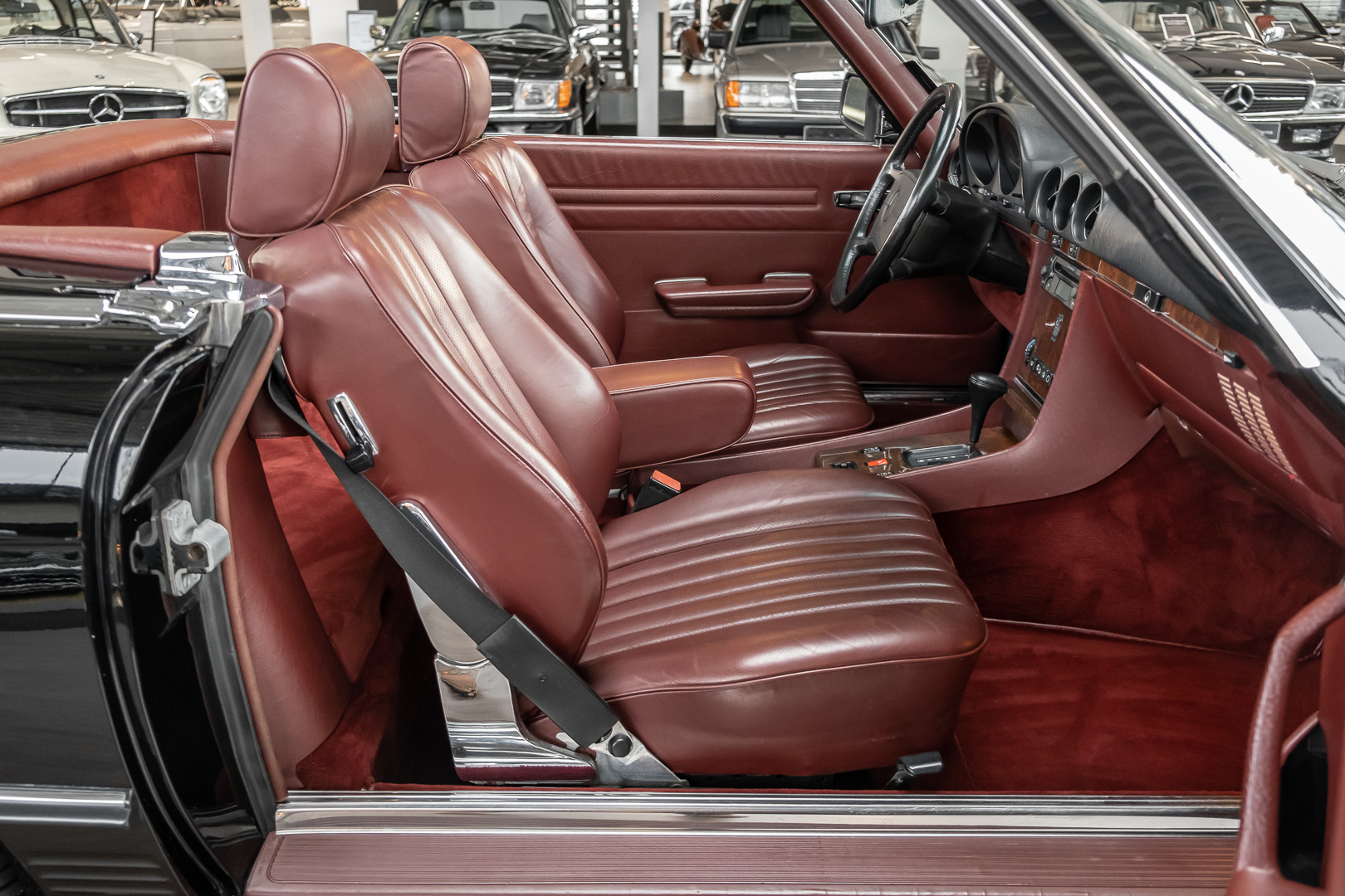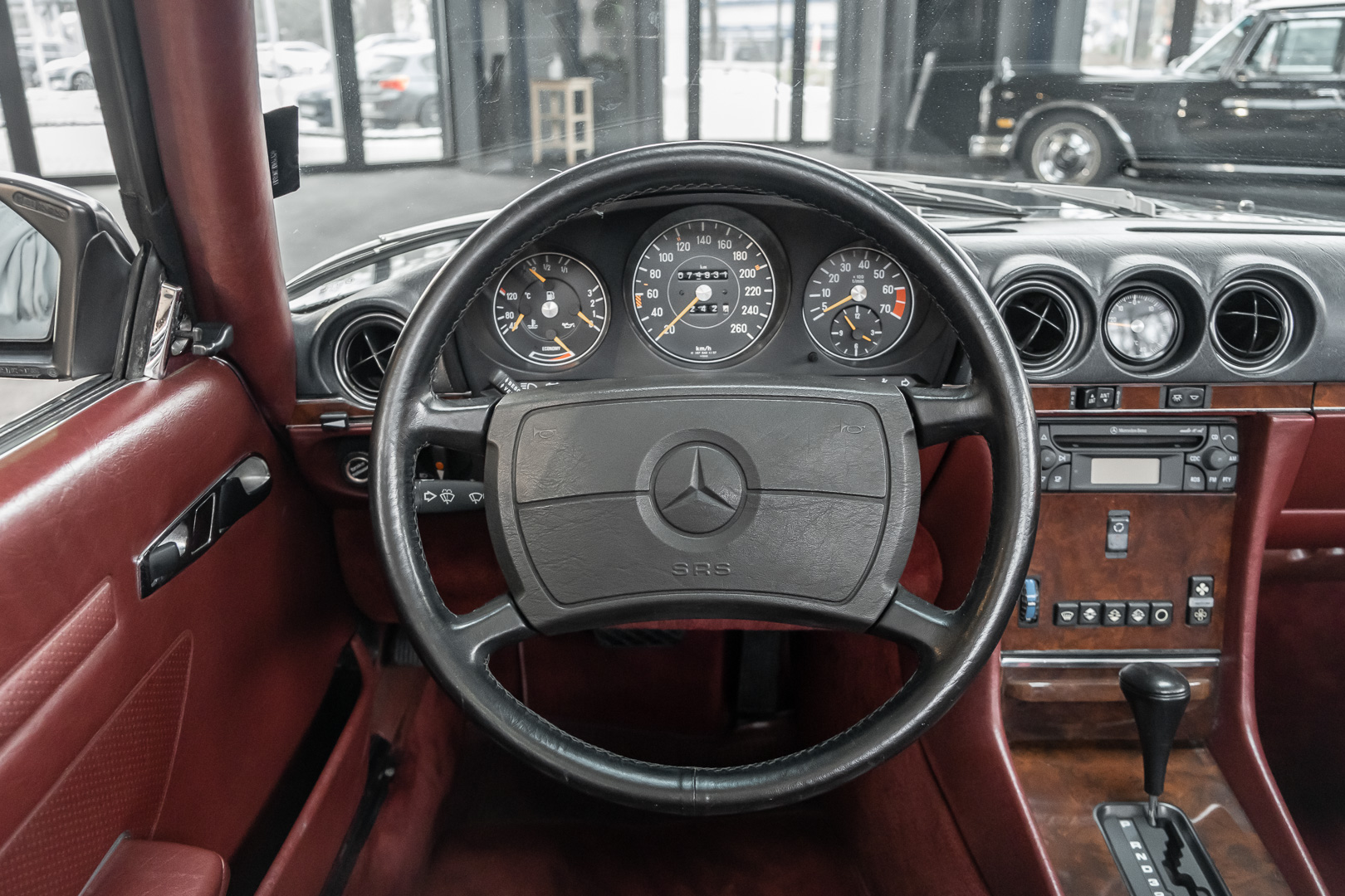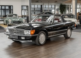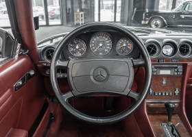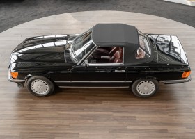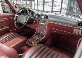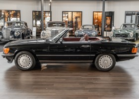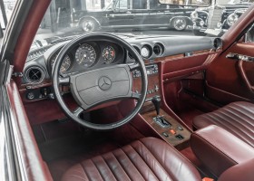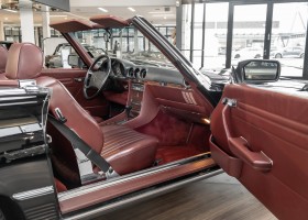 We are delighted to be able to offer you this fantastic 560 SL from the coveted 107 series. The rare and charming color combination of deep black paint (040) and red leather suits the SL exceptionally well. The vehicle has been completely converted to European standards and has a clean Carfax. A great opportunity to acquire a well-maintained vehicle with a manageable mileage. We would be happy to show you the vehicle in person.