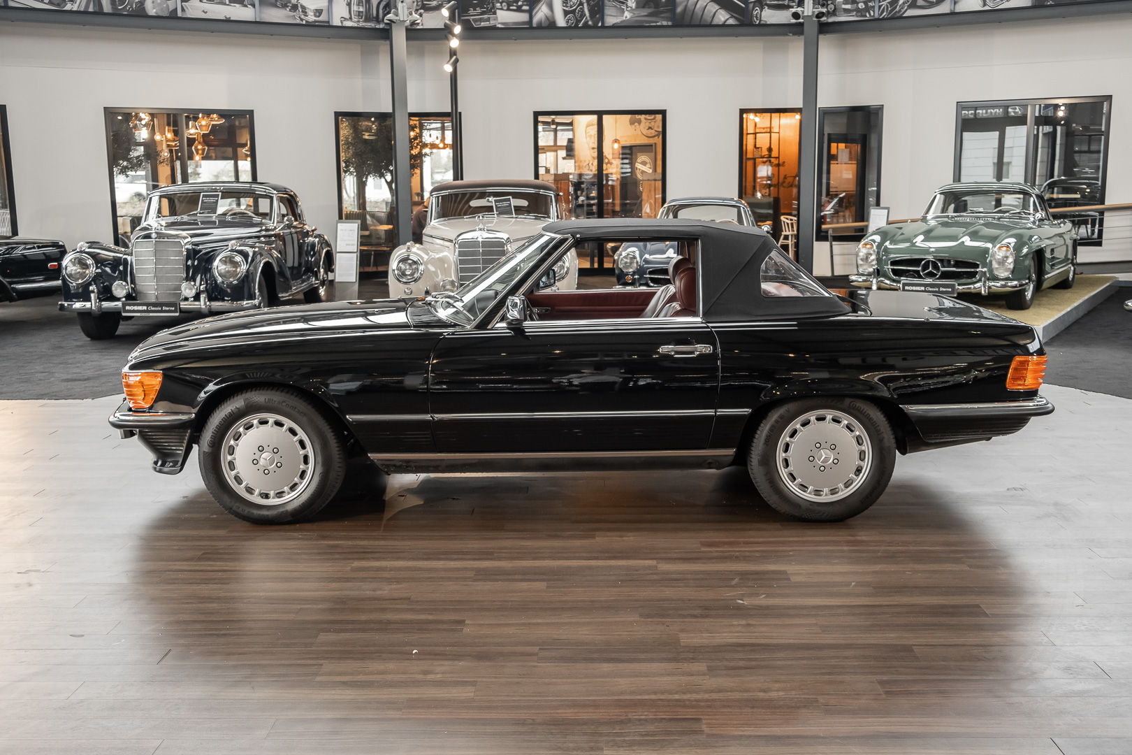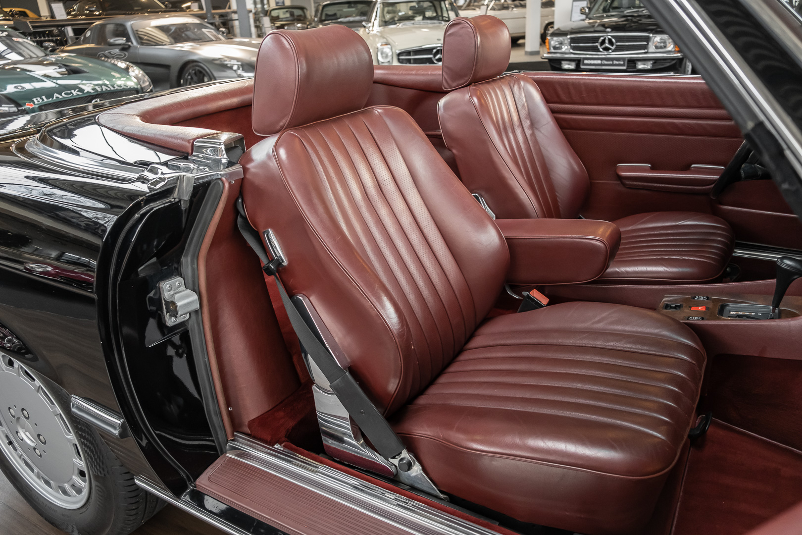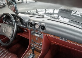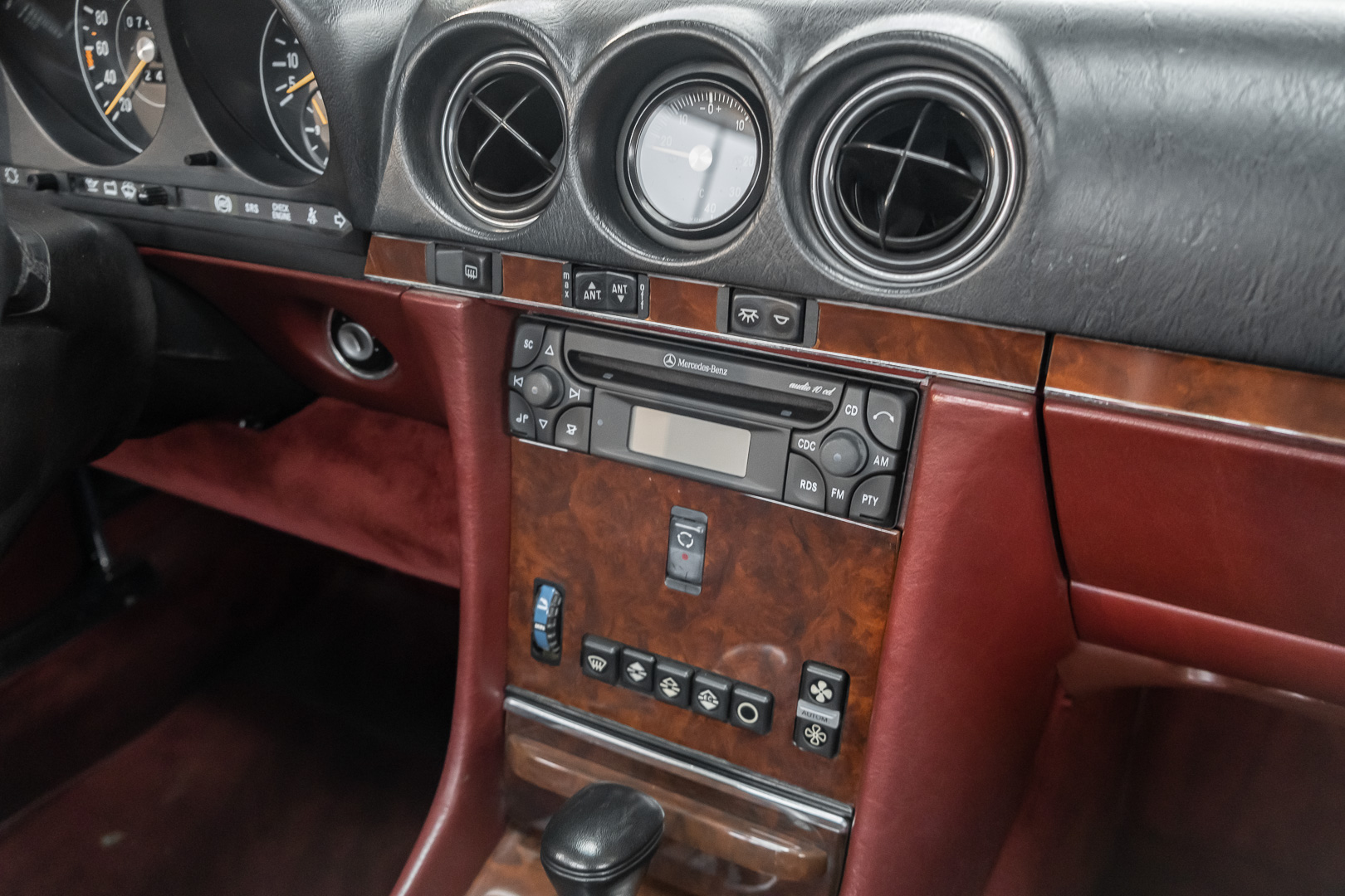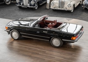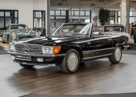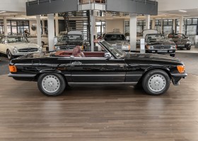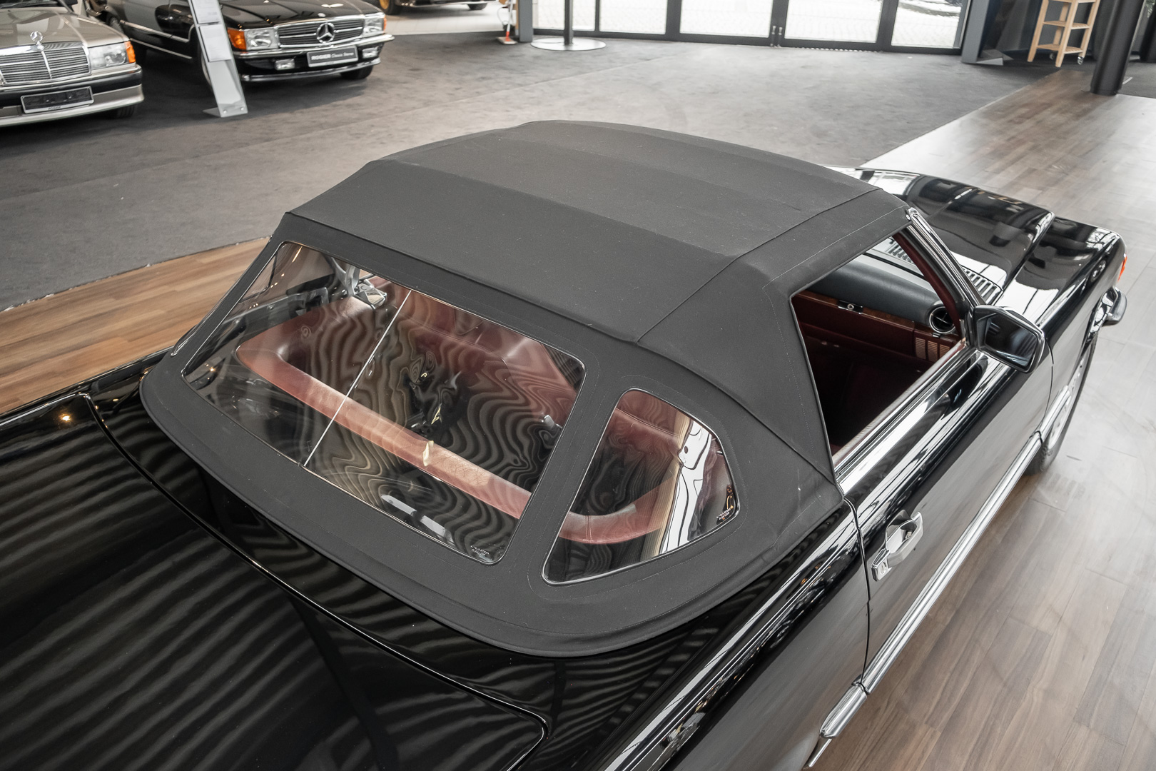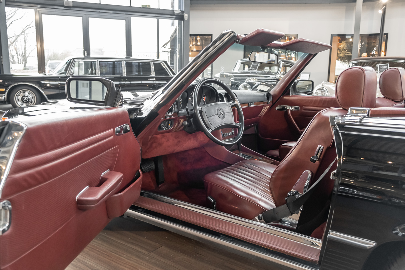 We are delighted to be able to offer you this fantastic 560 SL from the coveted 107 series. The rare and charming color combination of deep black paint (040) and red leather suits the SL exceptionally well. The vehicle has been completely converted to European standards and has a clean Carfax. A great opportunity to acquire a well-maintained vehicle with a manageable mileage. We would be happy to show you the vehicle in person.