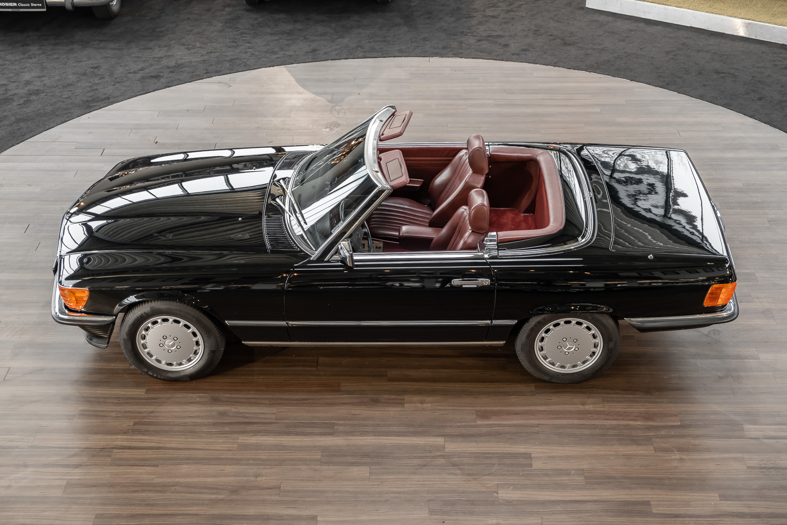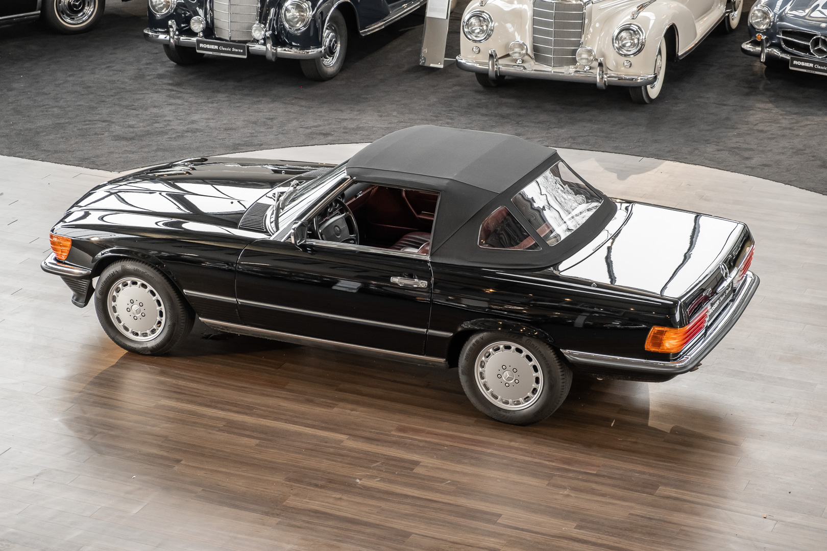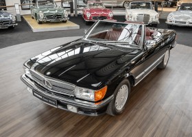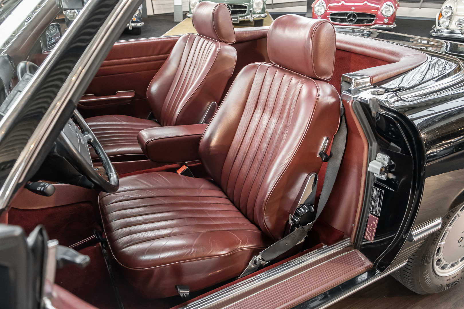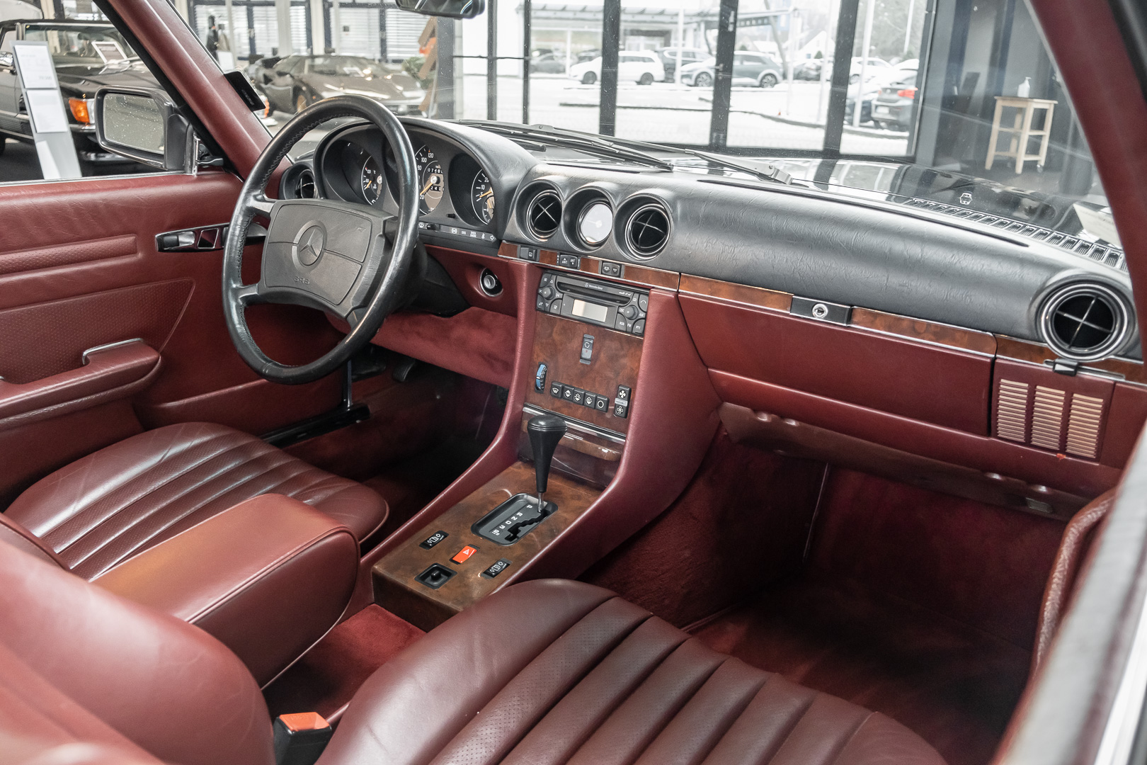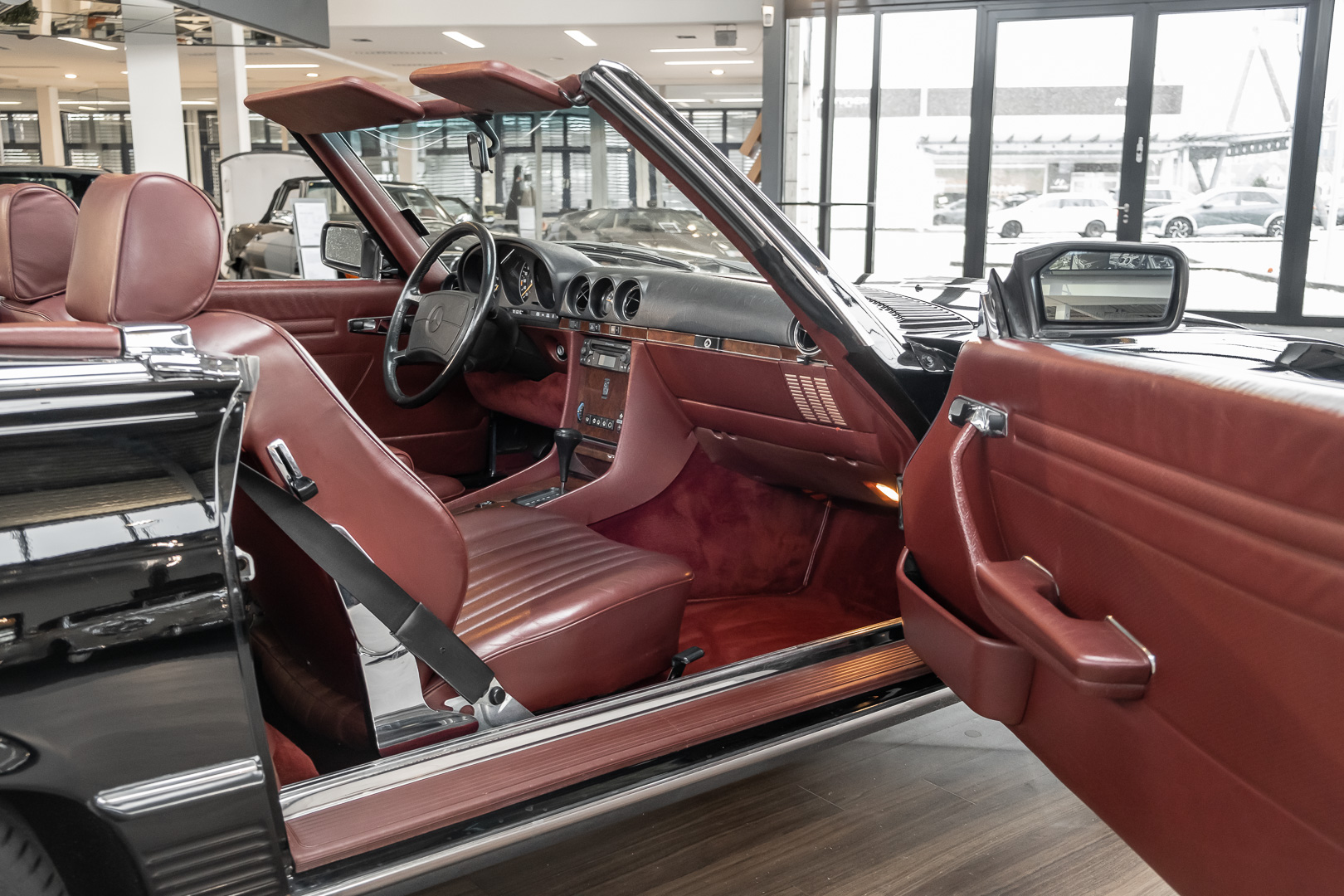 We are delighted to be able to offer you this fantastic 560 SL from the coveted 107 series. The rare and charming color combination of deep black paint (040) and red leather suits the SL exceptionally well. The vehicle has been completely converted to European standards and has a clean Carfax. A great opportunity to acquire a well-maintained vehicle with a manageable mileage. We would be happy to show you the vehicle in person.