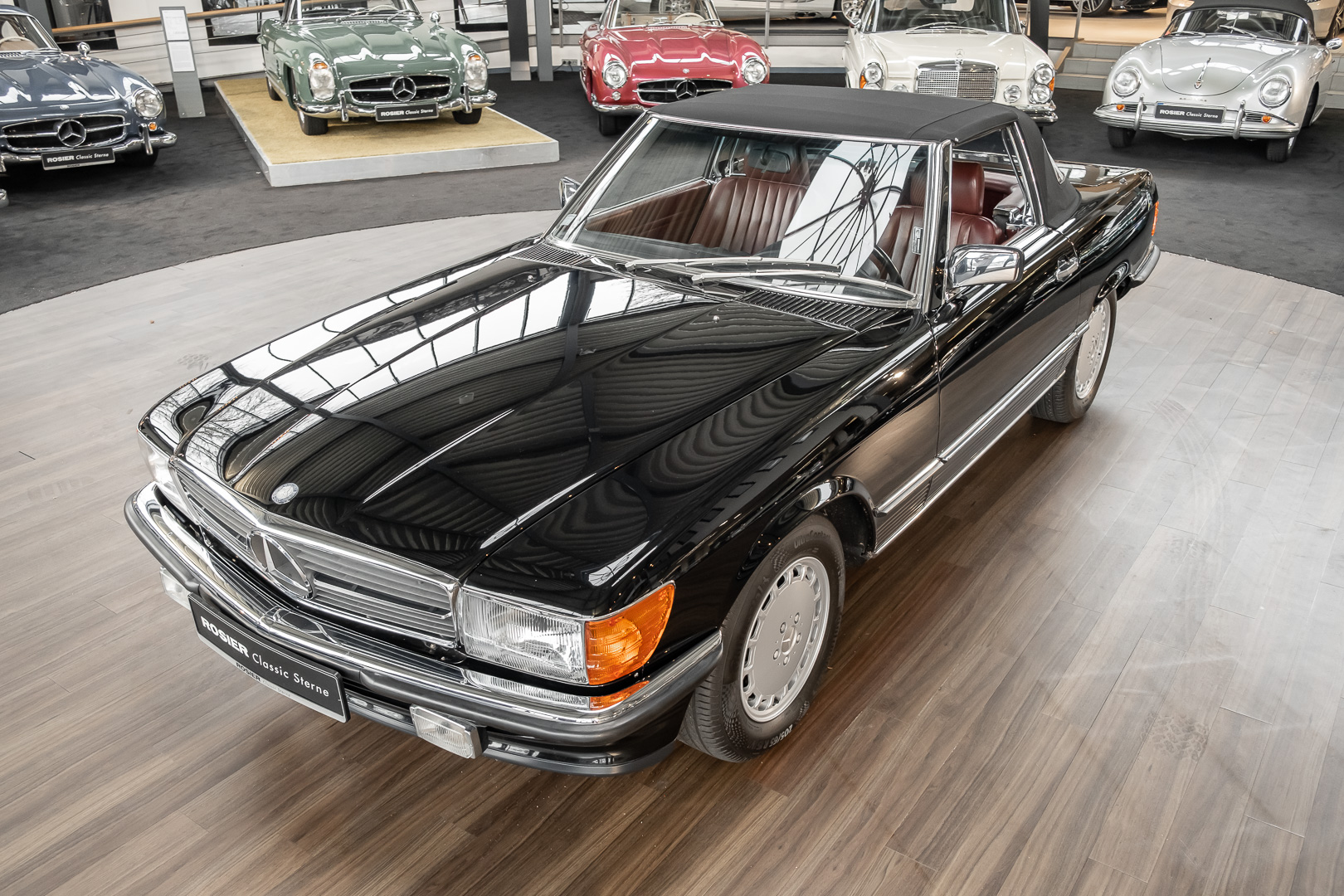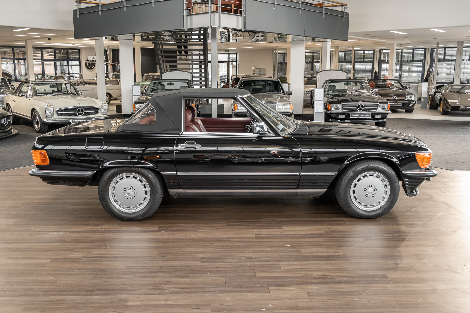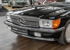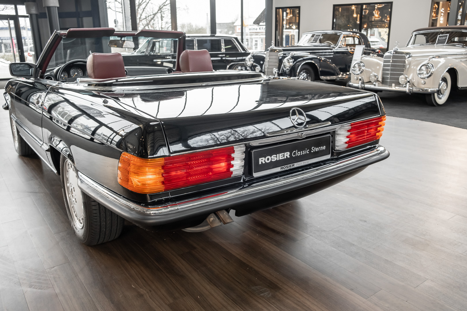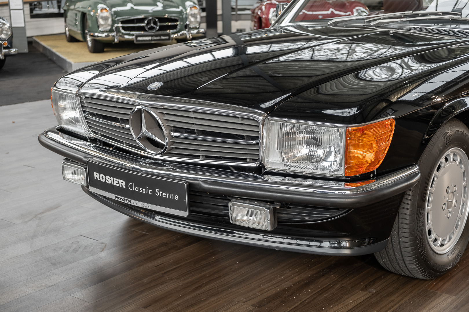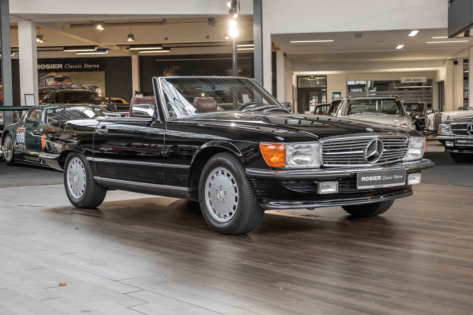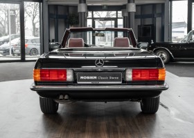 We are delighted to be able to offer you this fantastic 560 SL from the coveted 107 series. The rare and charming color combination of deep black paint (040) and red leather suits the SL exceptionally well. The vehicle has been completely converted to European standards and has a clean Carfax. A great opportunity to acquire a well-maintained vehicle with a manageable mileage. We would be happy to show you the vehicle in person.