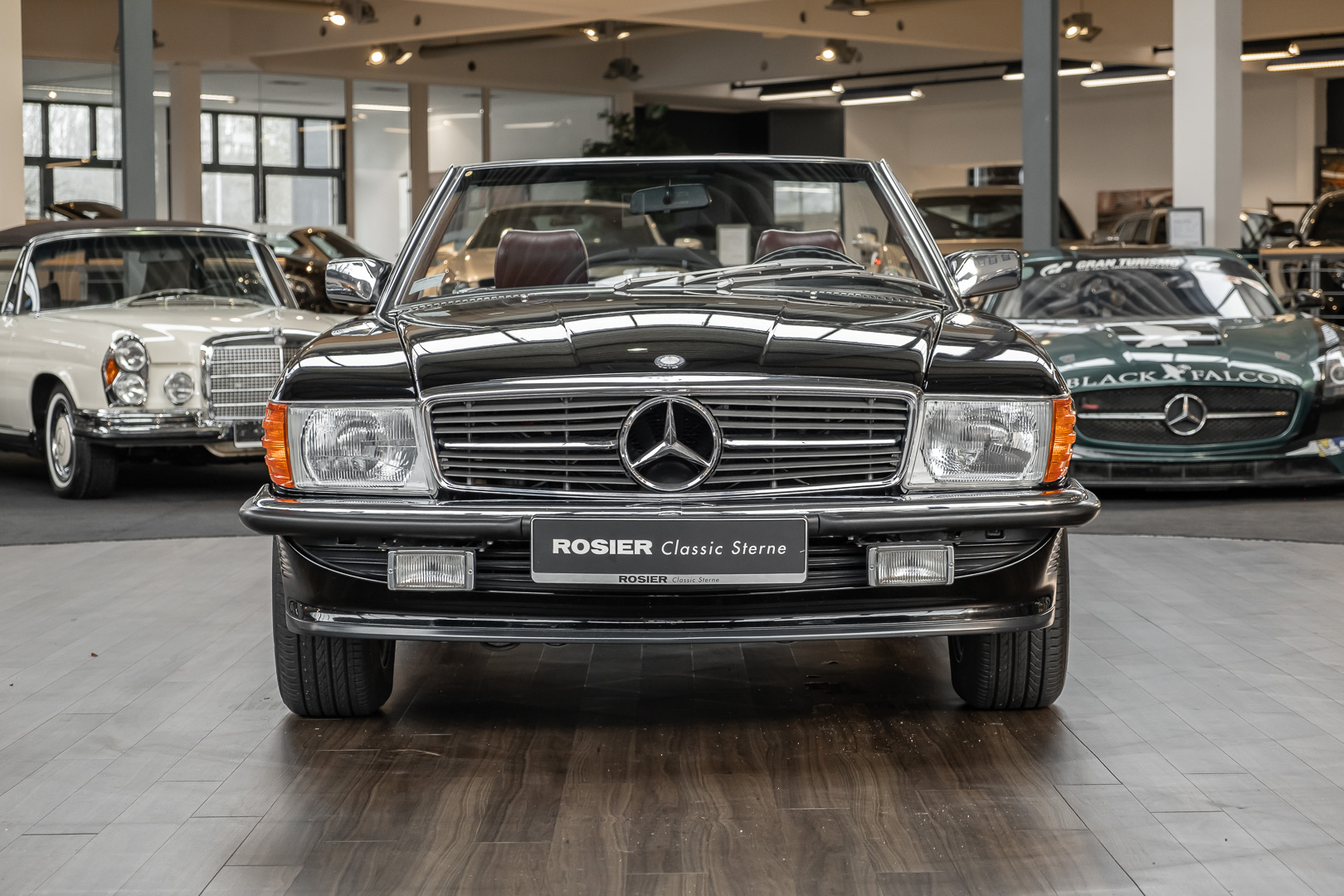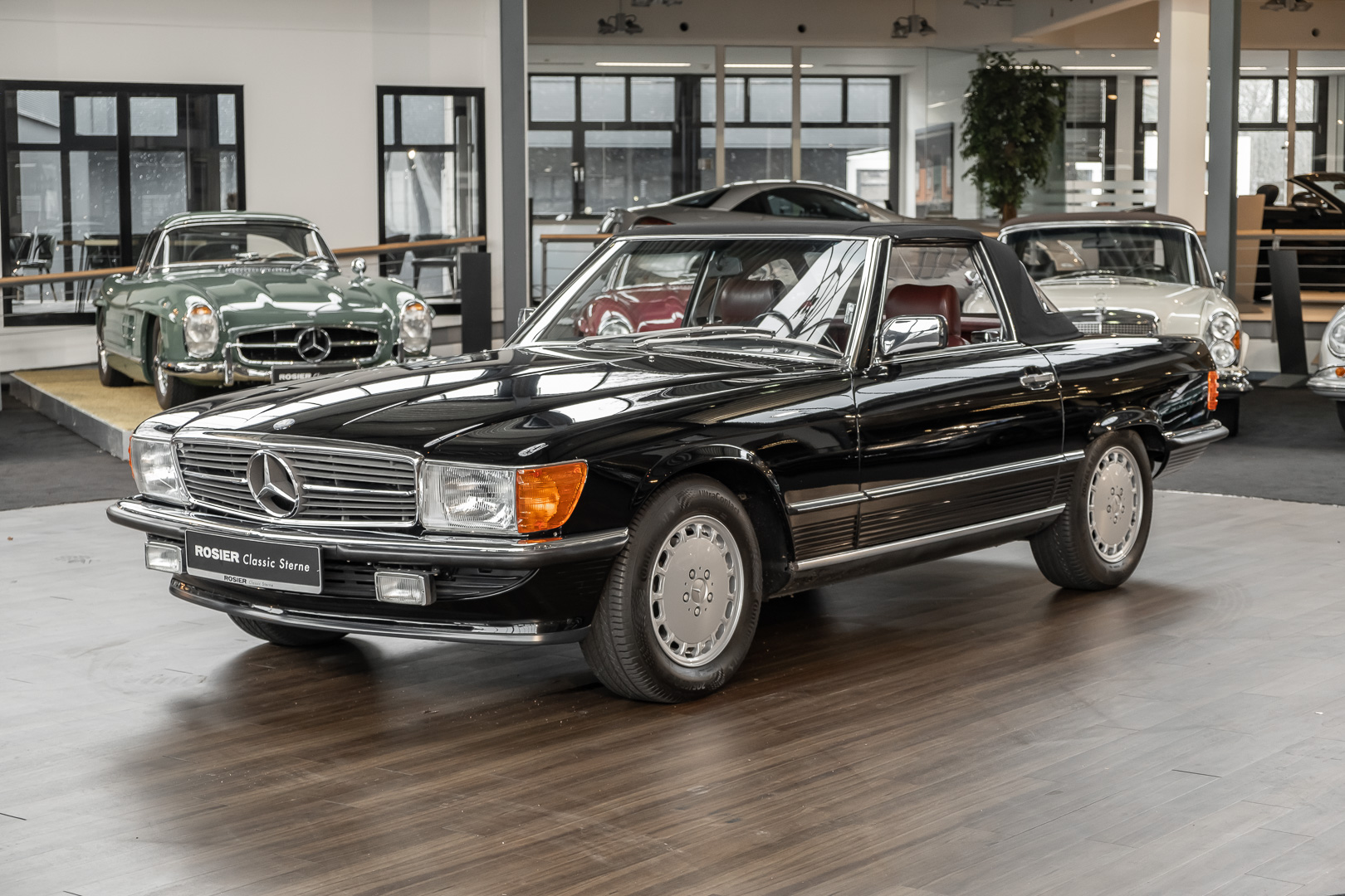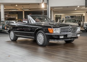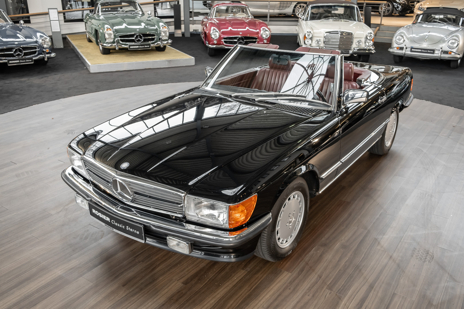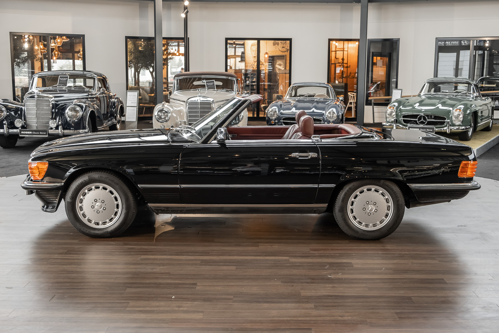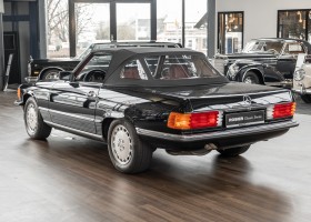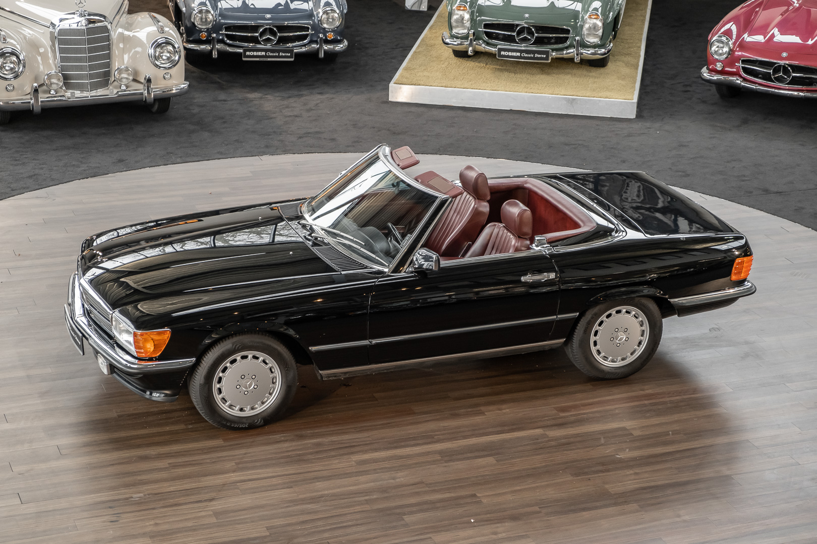 We are delighted to be able to offer you this fantastic 560 SL from the coveted 107 series. The rare and charming color combination of deep black paint (040) and red leather suits the SL exceptionally well. The vehicle has been completely converted to European standards and has a clean Carfax. A great opportunity to acquire a well-maintained vehicle with a manageable mileage. We would be happy to show you the vehicle in person.
