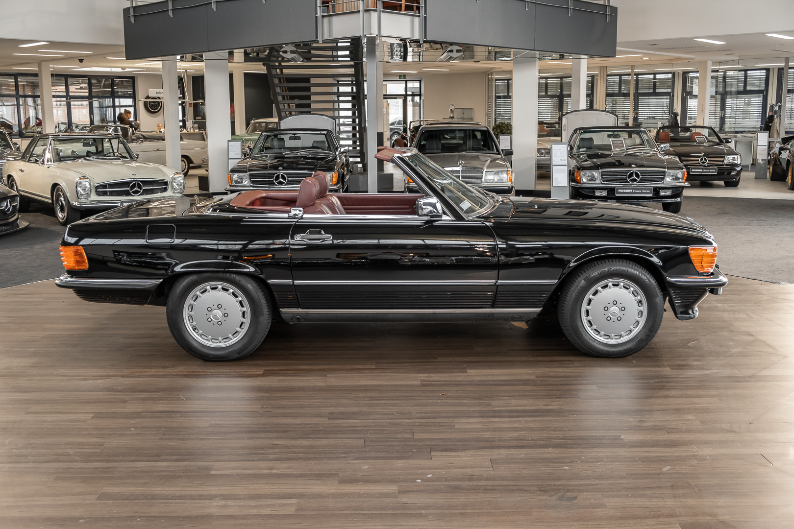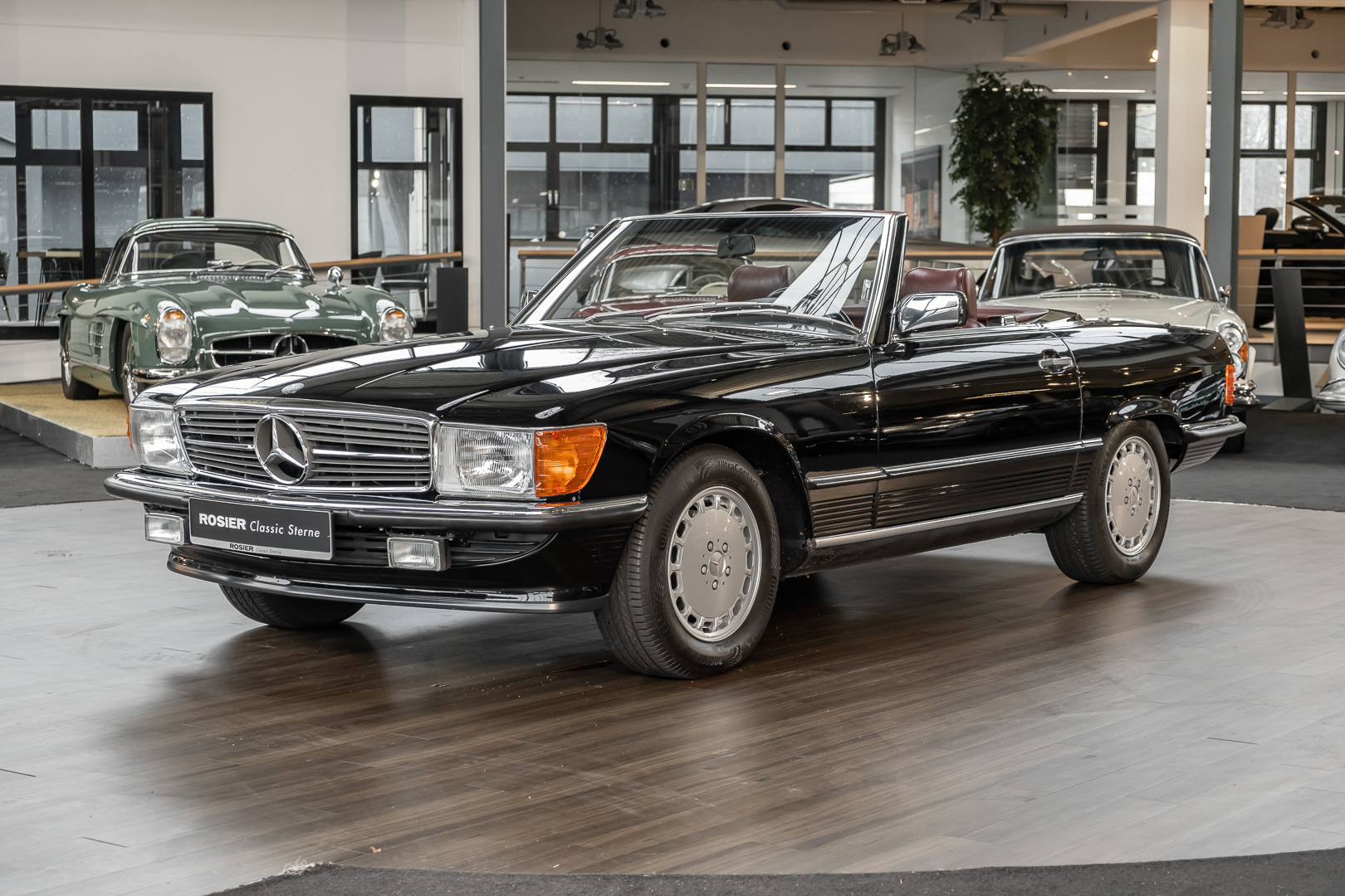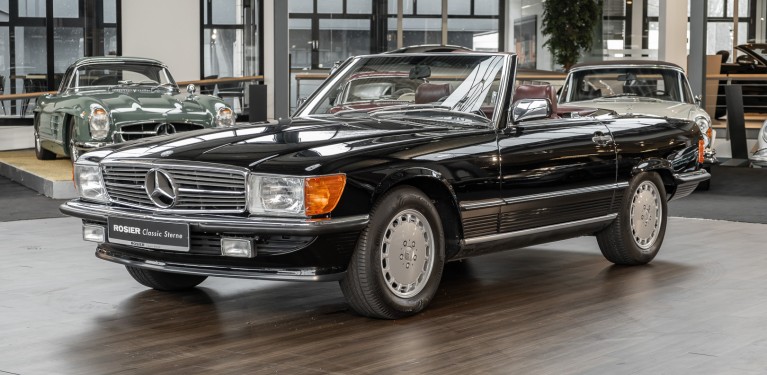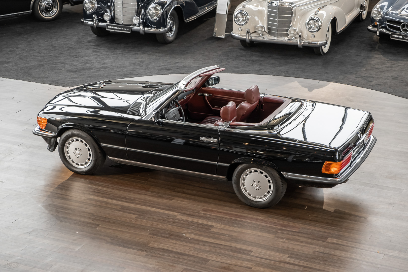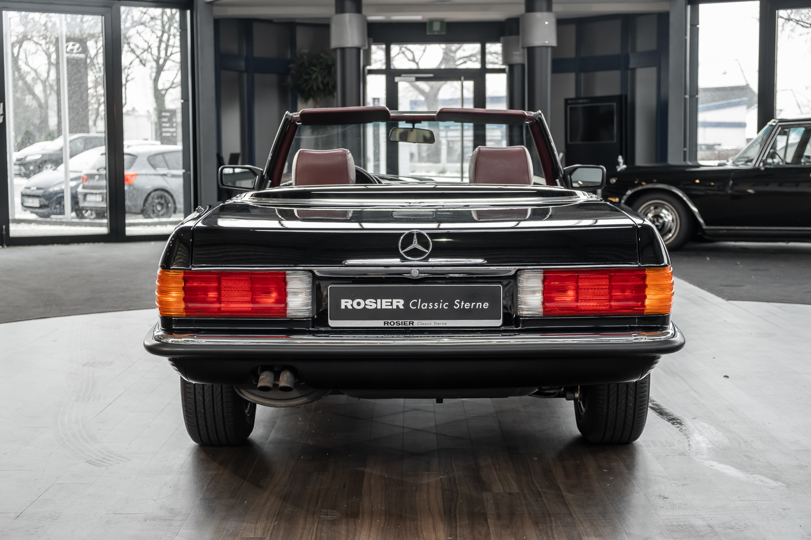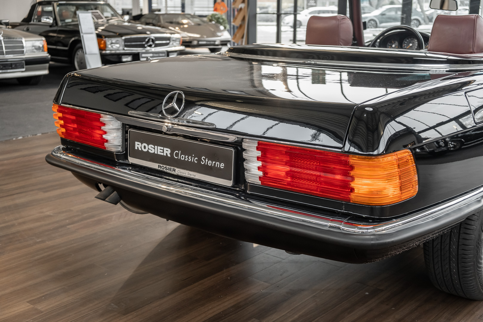 We are delighted to be able to offer you this fantastic 560 SL from the coveted 107 series. The rare and charming color combination of deep black paint (040) and red leather suits the SL exceptionally well. The vehicle has been completely converted to European standards and has a clean Carfax. A great opportunity to acquire a well-maintained vehicle with a manageable mileage. We would be happy to show you the vehicle in person.