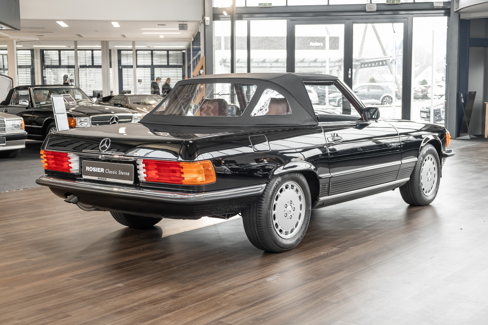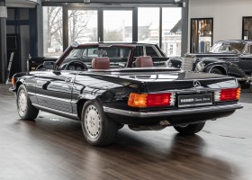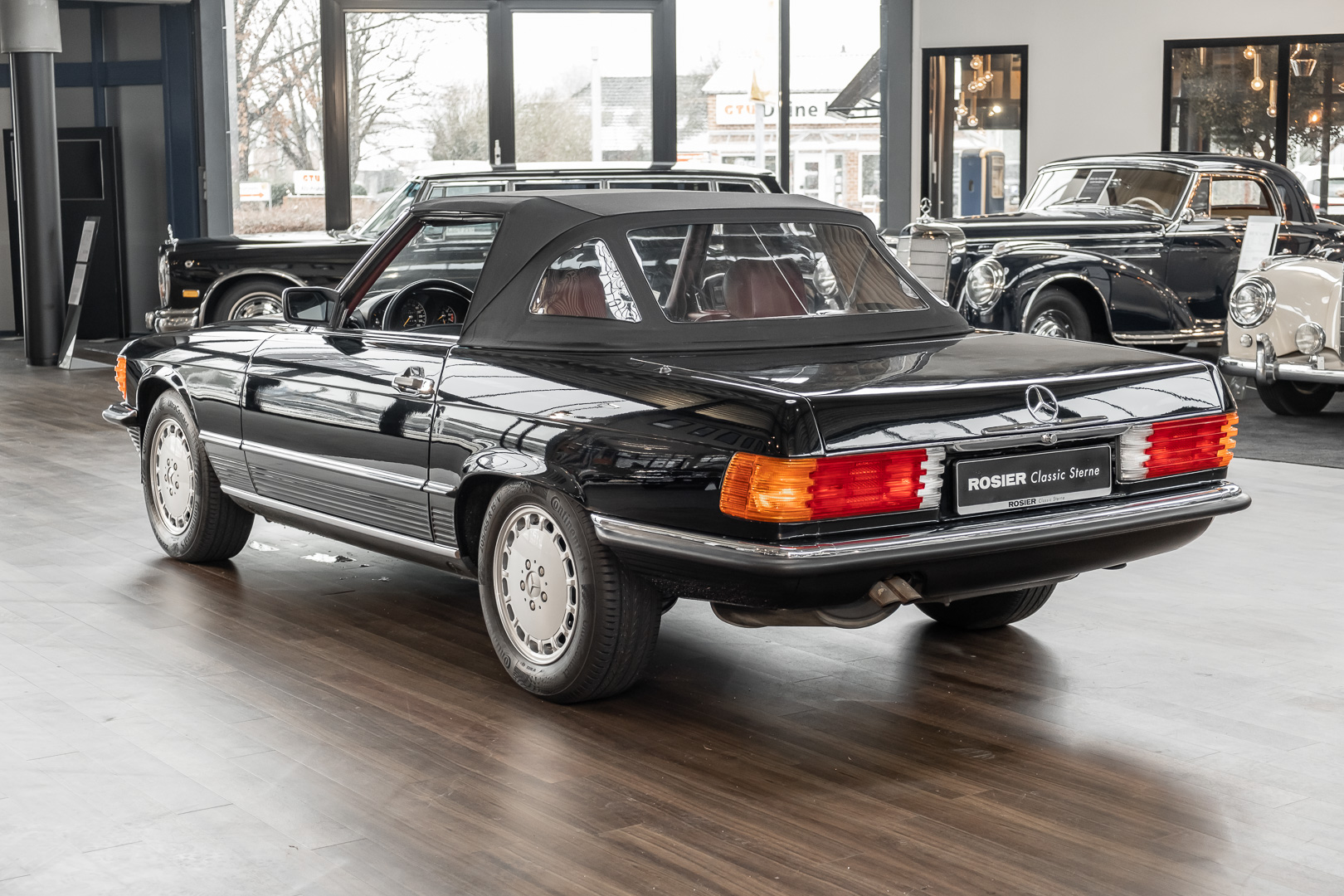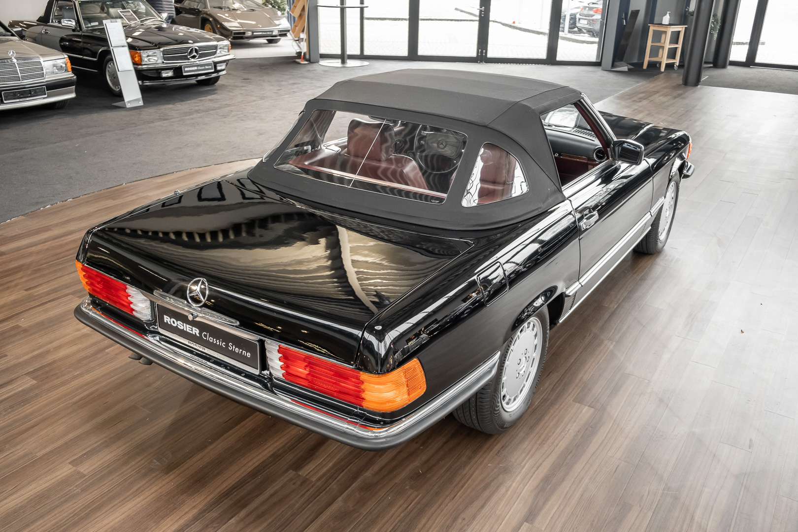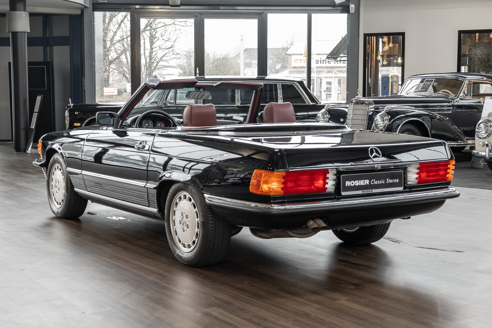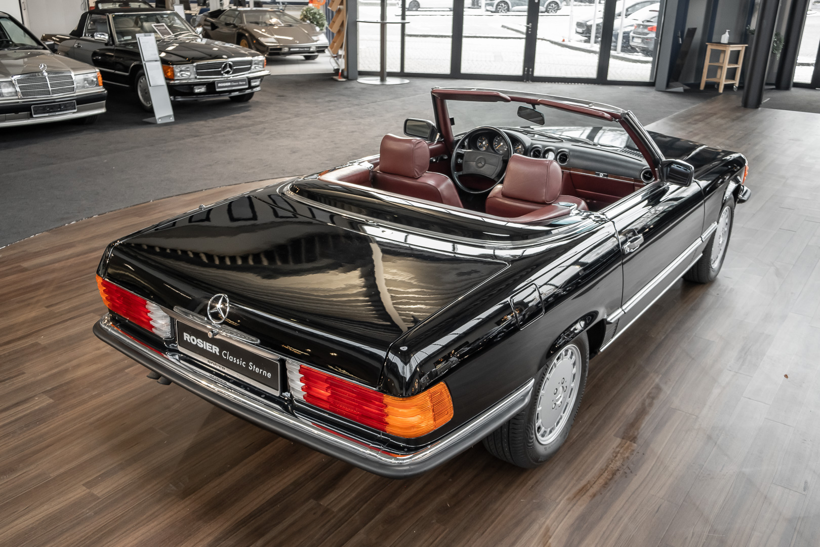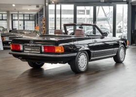 We are delighted to be able to offer you this fantastic 560 SL from the coveted 107 series. The rare and charming color combination of deep black paint (040) and red leather suits the SL exceptionally well. The vehicle has been completely converted to European standards and has a clean Carfax. A great opportunity to acquire a well-maintained vehicle with a manageable mileage. We would be happy to show you the vehicle in person.