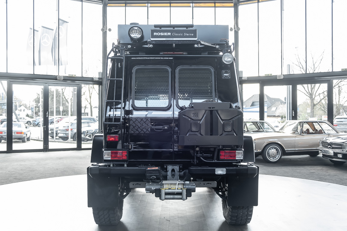 We are pleased to offer you this very special G model. To mark the 30th birthday of the Mercedes-Benz G, the special edition "G Edition Pur" was released in 2009. The reflection back to the roots was well received. Enthusiasts, collectors and G fans alike were enthusiastic about this workhorse. An entrepreneur, car enthusiast and avid hunter from Oldenburg's Ammerland region had the vehicle rebuilt by off-road specialist ORC after it was purchased. Portal axles from the G 63 AMG 6x6 as well as the tire pressure control system and Hutchingson beadlock rims are just the highlights of a conversion in which over €100,000 was invested. An integrated gun cabinet, winches at the front and rear of the vehicle and a satellite phone make the vehicle the ideal companion for all projects - whether onroad, offload, in the forest or in the desert! A unique piece that rightly deserves the title "off-road legend". Welcome to ROSIER Classic Stars.