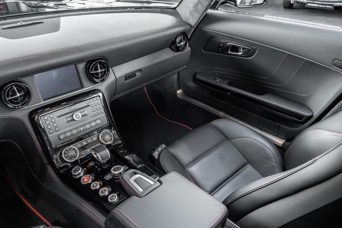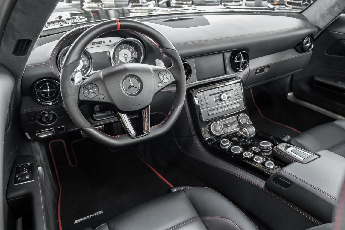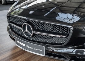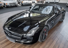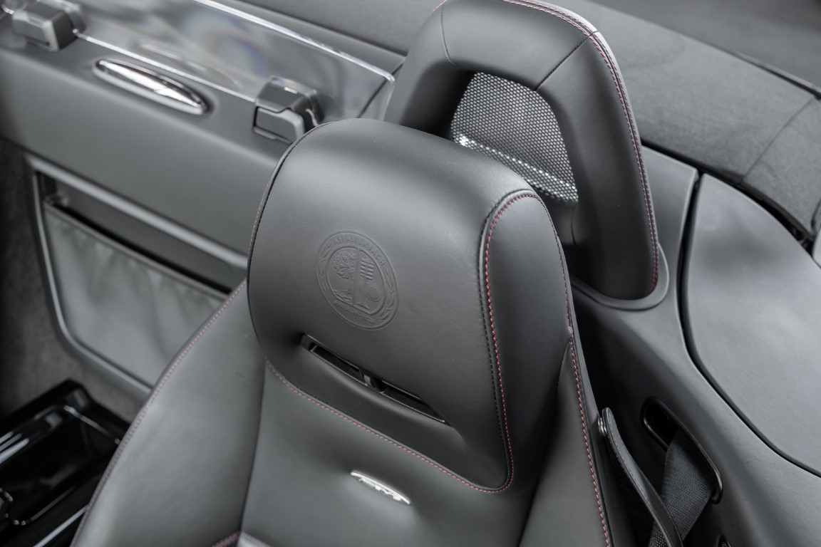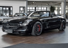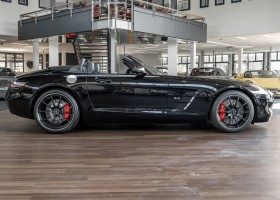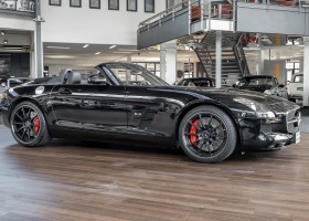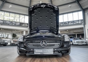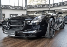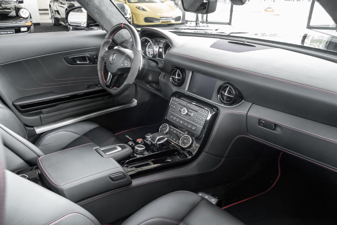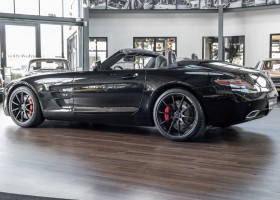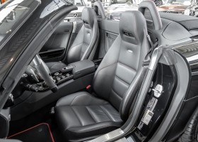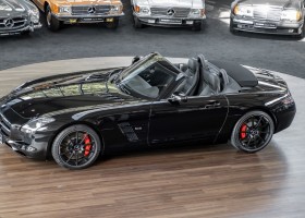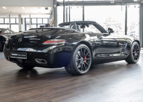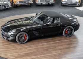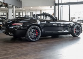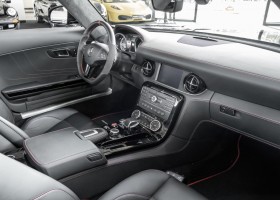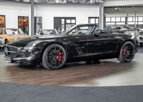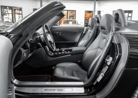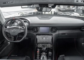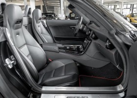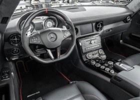 In the autumn of 2011, the roadster version of the SLS was presented at the exhibition IAA in Frankfurt. The name SLS stands for “Sport Leicht Super” (Sport Light Super). The SLS is the first vehicle that has been engineered only by AMG themselves. One single expert manually handles the whole assembly of the engine. After the finishing of his work, his signature is engraved in a special tag, stating the high quality work. The SLS series is produced in the plant of Sindelfingen. The SLS AMG GT series is a revised version of the SLS AMG which performance has been improved to 435 kw / 591 HP. The AMG ride control performance suspension and the AMG speedshift automatic transmission were revised. Optical modifications like dimmed headlights and rear lights, and the GT emblem at the rear of the car were made to mark the SLS AMG GT and make it instantly recognizable. The interior of the SLS AMG GT has been refined applying alcantara stripes on the seats, some red seams and black high polished body trims. The production period was from October 2012 until June 2014. Shortly after the end of production of the G-version, the demand rose enormously and the list prices were promptly surpassed.