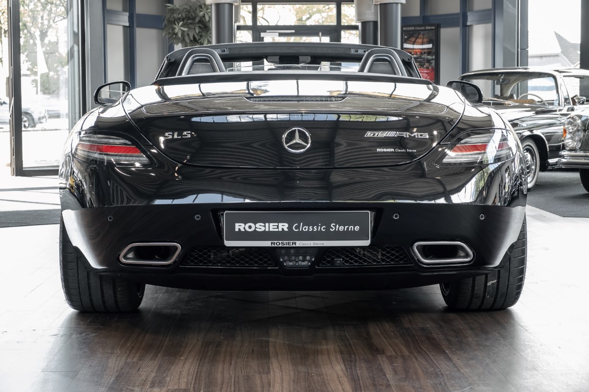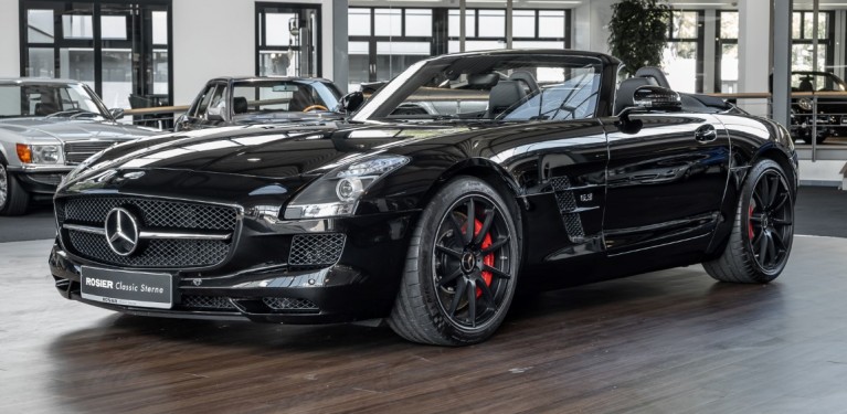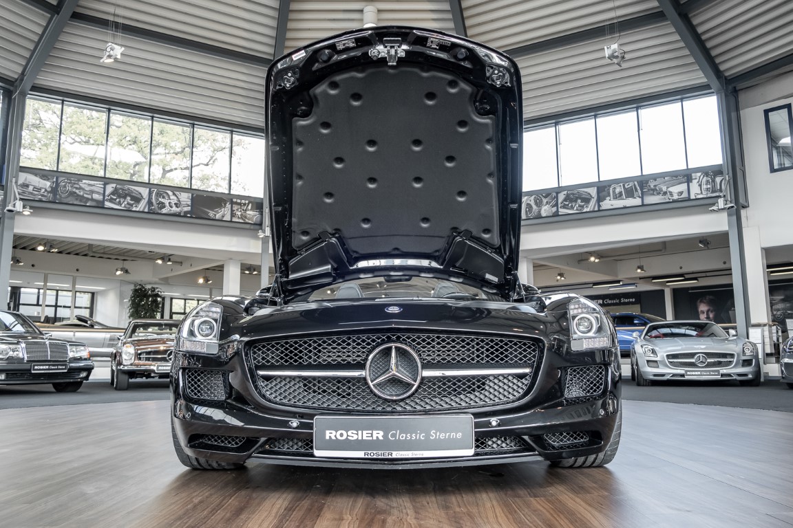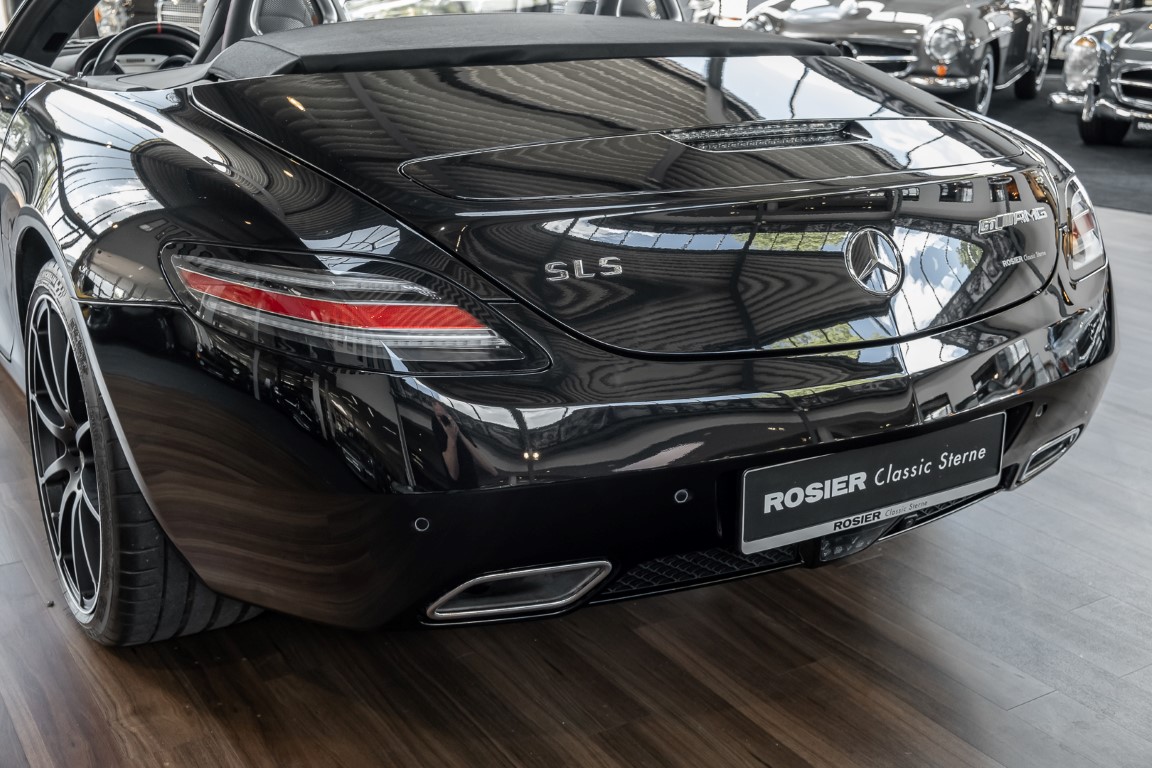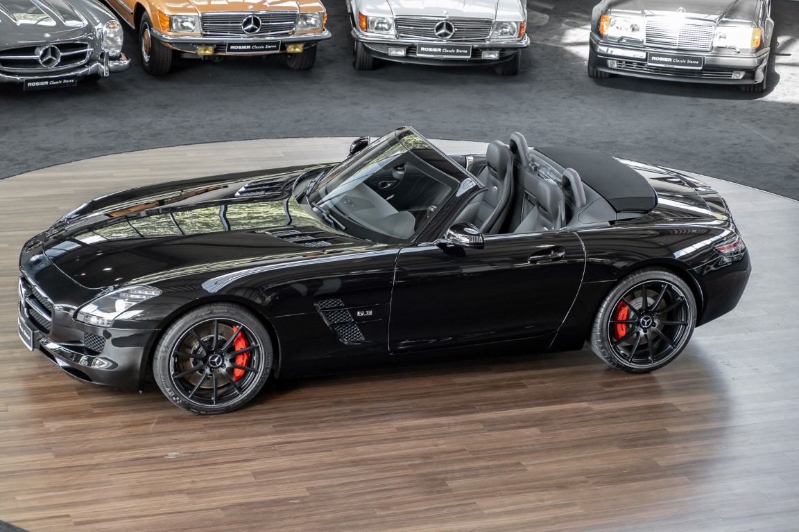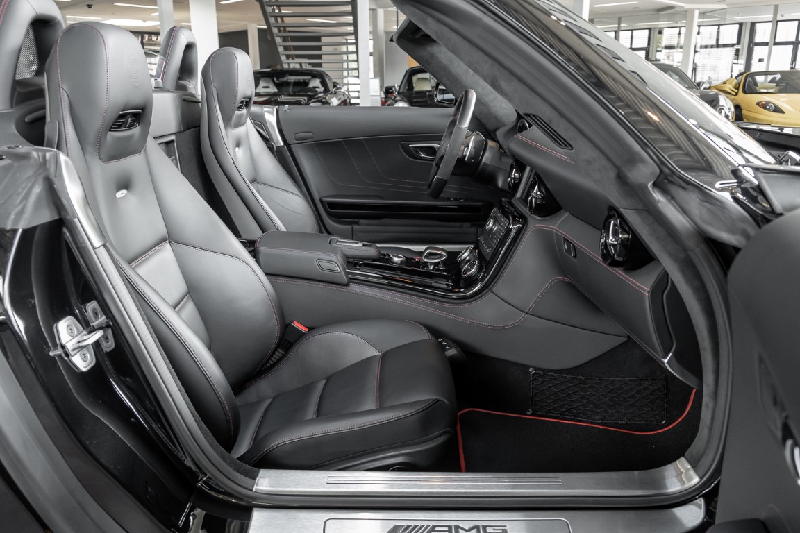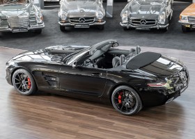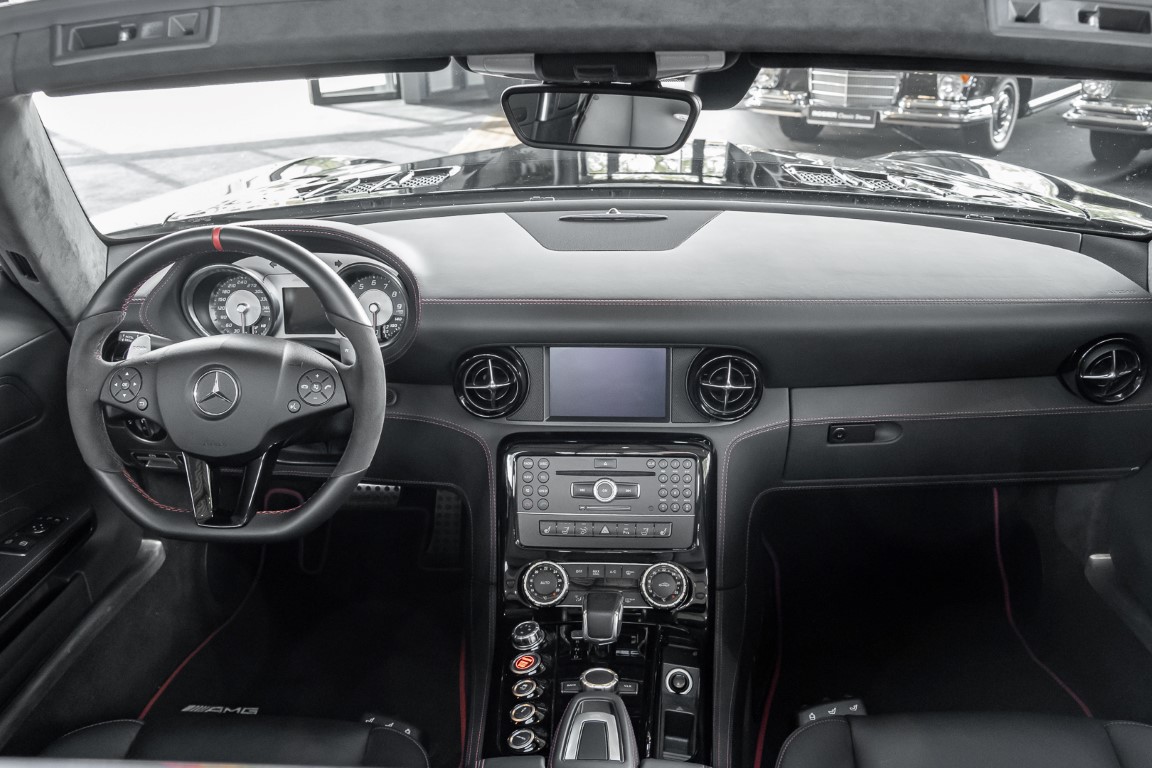 In the autumn of 2011, the roadster version of the SLS was presented at the exhibition IAA in Frankfurt. The name SLS stands for “Sport Leicht Super” (Sport Light Super). The SLS is the first vehicle that has been engineered only by AMG themselves. One single expert manually handles the whole assembly of the engine. After the finishing of his work, his signature is engraved in a special tag, stating the high quality work. The SLS series is produced in the plant of Sindelfingen. The SLS AMG GT series is a revised version of the SLS AMG which performance has been improved to 435 kw / 591 HP. The AMG ride control performance suspension and the AMG speedshift automatic transmission were revised. Optical modifications like dimmed headlights and rear lights, and the GT emblem at the rear of the car were made to mark the SLS AMG GT and make it instantly recognizable. The interior of the SLS AMG GT has been refined applying alcantara stripes on the seats, some red seams and black high polished body trims. The production period was from October 2012 until June 2014. Shortly after the end of production of the G-version, the demand rose enormously and the list prices were promptly surpassed.