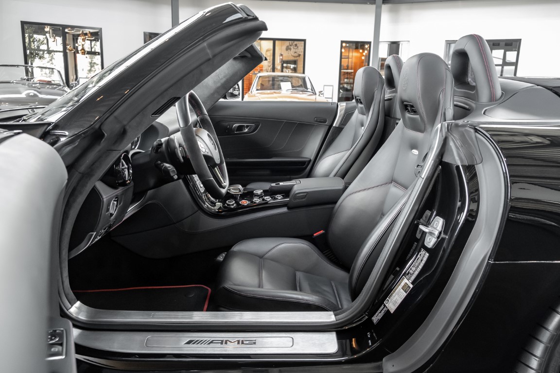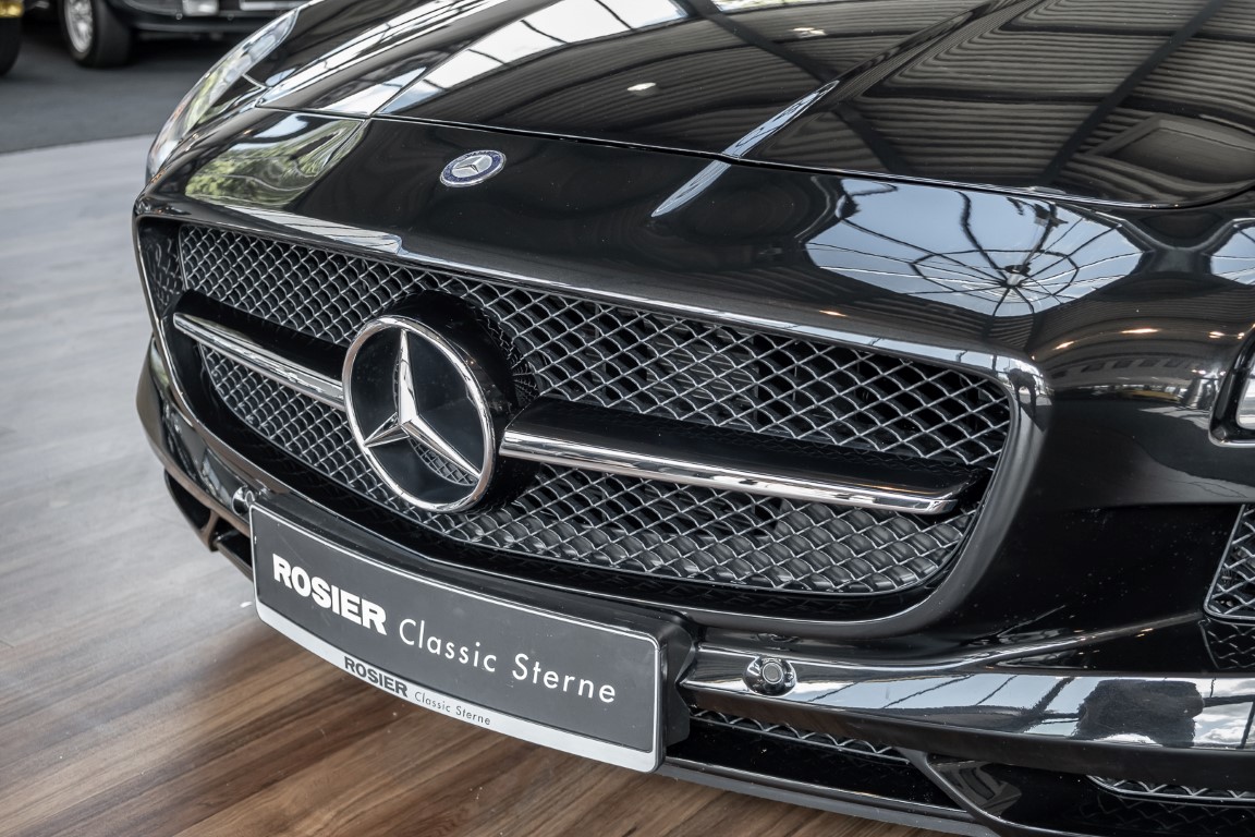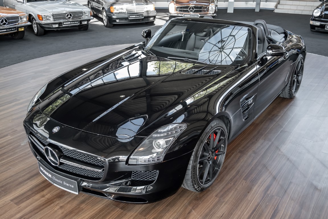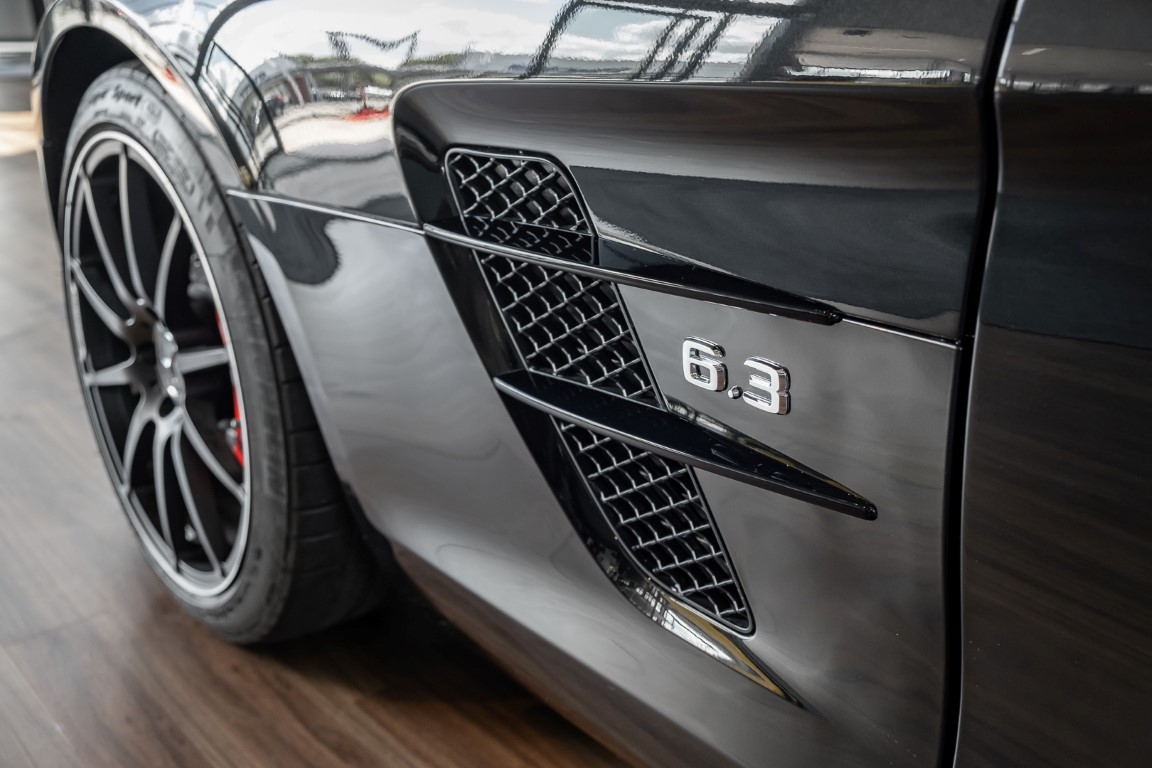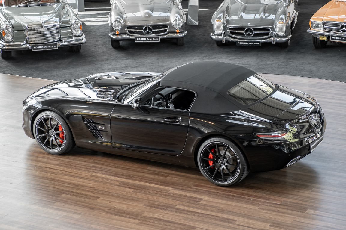 In the autumn of 2011, the roadster version of the SLS was presented at the exhibition IAA in Frankfurt. The name SLS stands for “Sport Leicht Super” (Sport Light Super). The SLS is the first vehicle that has been engineered only by AMG themselves. One single expert manually handles the whole assembly of the engine. After the finishing of his work, his signature is engraved in a special tag, stating the high quality work. The SLS series is produced in the plant of Sindelfingen. The SLS AMG GT series is a revised version of the SLS AMG which performance has been improved to 435 kw / 591 HP. The AMG ride control performance suspension and the AMG speedshift automatic transmission were revised. Optical modifications like dimmed headlights and rear lights, and the GT emblem at the rear of the car were made to mark the SLS AMG GT and make it instantly recognizable. The interior of the SLS AMG GT has been refined applying alcantara stripes on the seats, some red seams and black high polished body trims. The production period was from October 2012 until June 2014. Shortly after the end of production of the G-version, the demand rose enormously and the list prices were promptly surpassed.