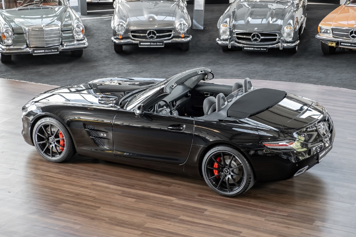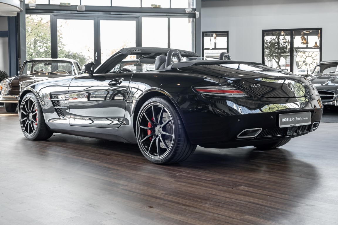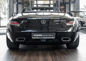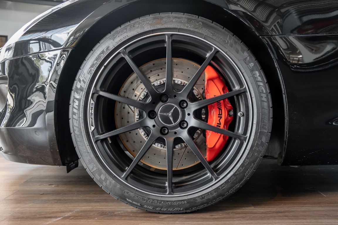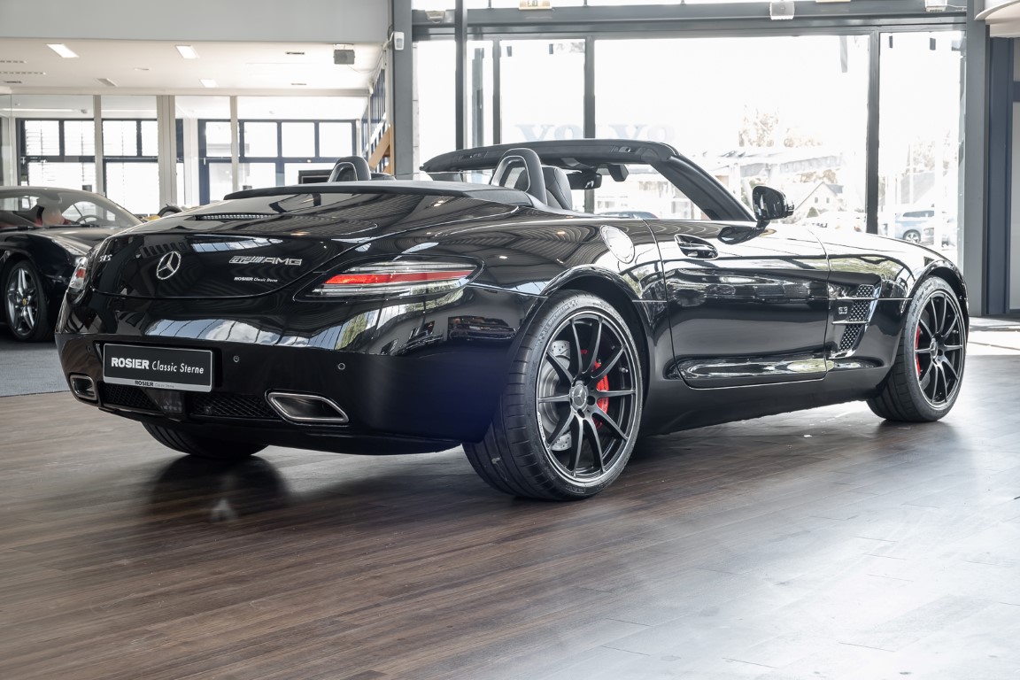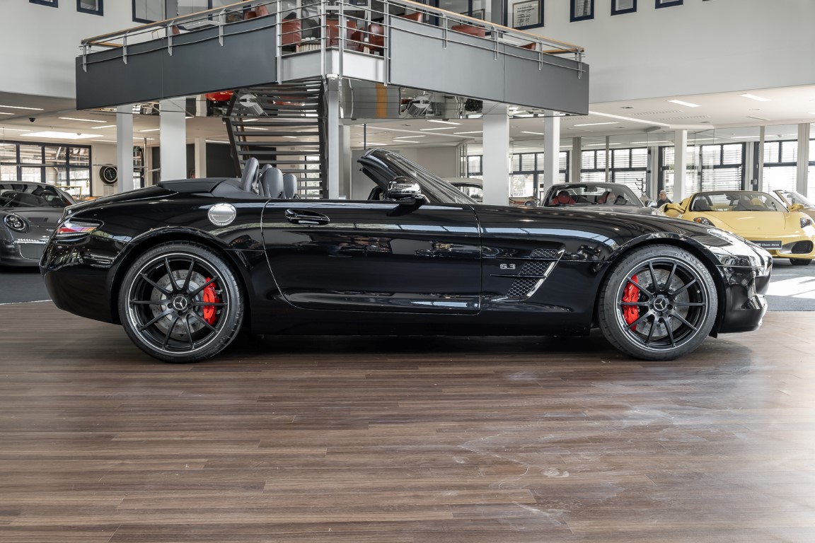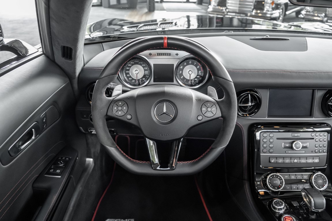 In the autumn of 2011, the roadster version of the SLS was presented at the exhibition IAA in Frankfurt. The name SLS stands for “Sport Leicht Super” (Sport Light Super). The SLS is the first vehicle that has been engineered only by AMG themselves. One single expert manually handles the whole assembly of the engine. After the finishing of his work, his signature is engraved in a special tag, stating the high quality work. The SLS series is produced in the plant of Sindelfingen. The SLS AMG GT series is a revised version of the SLS AMG which performance has been improved to 435 kw / 591 HP. The AMG ride control performance suspension and the AMG speedshift automatic transmission were revised. Optical modifications like dimmed headlights and rear lights, and the GT emblem at the rear of the car were made to mark the SLS AMG GT and make it instantly recognizable. The interior of the SLS AMG GT has been refined applying alcantara stripes on the seats, some red seams and black high polished body trims. The production period was from October 2012 until June 2014. Shortly after the end of production of the G-version, the demand rose enormously and the list prices were promptly surpassed.