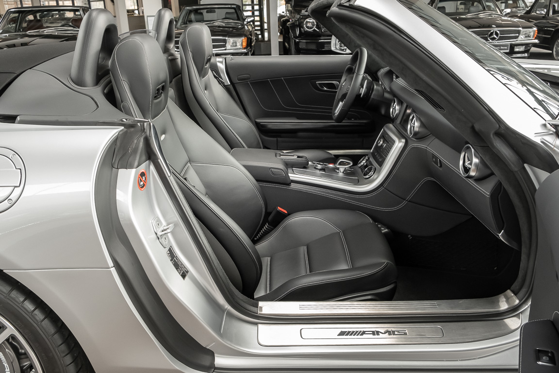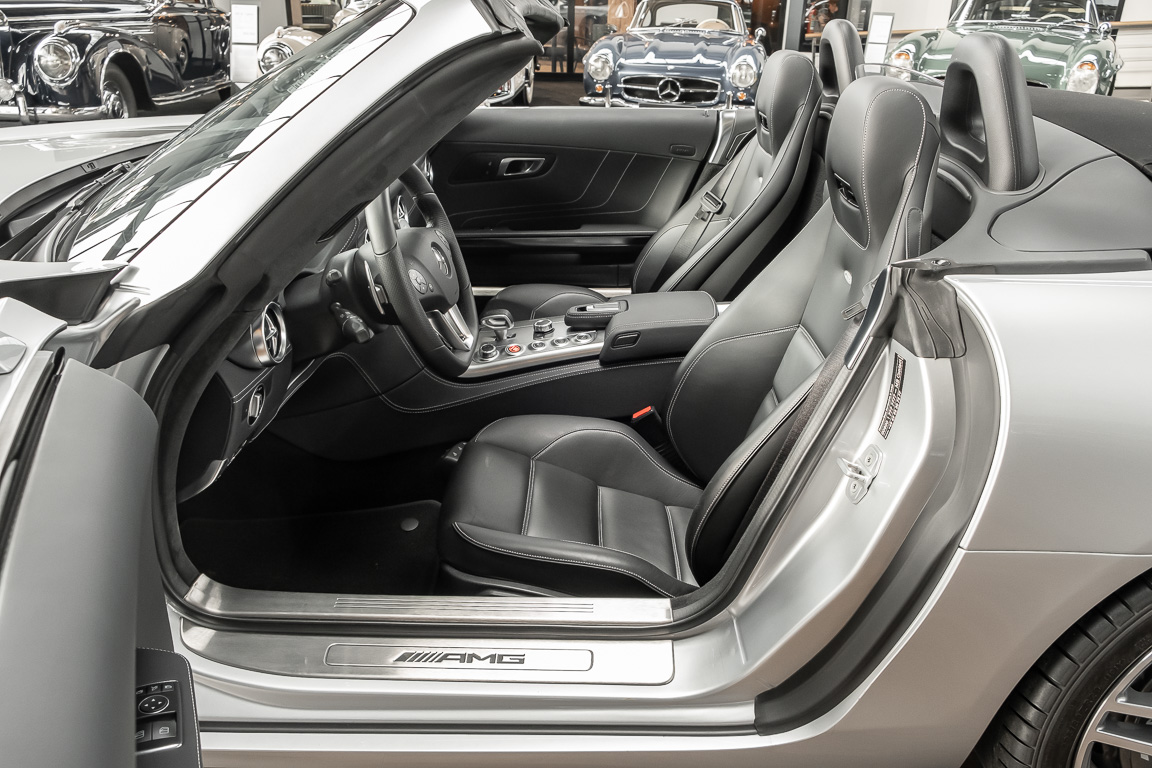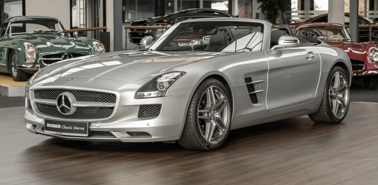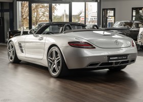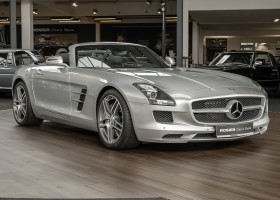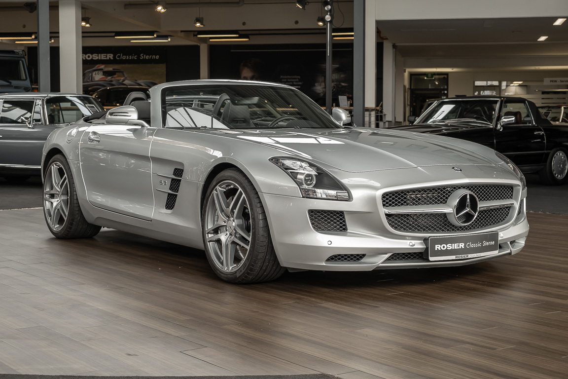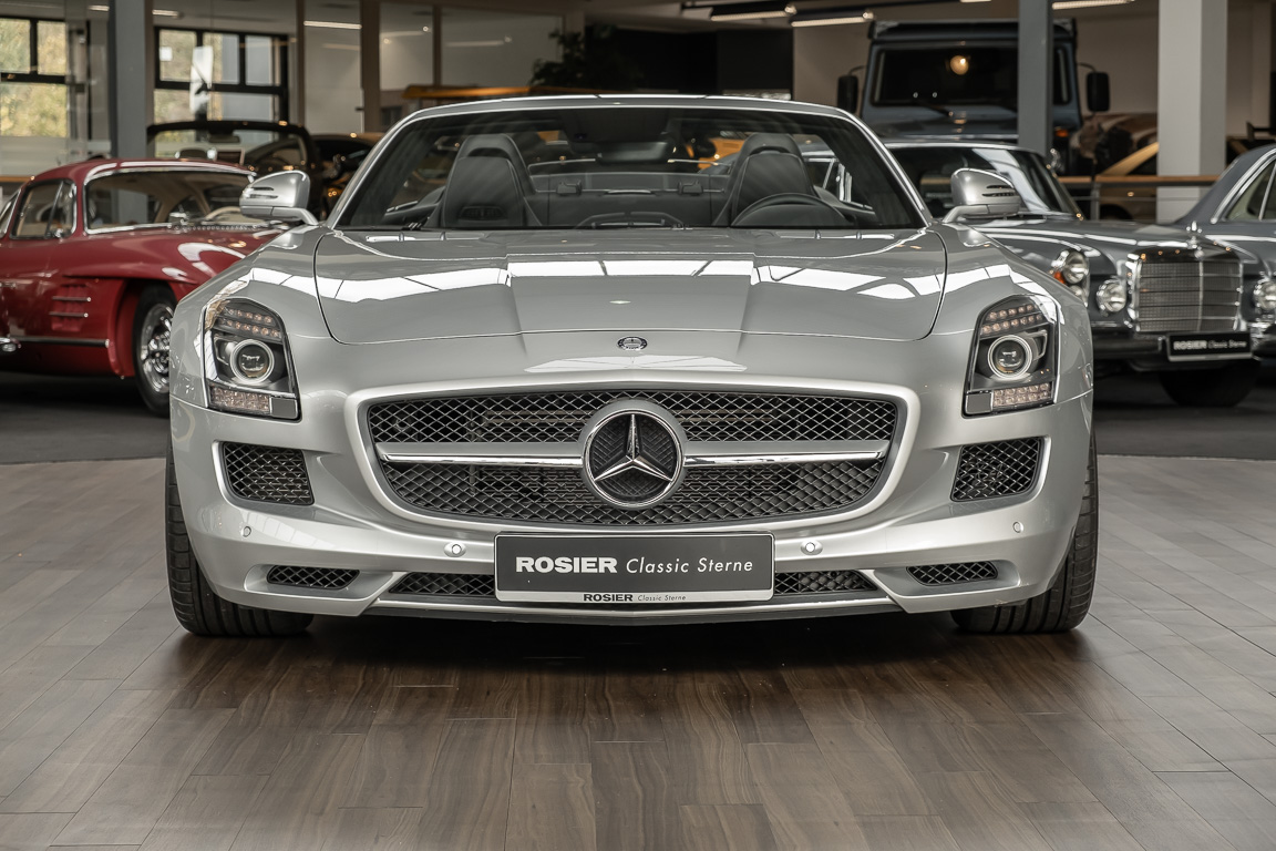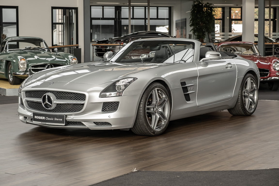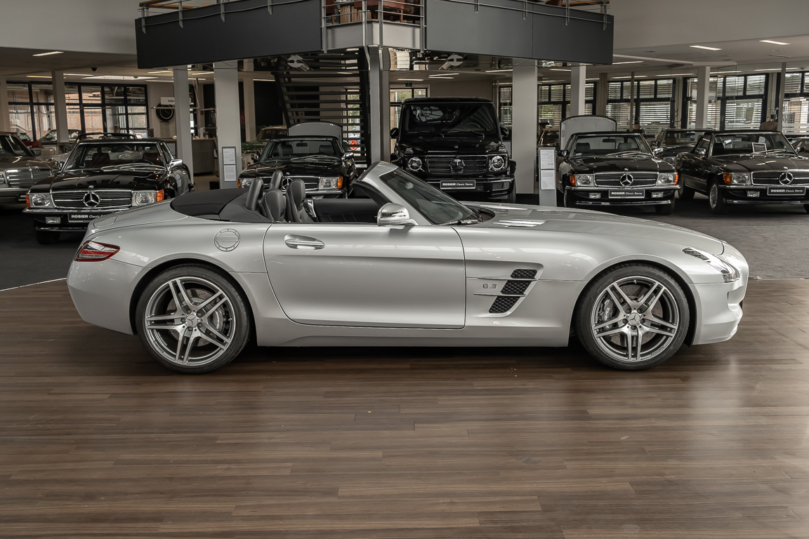 Just arrived: SLS AMG Roadster in Iridium Silver Metallic from 1st hand, 6,120 km in absolutely new car condition, well maintained and unused.