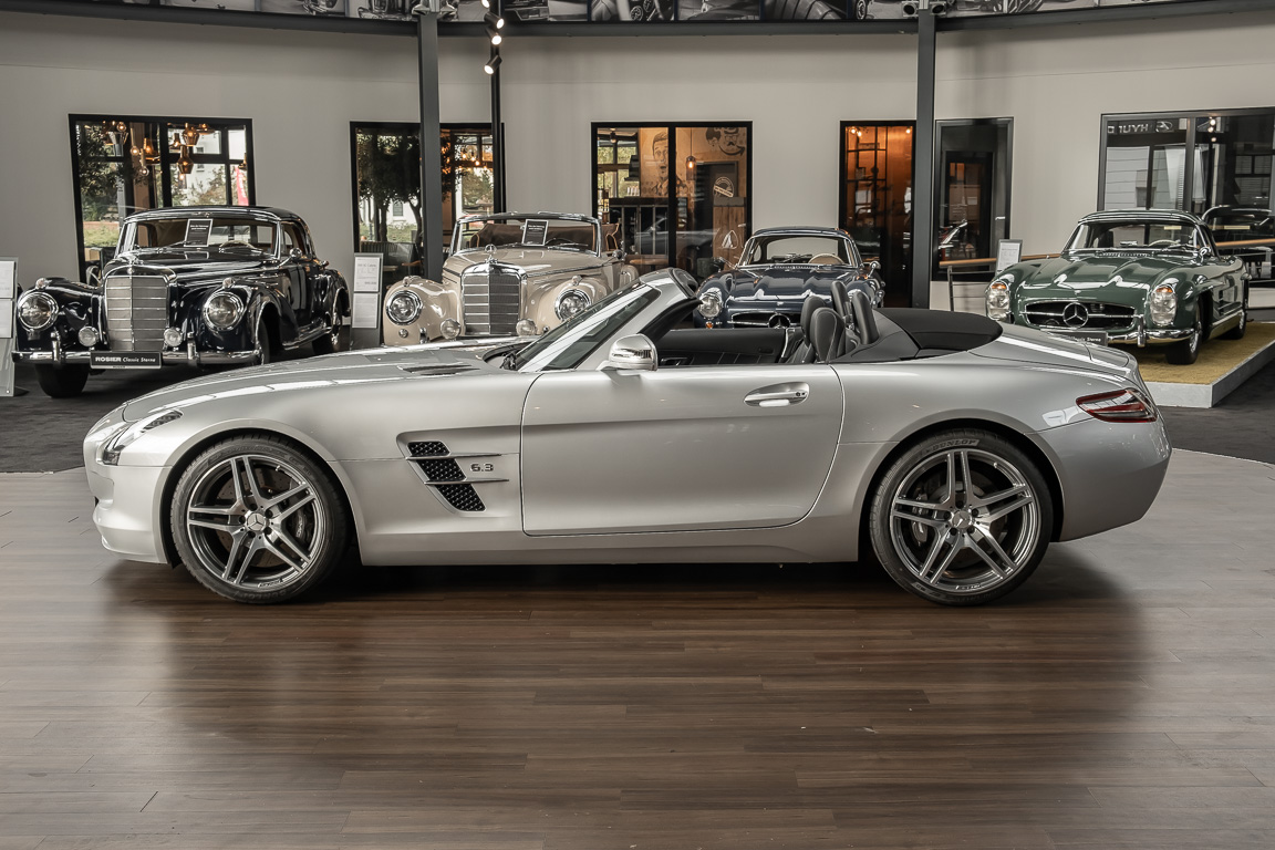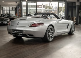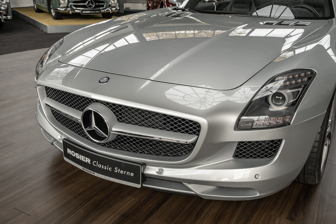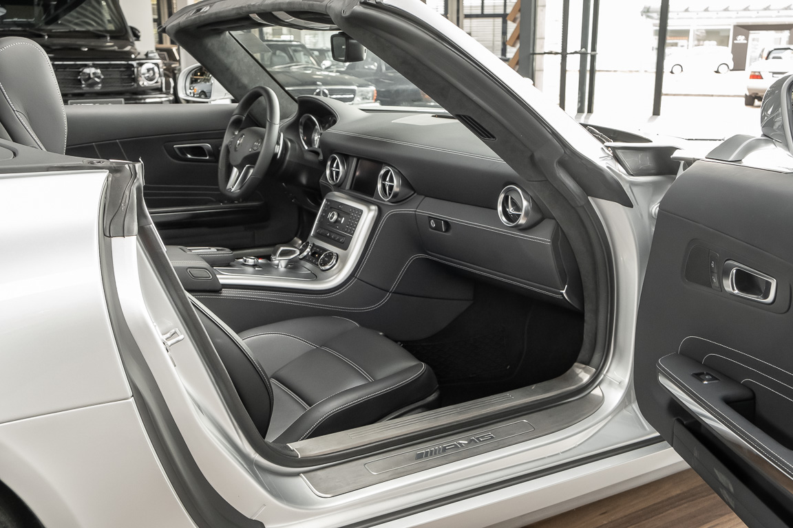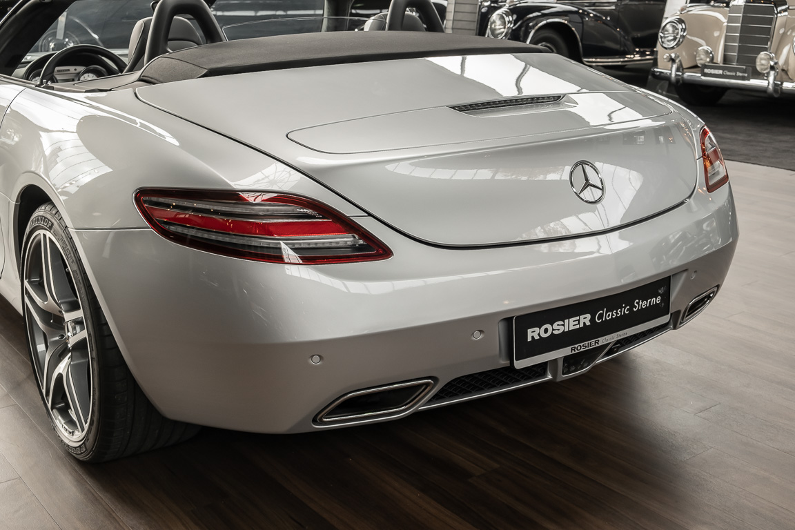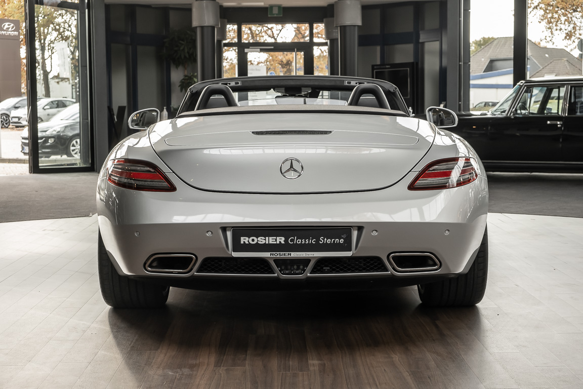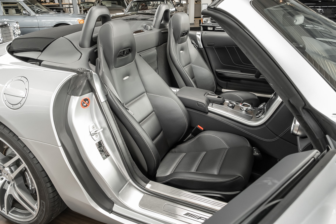 Just arrived: SLS AMG Roadster in Iridium Silver Metallic from 1st hand, 6,120 km in absolutely new car condition, well maintained and unused.