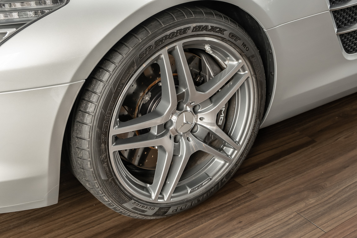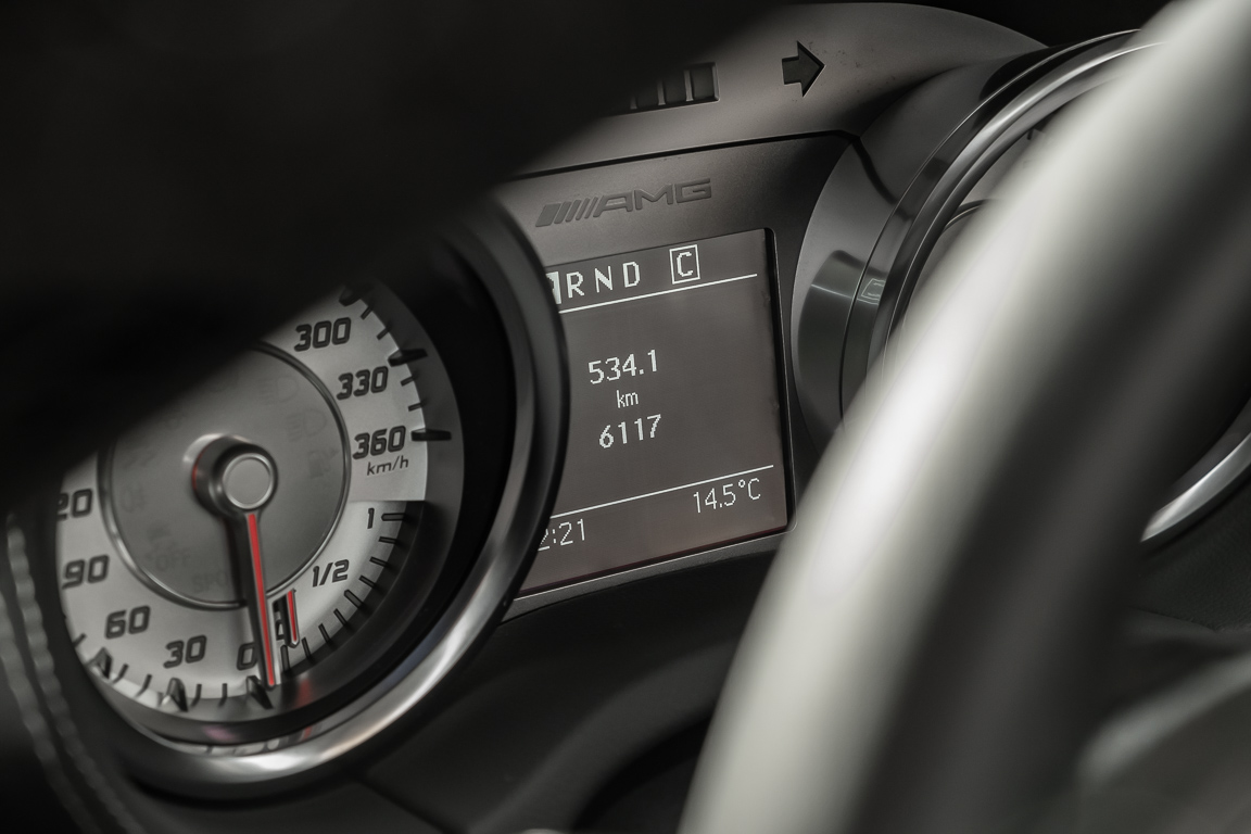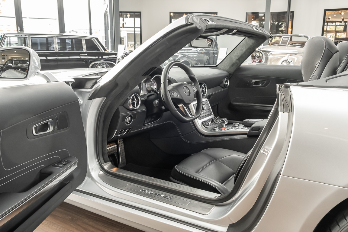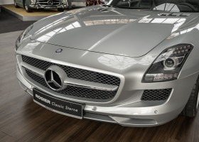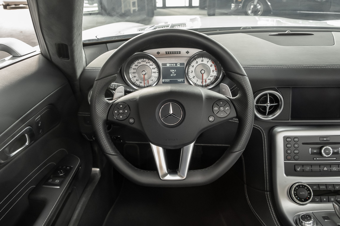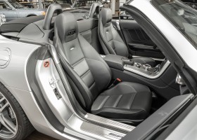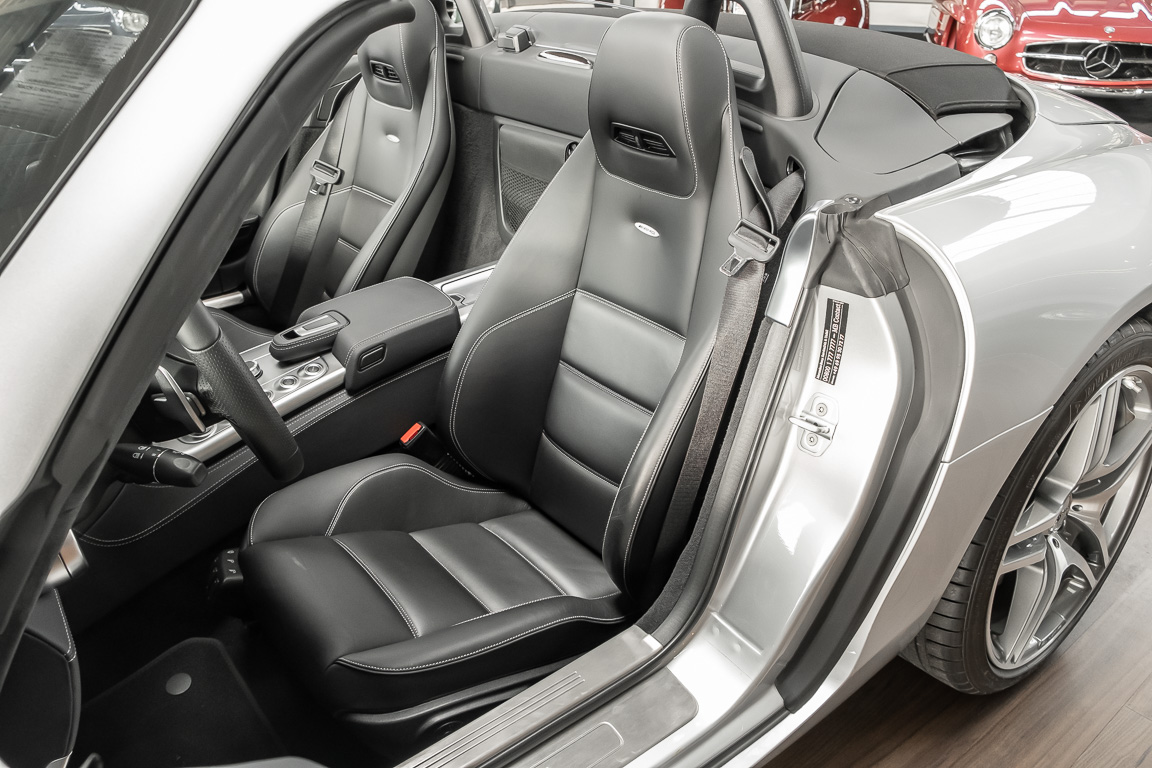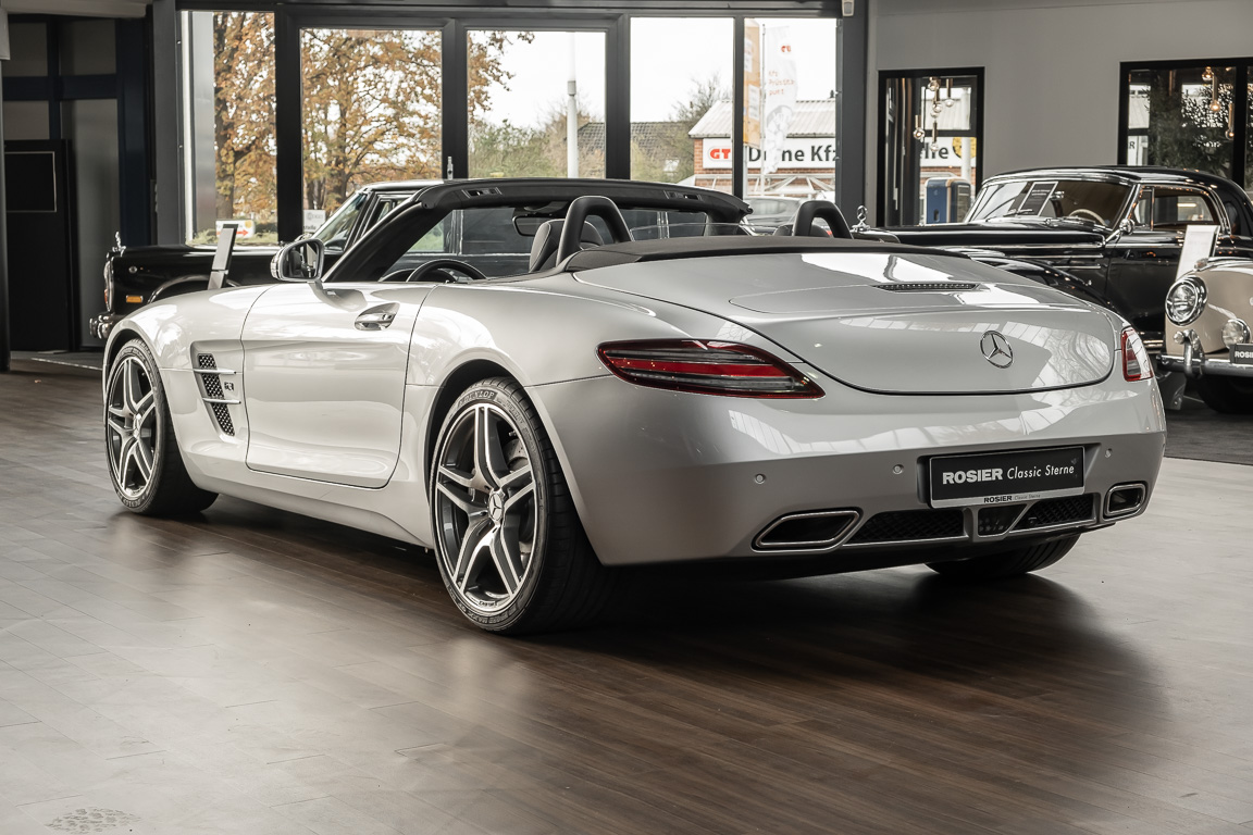 Just arrived: SLS AMG Roadster in Iridium Silver Metallic from 1st hand, 6,120 km in absolutely new car condition, well maintained and unused.