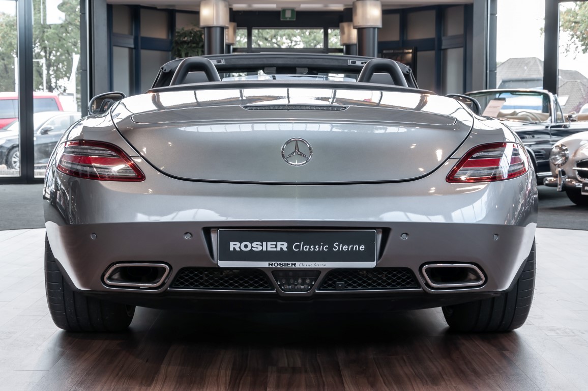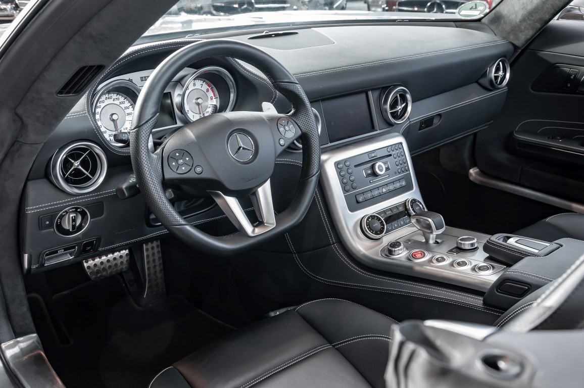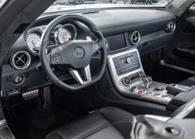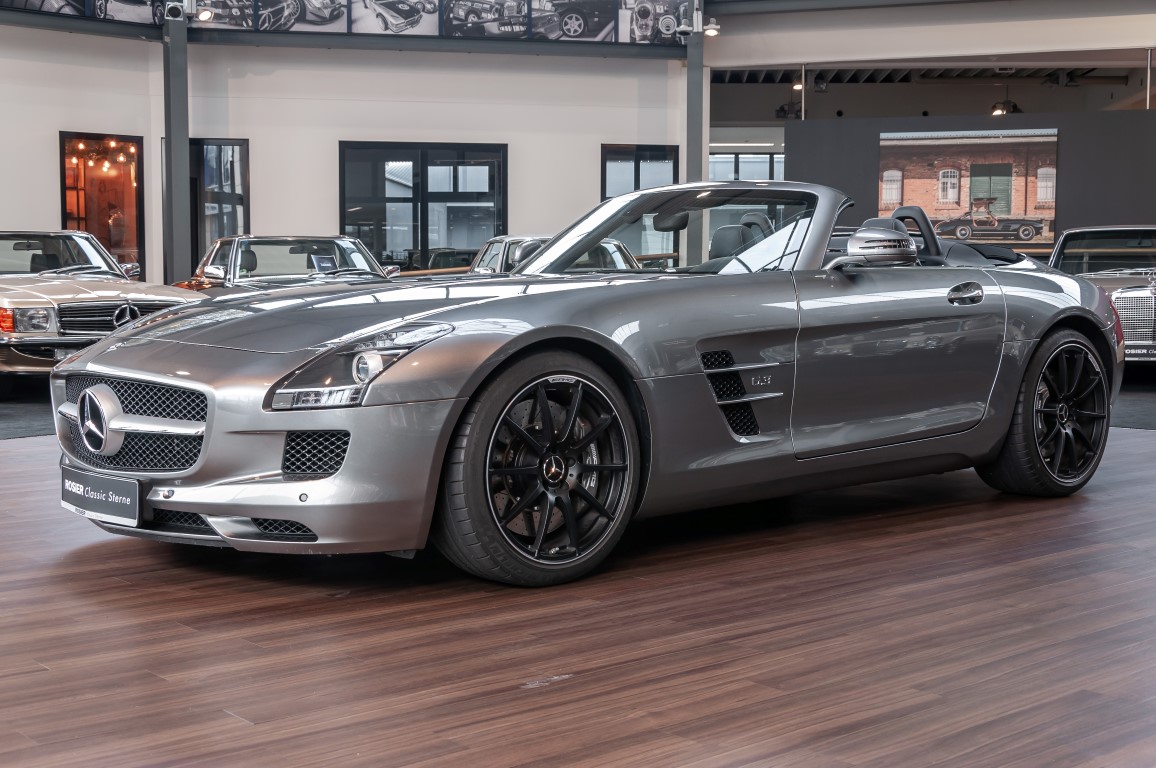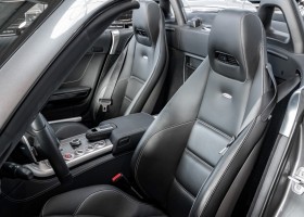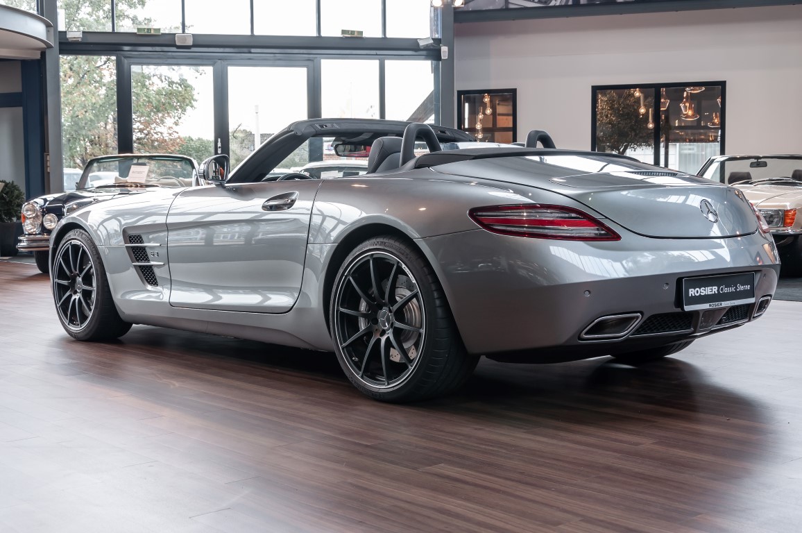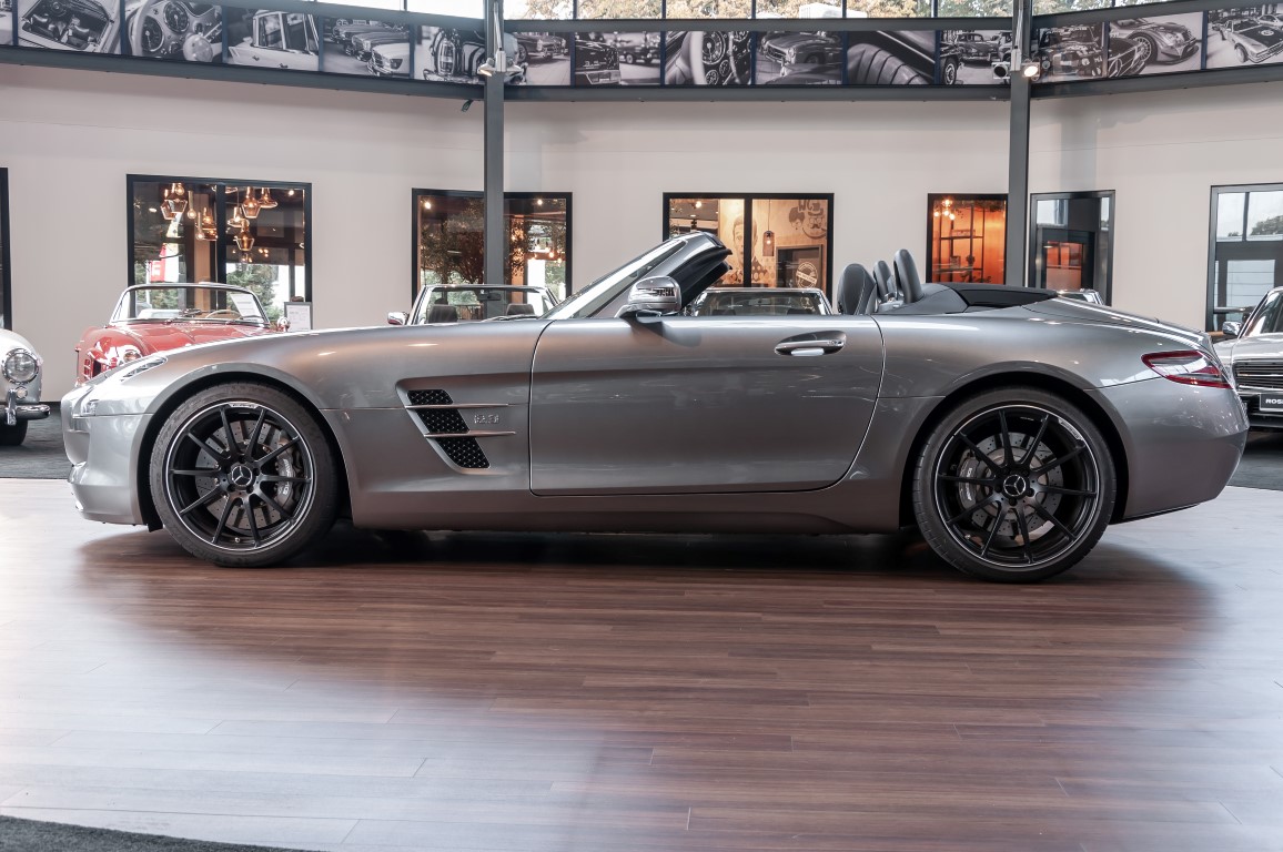This wonderful SLS AMG Roadster in the popular Himalayan Grey Middle Metallic colour in combination with black AMG forged wheels already looks athletic when stationary. An impression that is confirmed at the latest when the brute 6.3-litre eight-cylinder engine is launched - especially when the top is open.