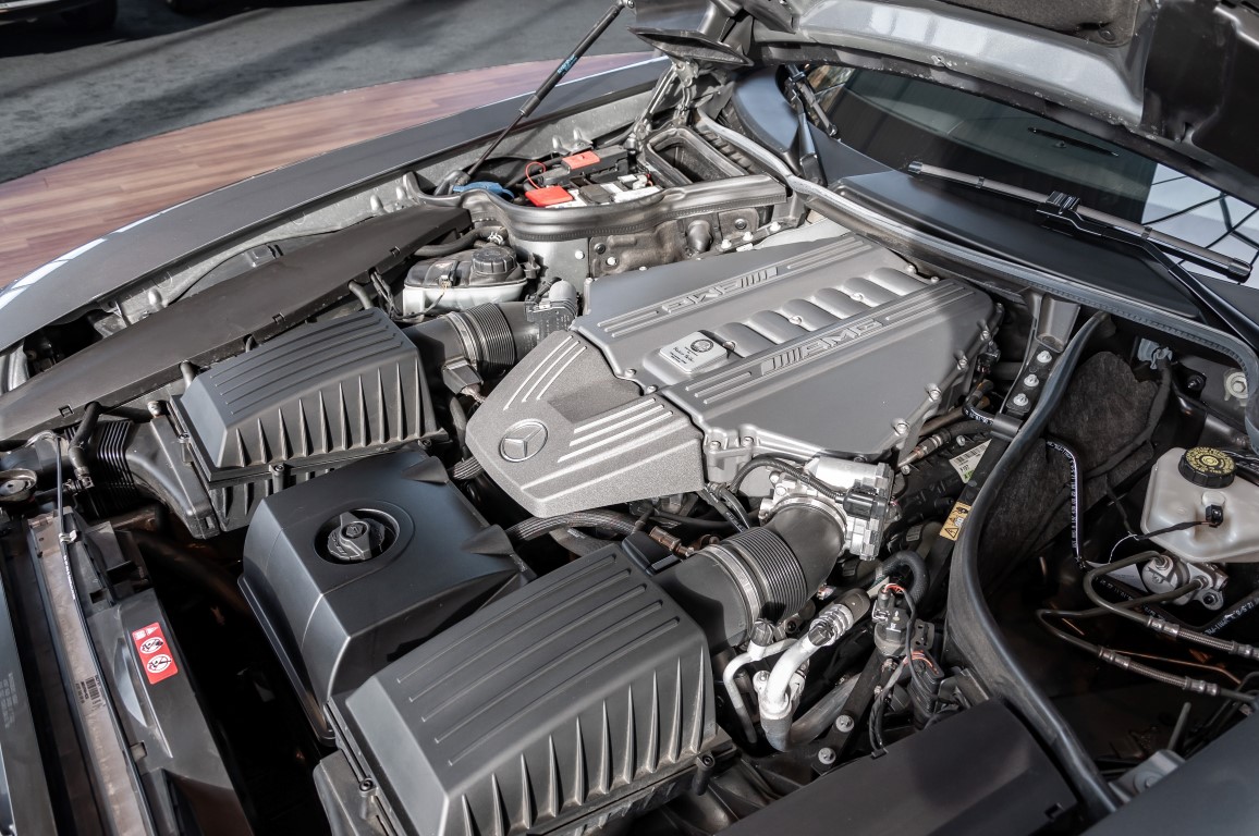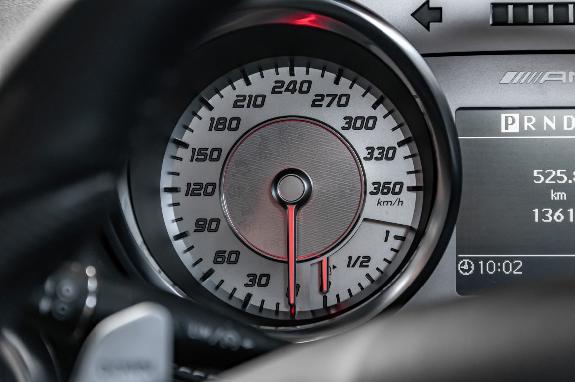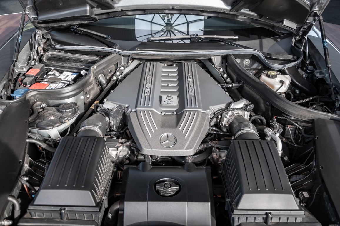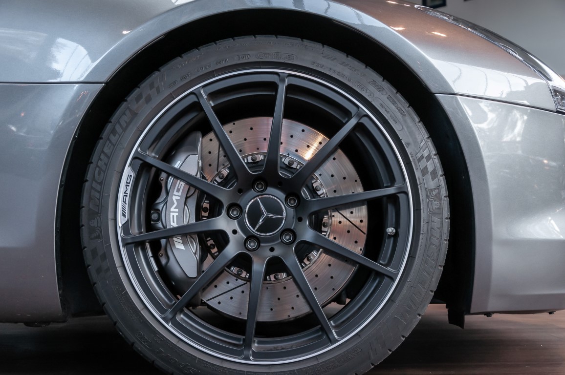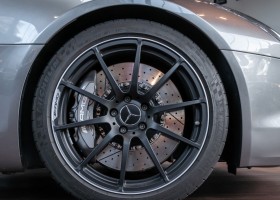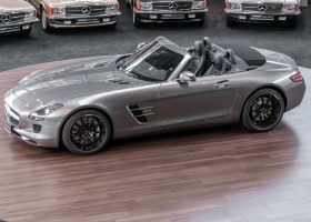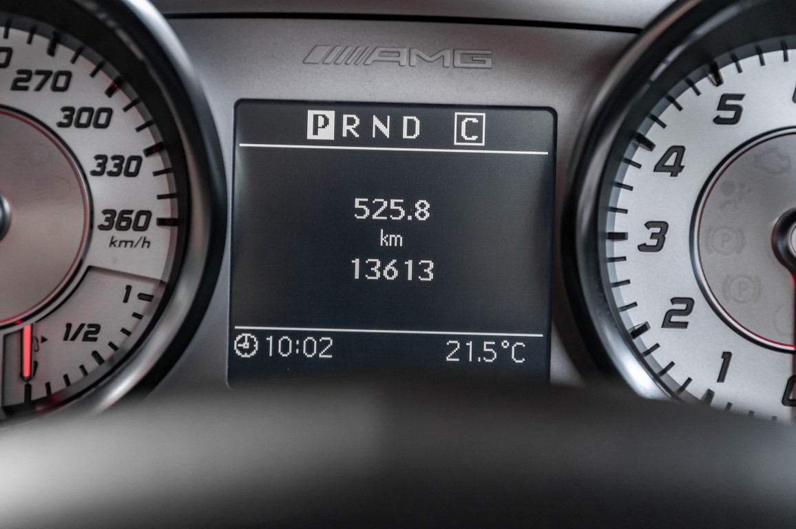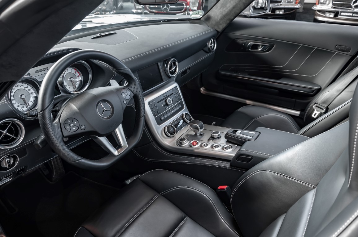 This wonderful SLS AMG Roadster in the popular Himalayan Grey Middle Metallic colour in combination with black AMG forged wheels already looks athletic when stationary. An impression that is confirmed at the latest when the brute 6.3-litre eight-cylinder engine is launched - especially when the top is open.