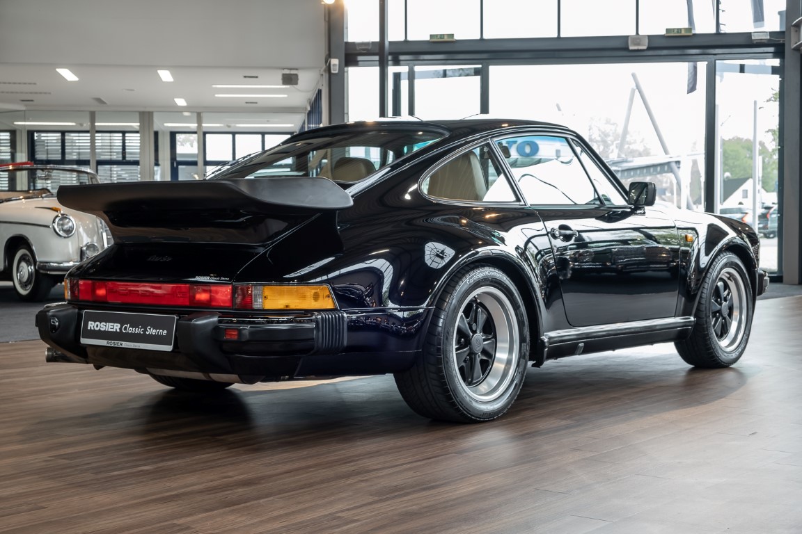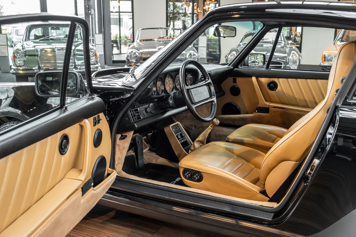 We are pleased to offer you this original Porsche 930 Turbo with rare 5-speed version and limited slip differential (very rare!). Recently the transmission was overhauled by a specialized company and brought up to the latest state of the art. The turbo-typical transmission problem was thus already eliminated in advance with this vehicle. In the course of this, the engine and transmission were resealed, so that the perfect appearance of this dream coupé is in no way inferior to the technology.