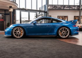 After the first owner, Porsche AG in Zuffenhausen, an architect from Rhineland-Palatinate purchased this dream car in the rare colour sapphire blue metallic with fine leather/Alcantara in black. Afterwards, a collector liked the super sports car, but he only kept it in his collection for a short time to give it away for another car. Equipped with lightning-fast Porsche Doppelkupplungsgetriebe (PDK) and ceramic brakes, the car was designed for the race track, but the car was simply too bad for its owners for this tour de force. Fortunately: the car stands there with just 17,300 km, like a well run-in new car.